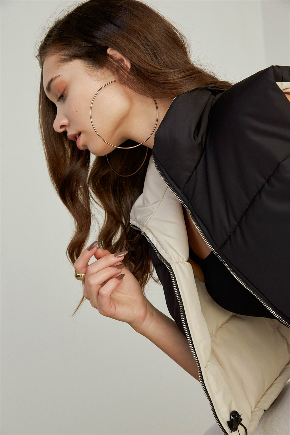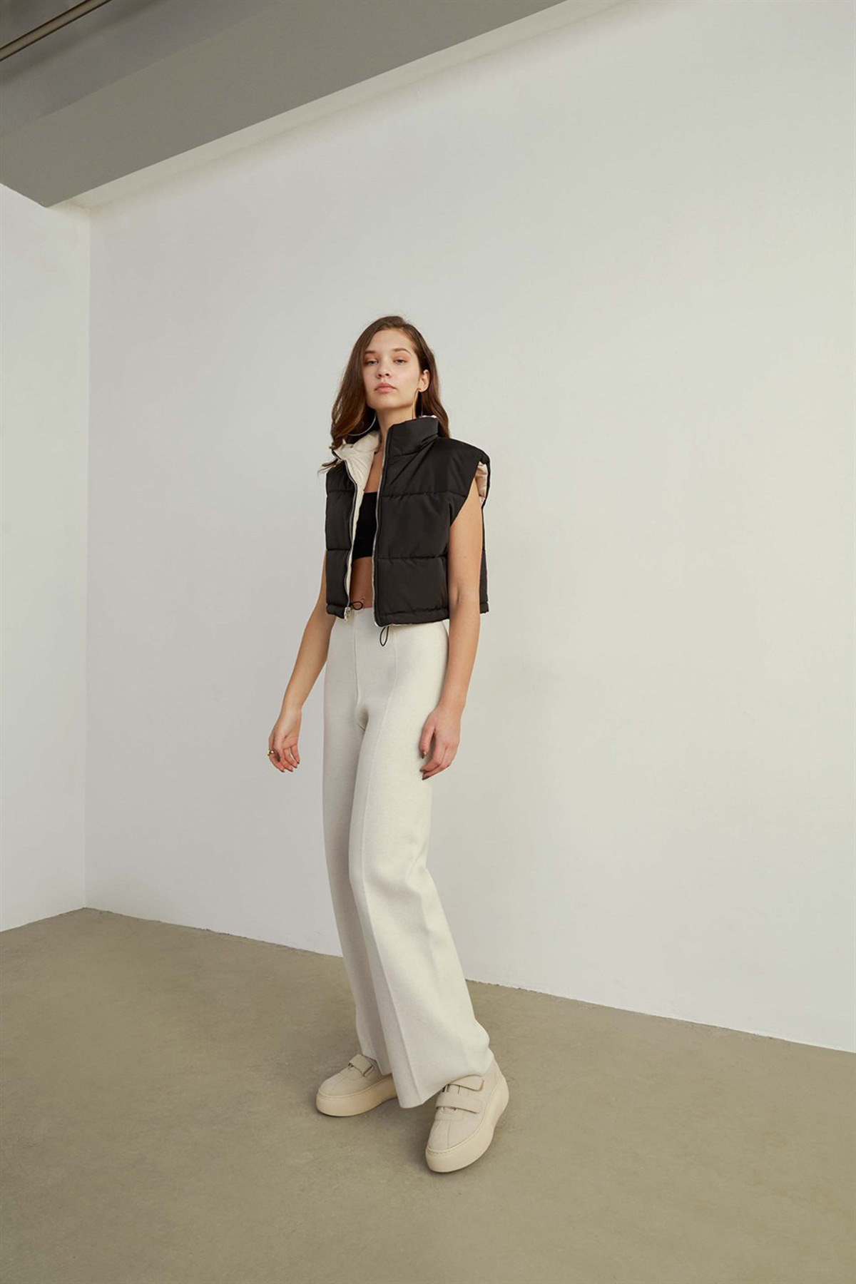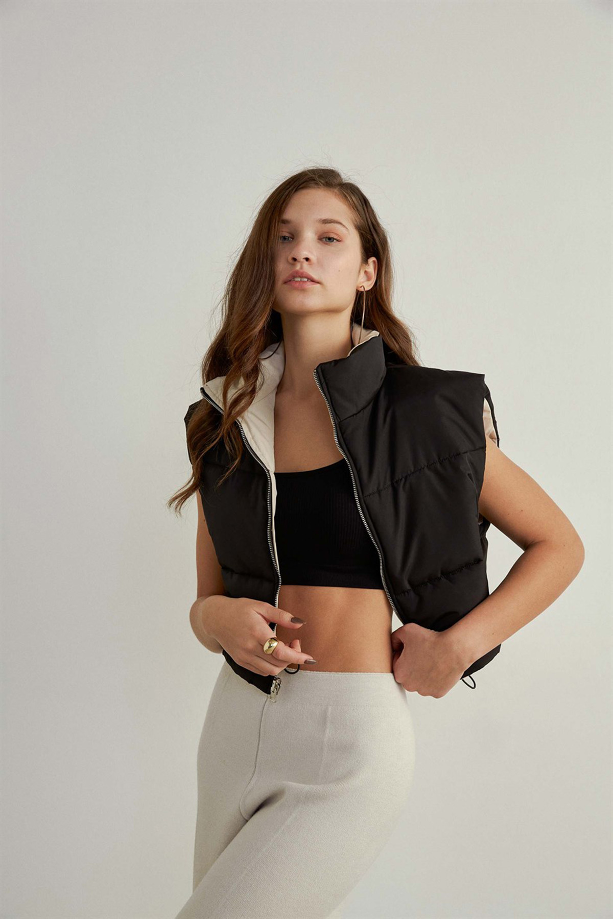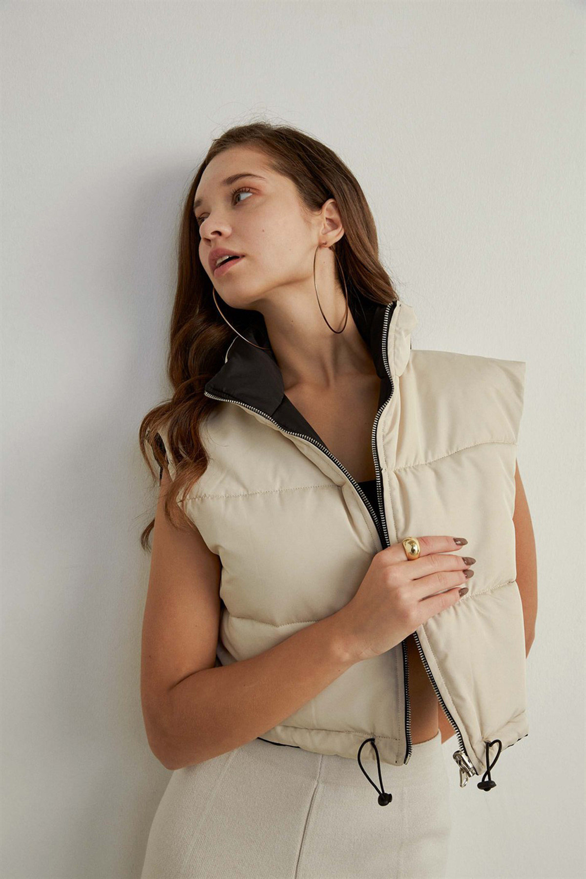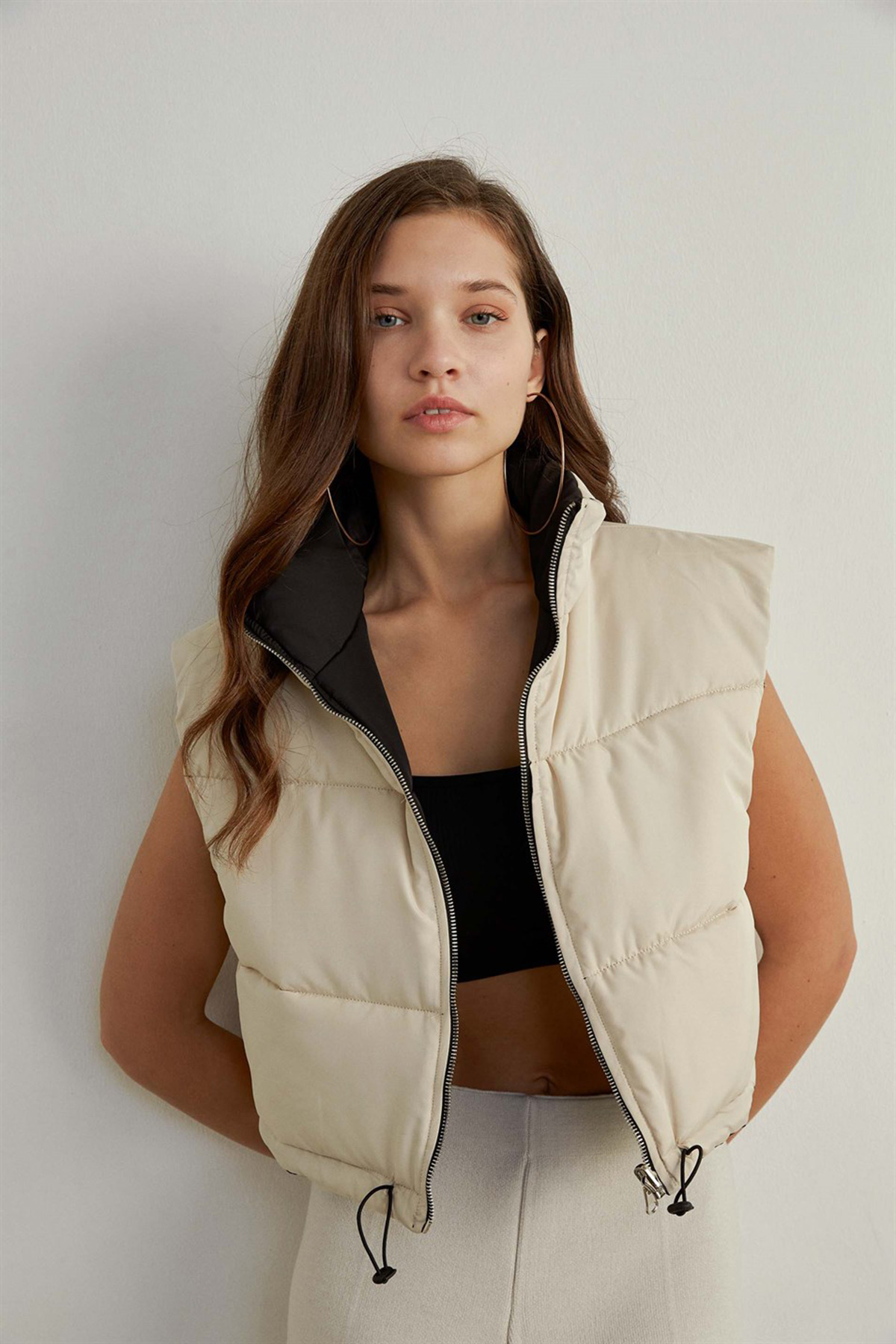 Ürün DetaylarıSiyah ve beyaz renk olmak üzere çift taraflı, rahat spor model şişme kadın yelek.