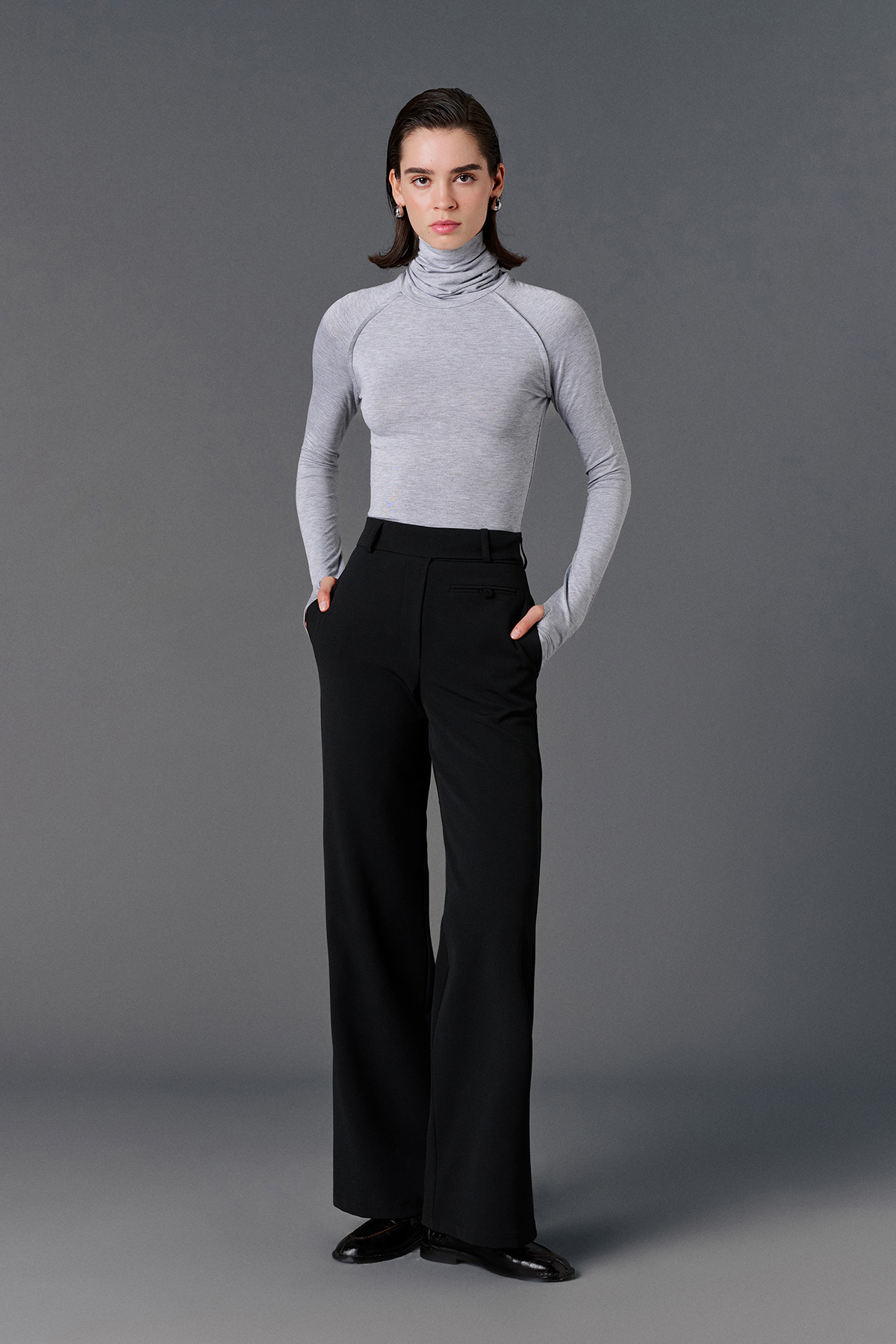 Balıkçı yaka, esnek kumaş, kol ucundan parmak geçirme detaylı, raglan kol detaylı, örme, tam kalıp, basic bluz.