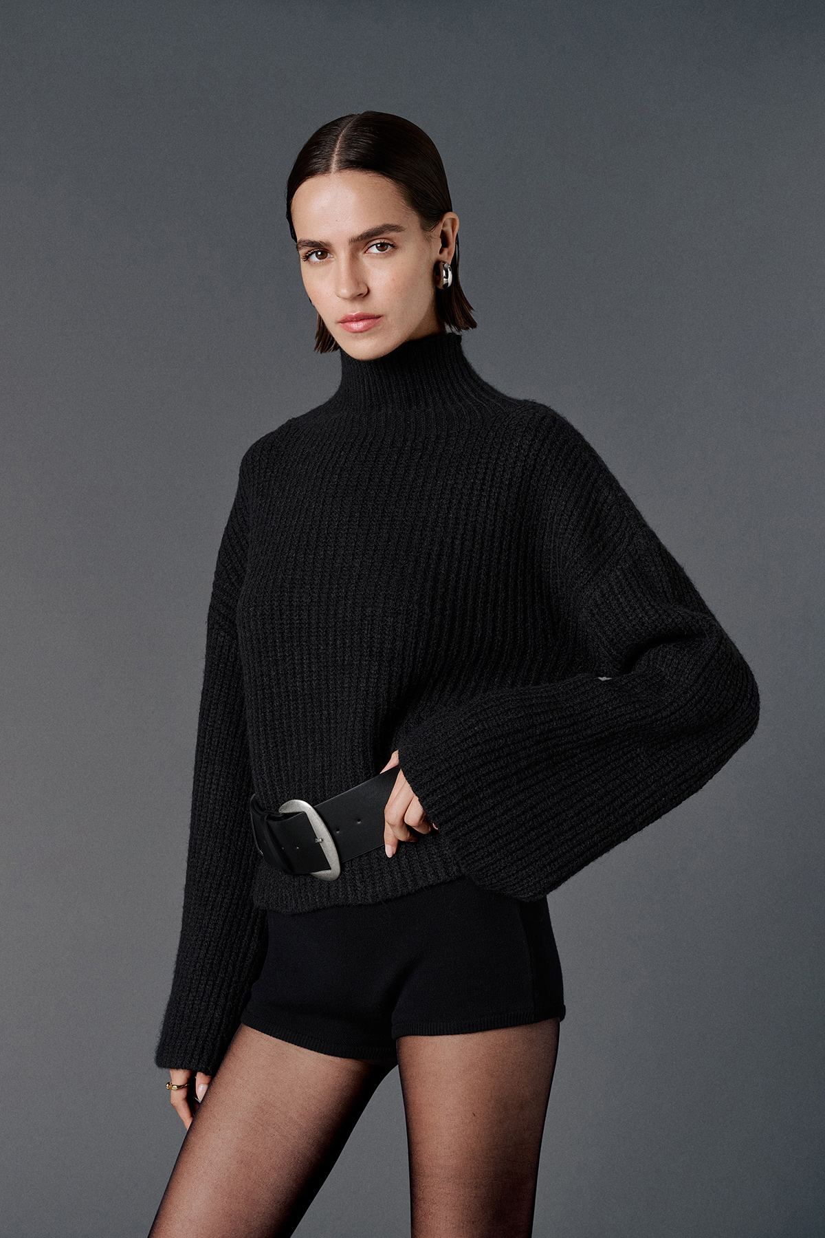 Balıkçı yaka, geniş kollu, oversize kazak.