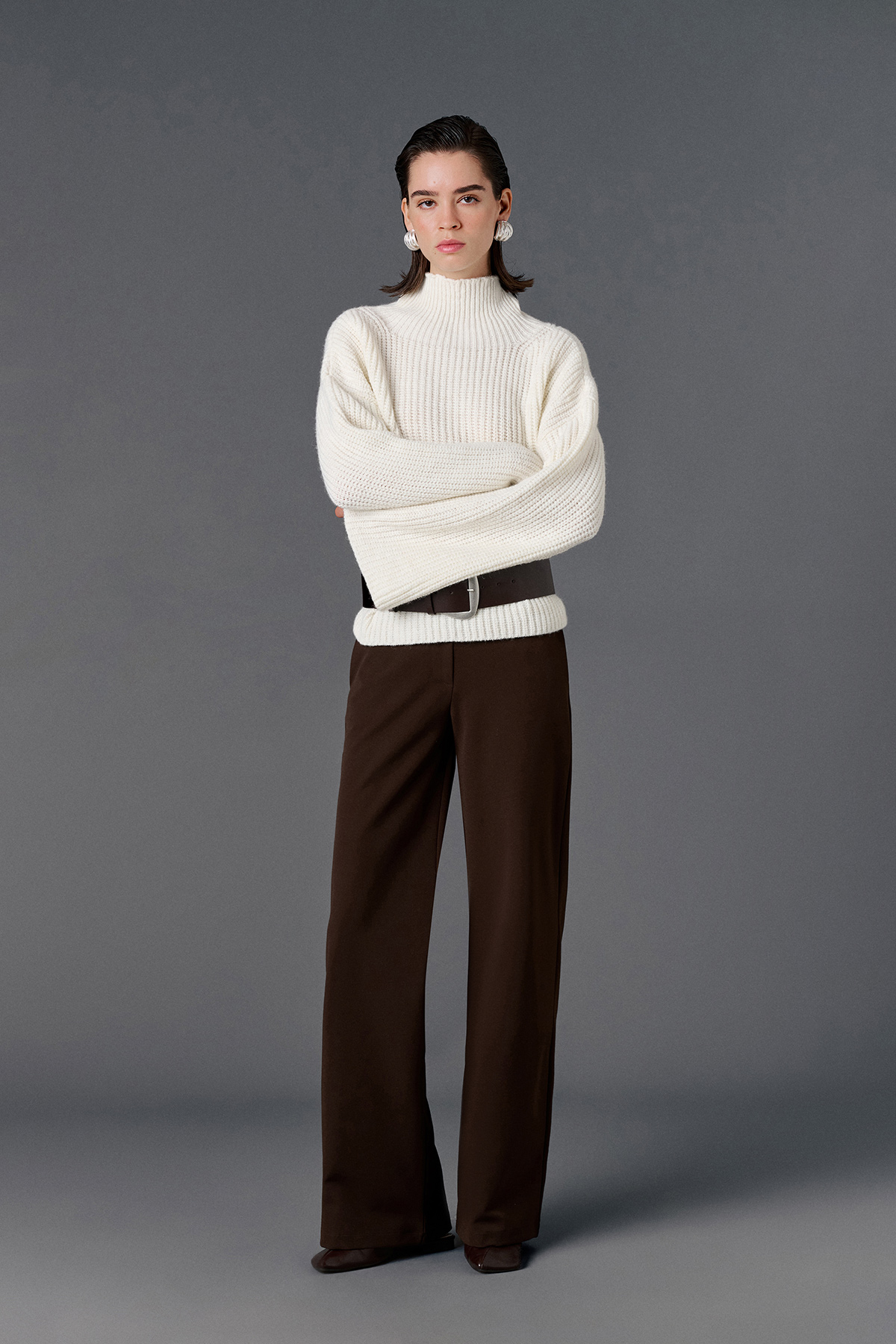 Balıkçı yaka, geniş kollu, oversize kazak.