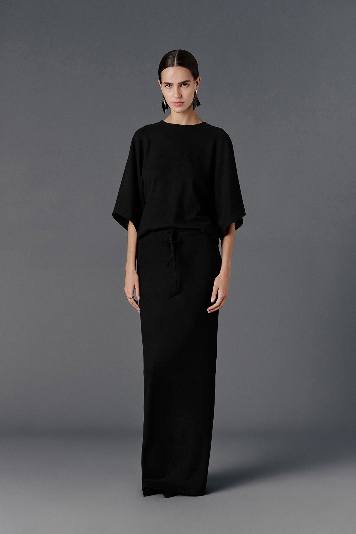 Bisiklet yaka, yarasa kol, oversize triko t-shirt