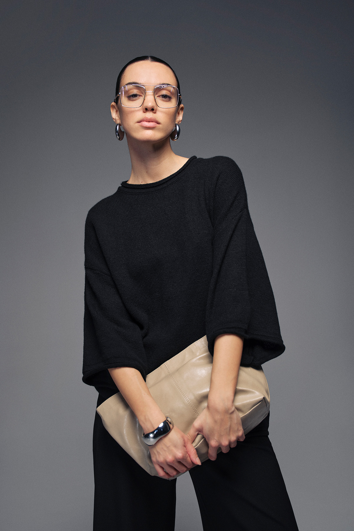 Fermuar kapamalı, iç cepli, clutch çanta.