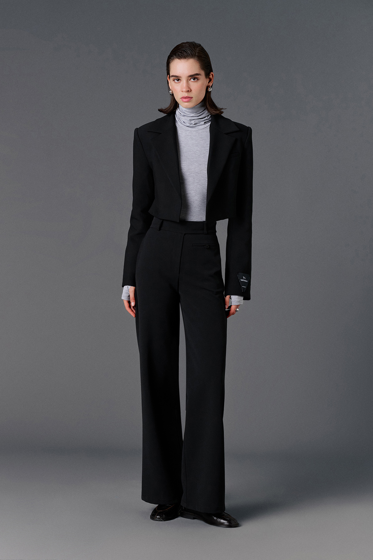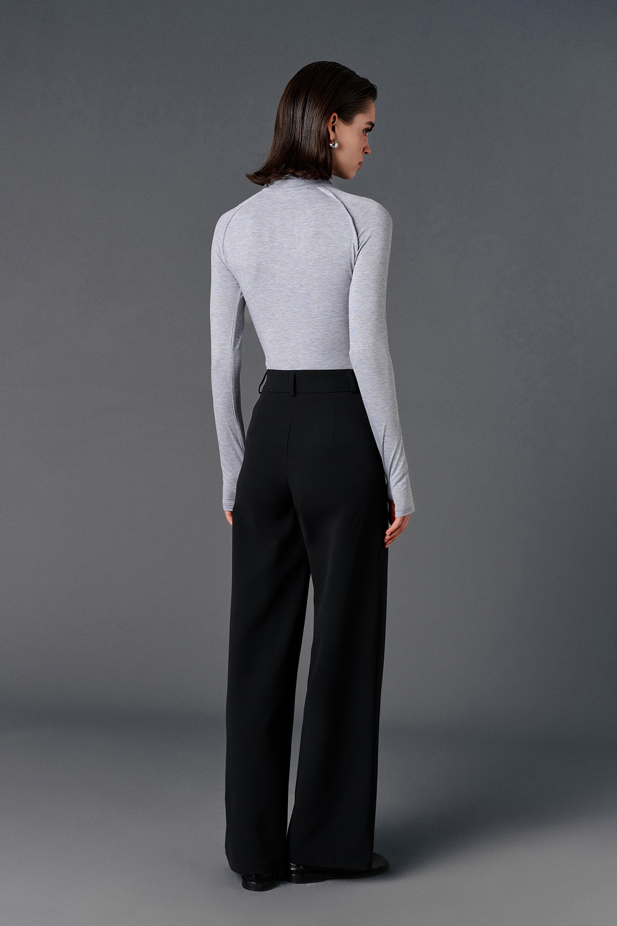 Yüksek bel, önden düğme ve fermuar kapamalı, yanlardan çift cepli, sol önünde aksesuar cep detaylı, casual kumaş pantolon.