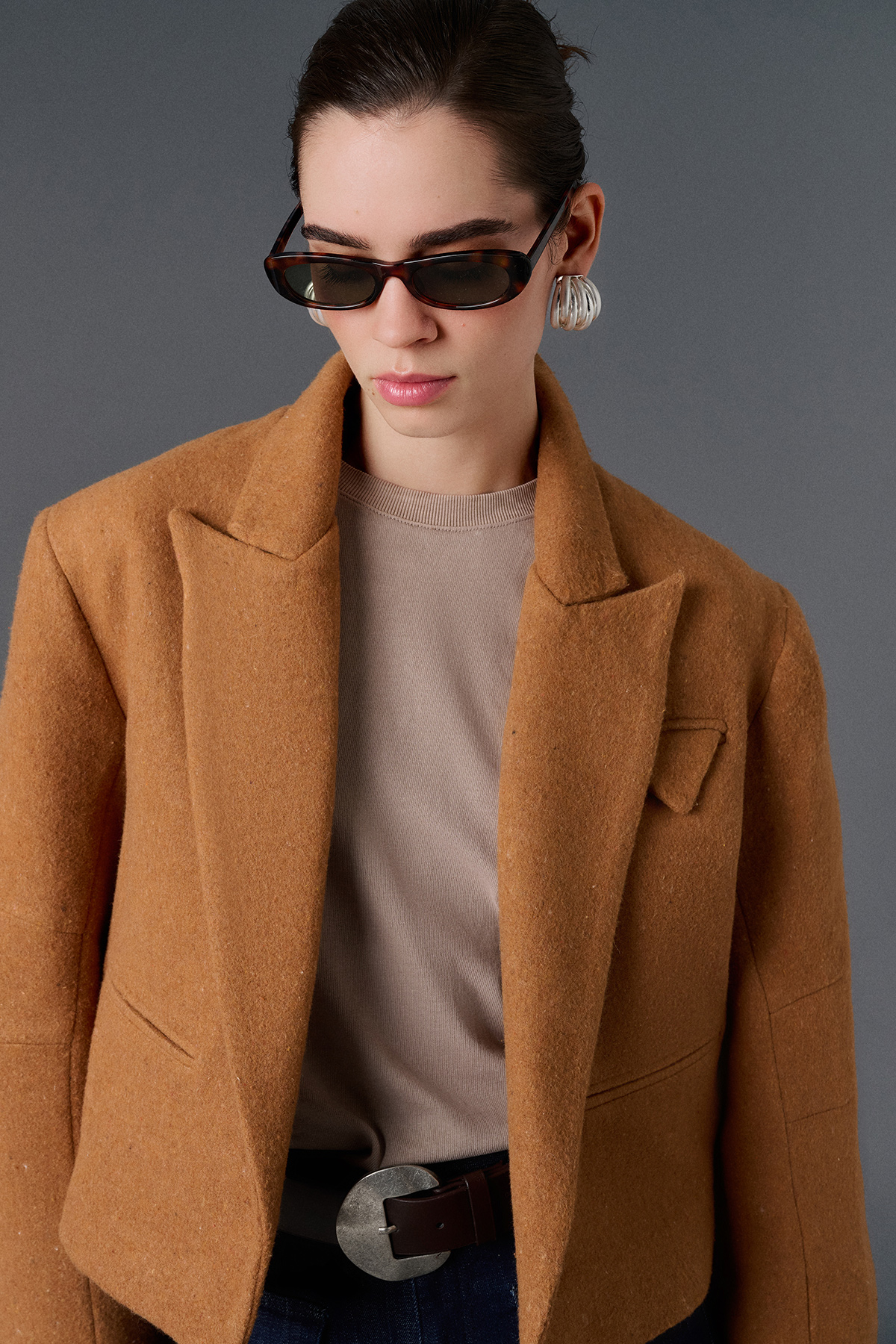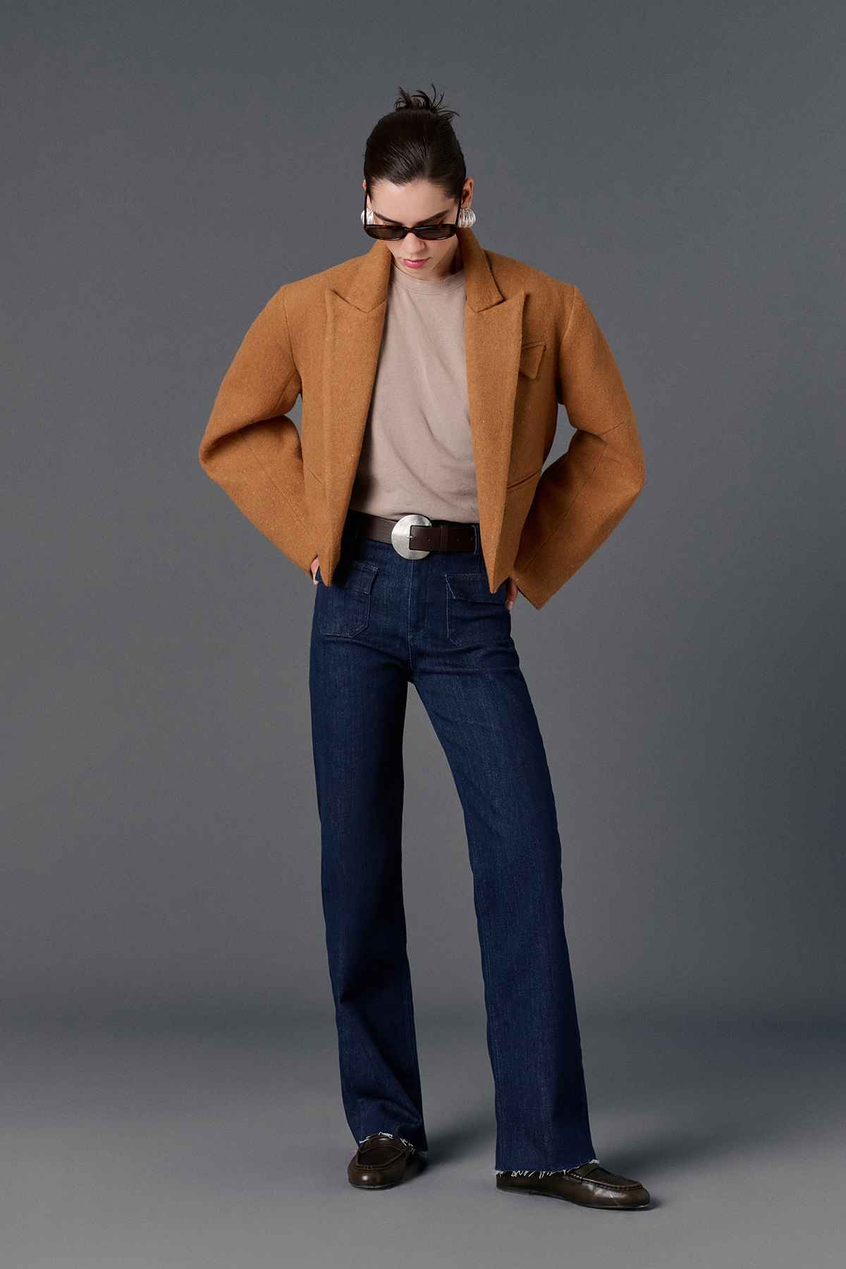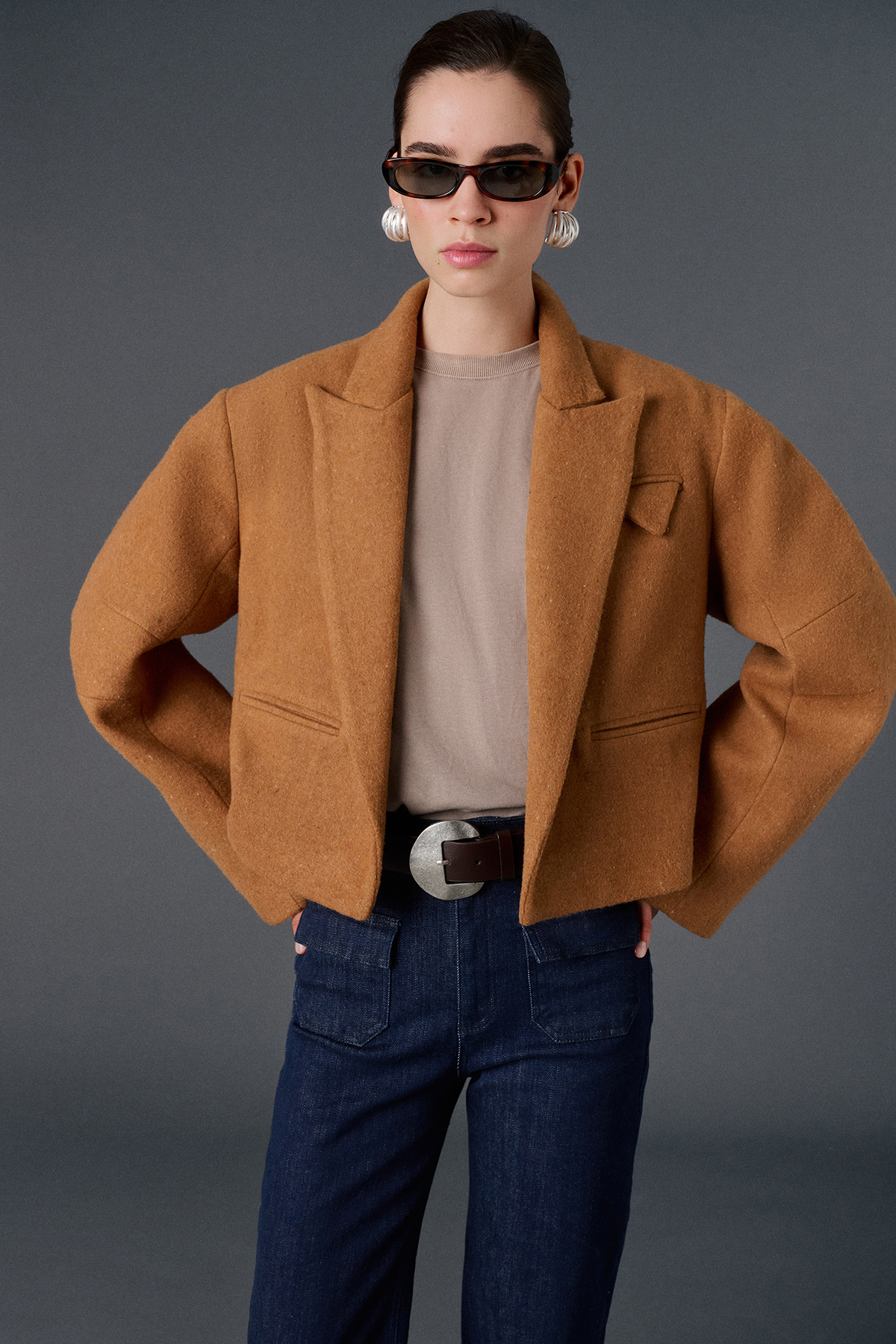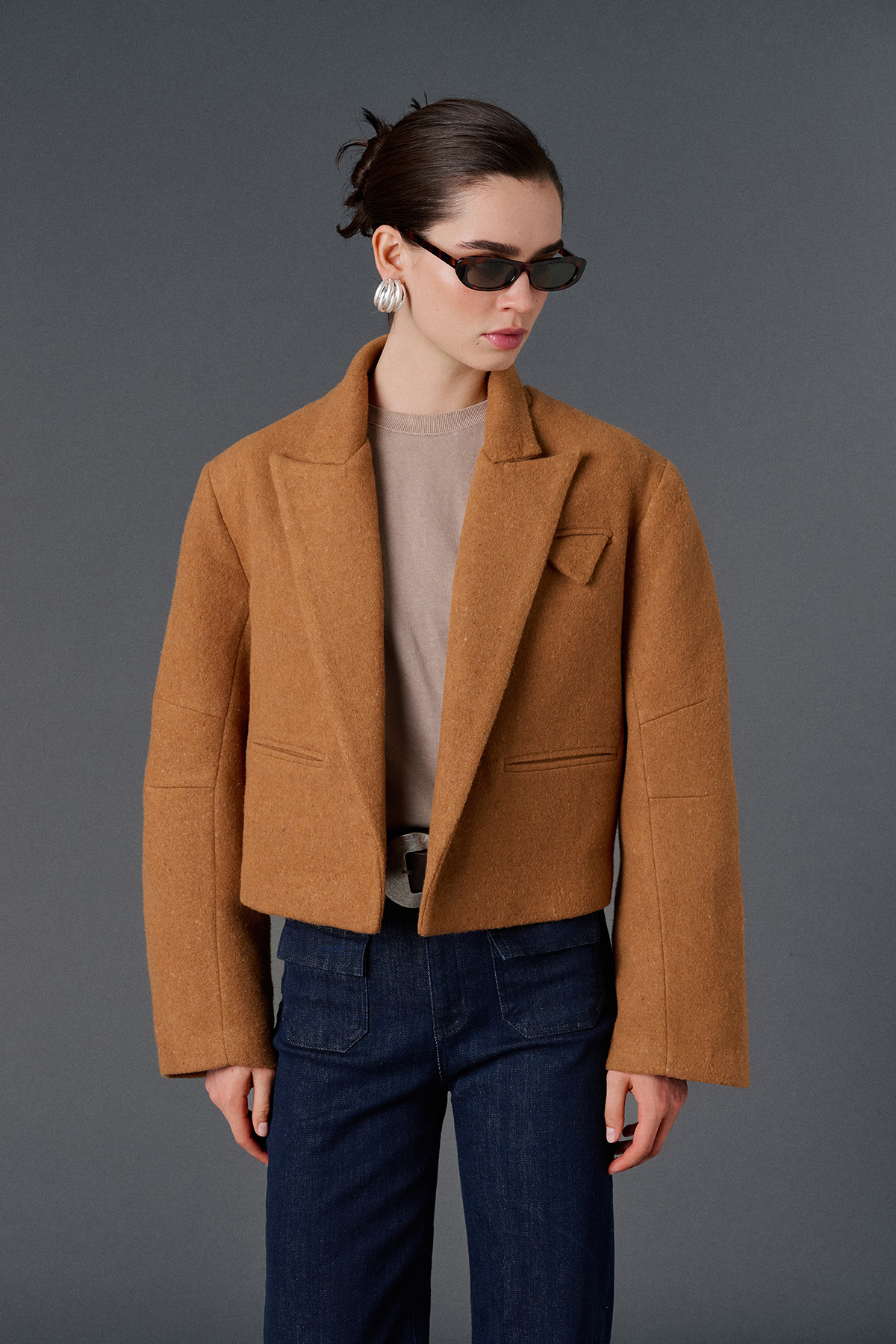 Cep detaylı oversize kaşe crop ceket