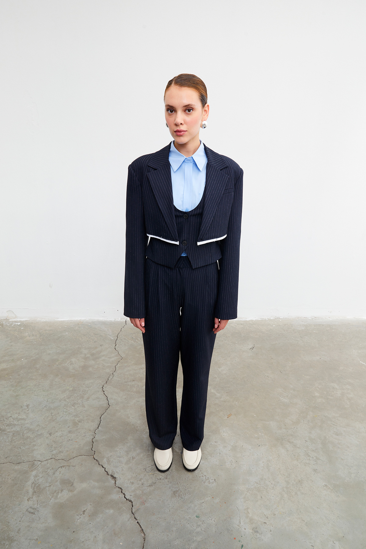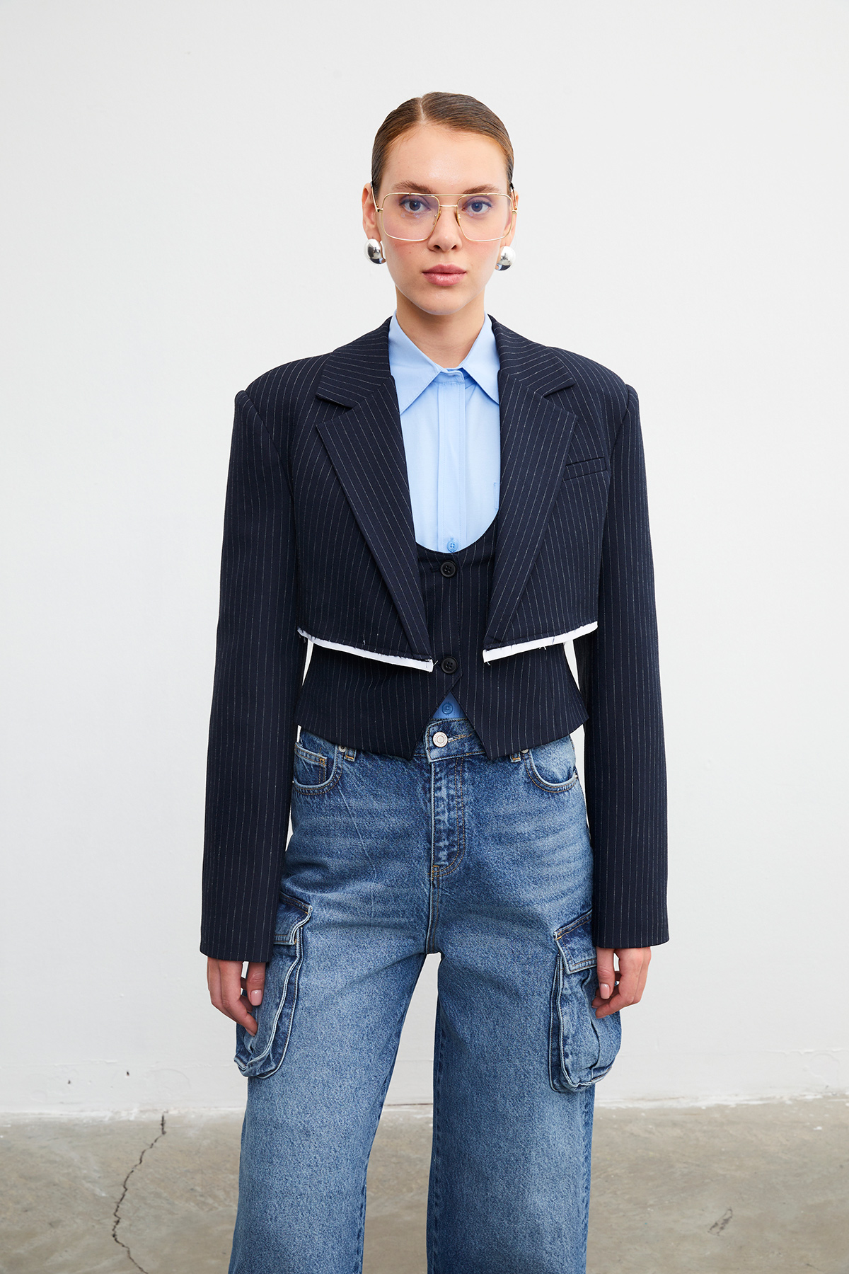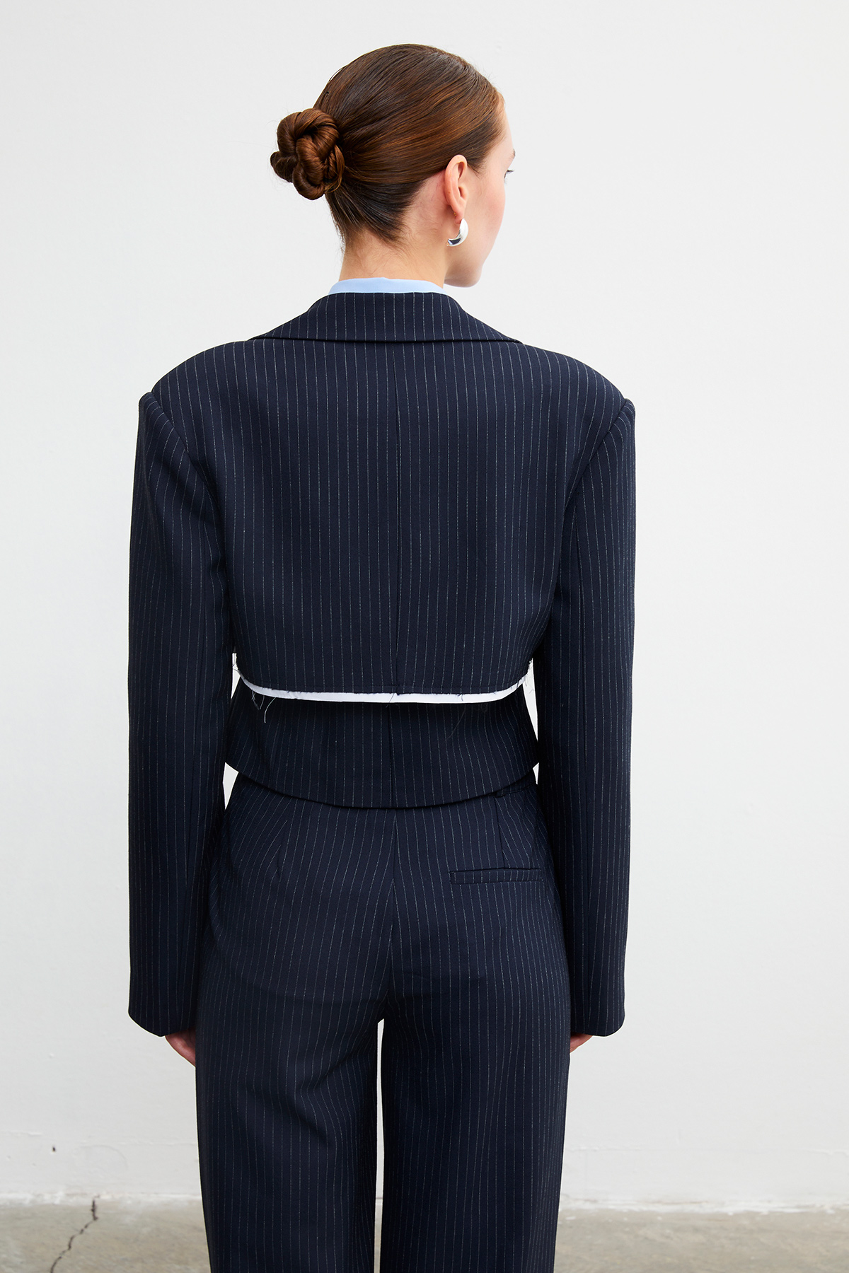 Çizgili crop blazer