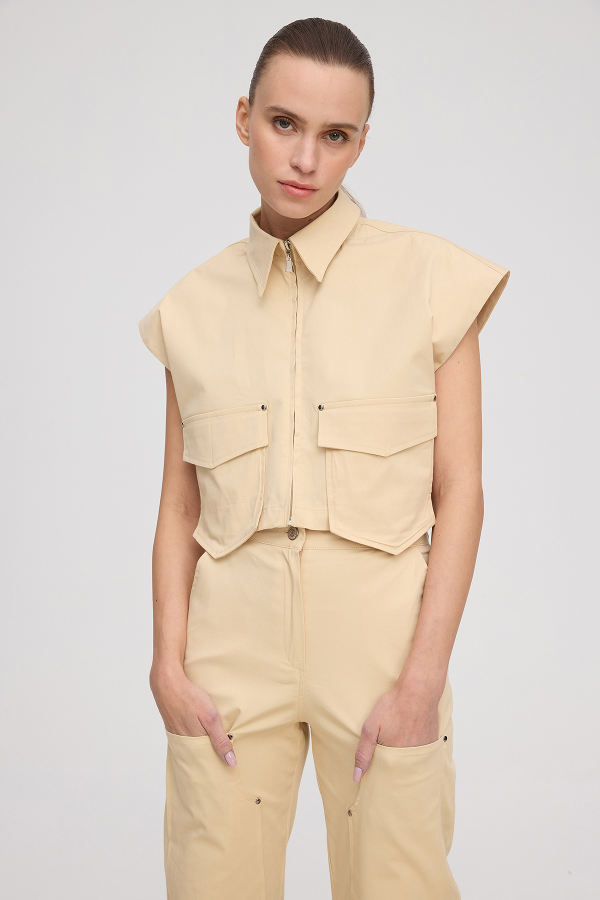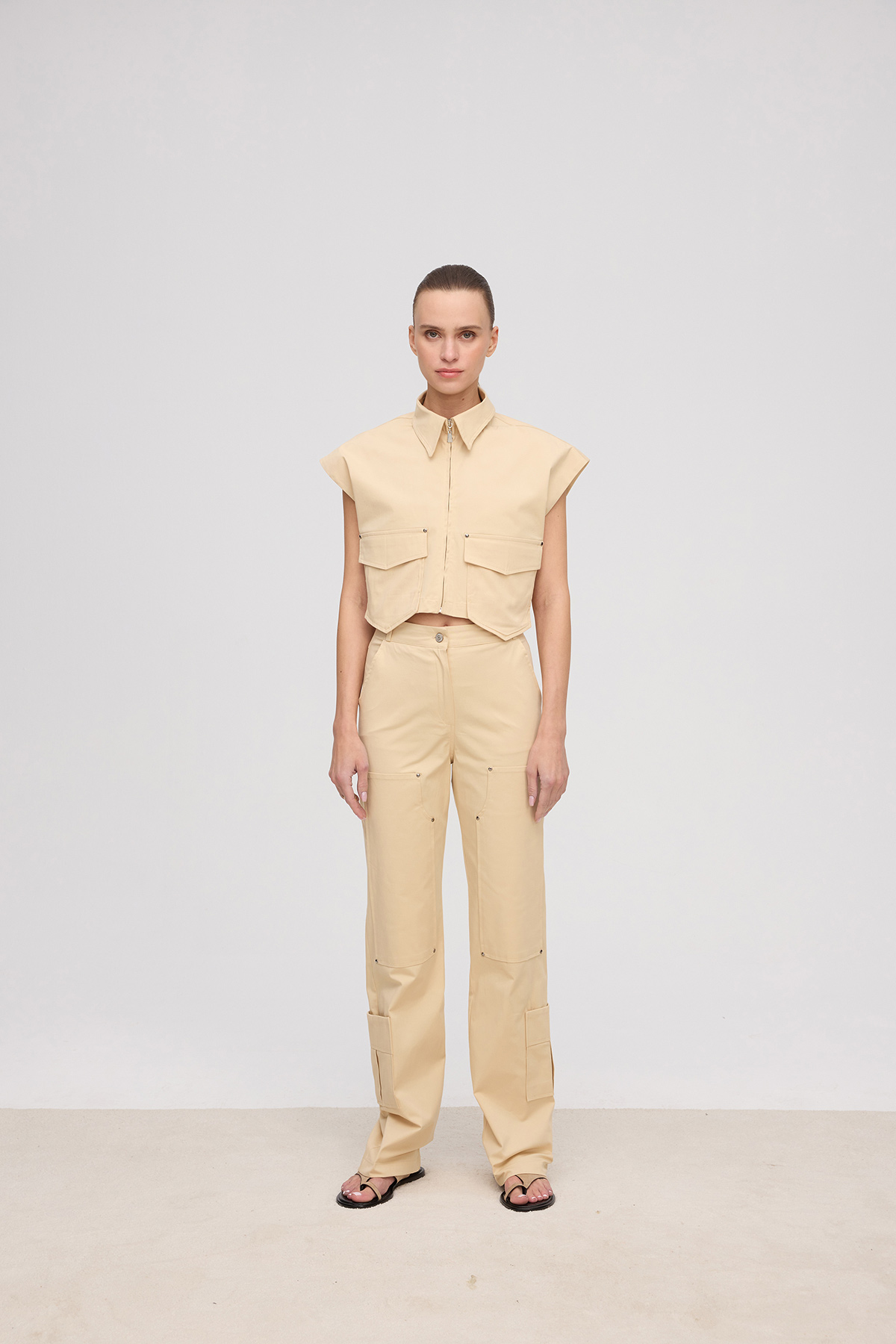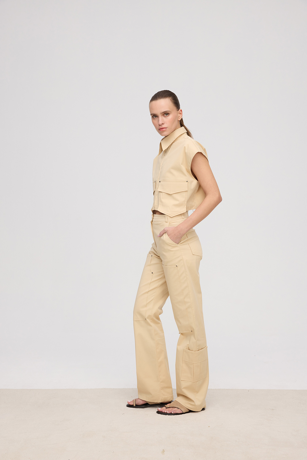 Yüksek bel, düğmeli ve fermuarlı,cep detaylı,düz kesim, önden ve arkadan 4 cepli, tam kalıp pantolon