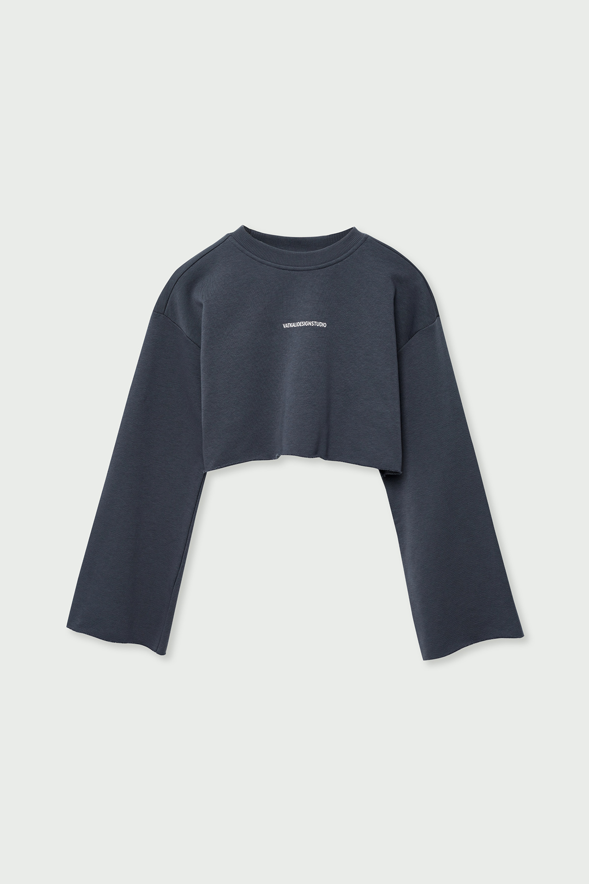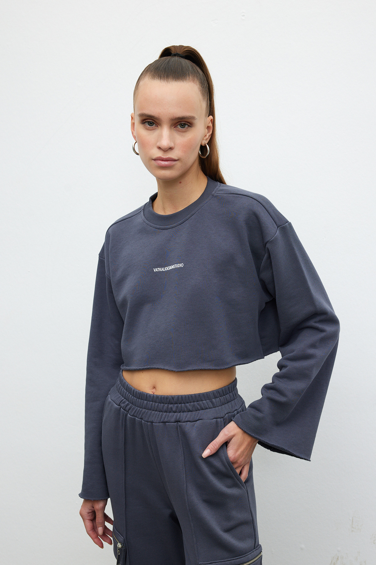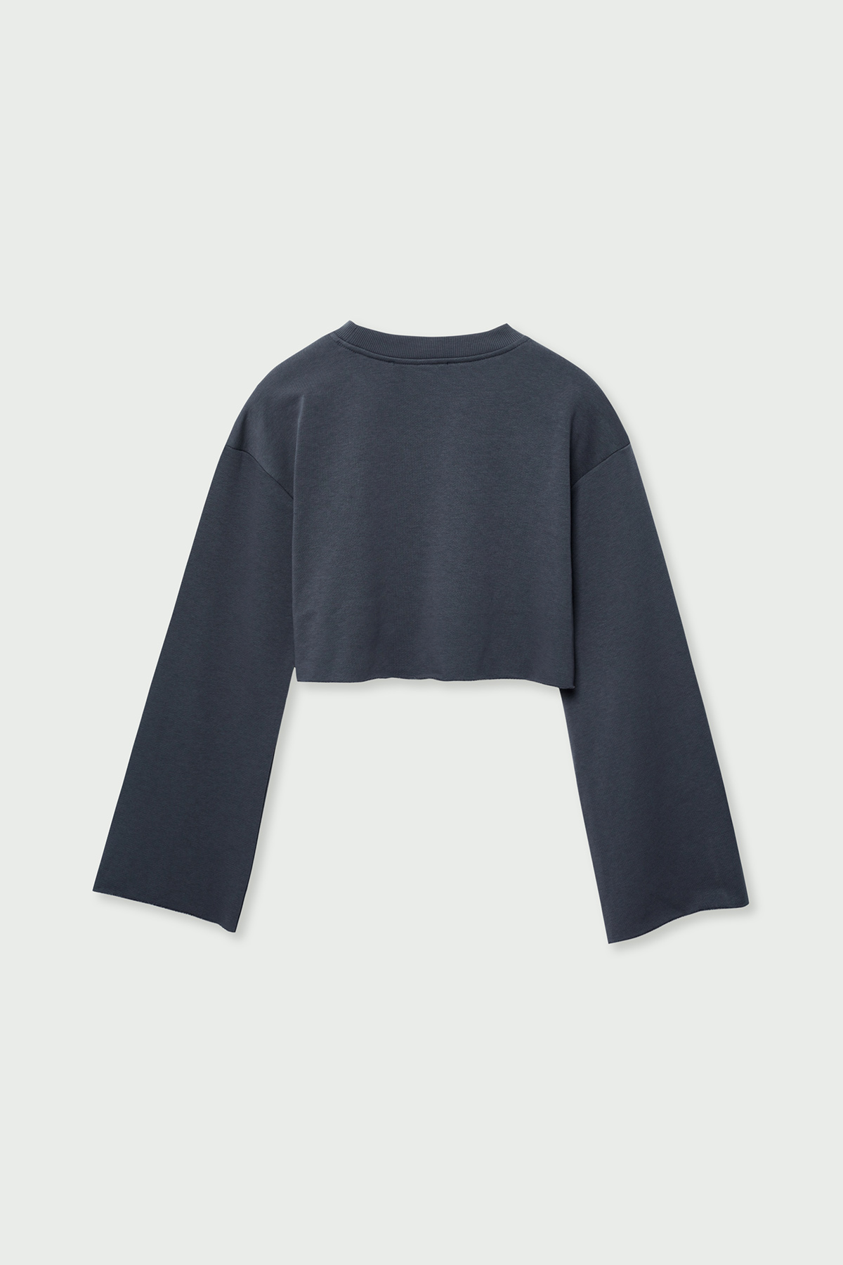 Pamuklu, bisiklet yaka ve uzun kollu, slogan baskılı crop sweatshirt.