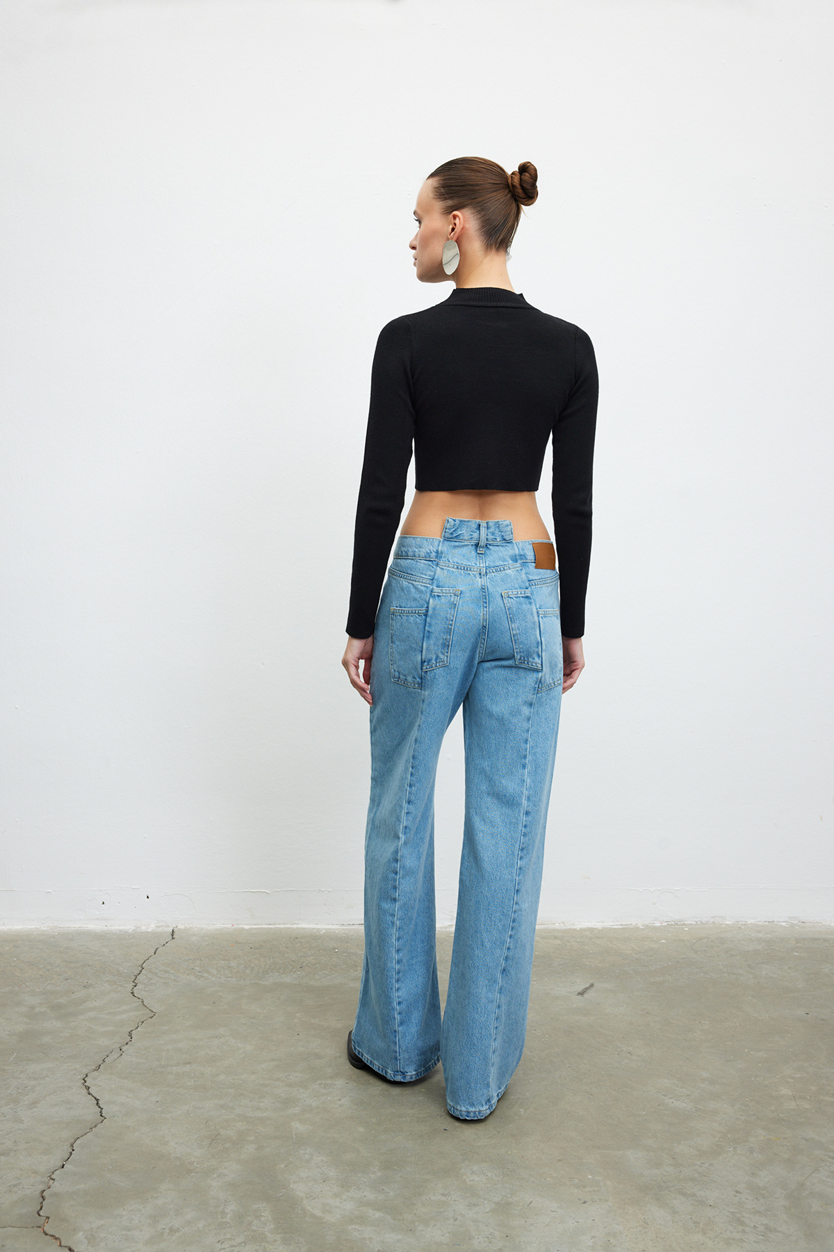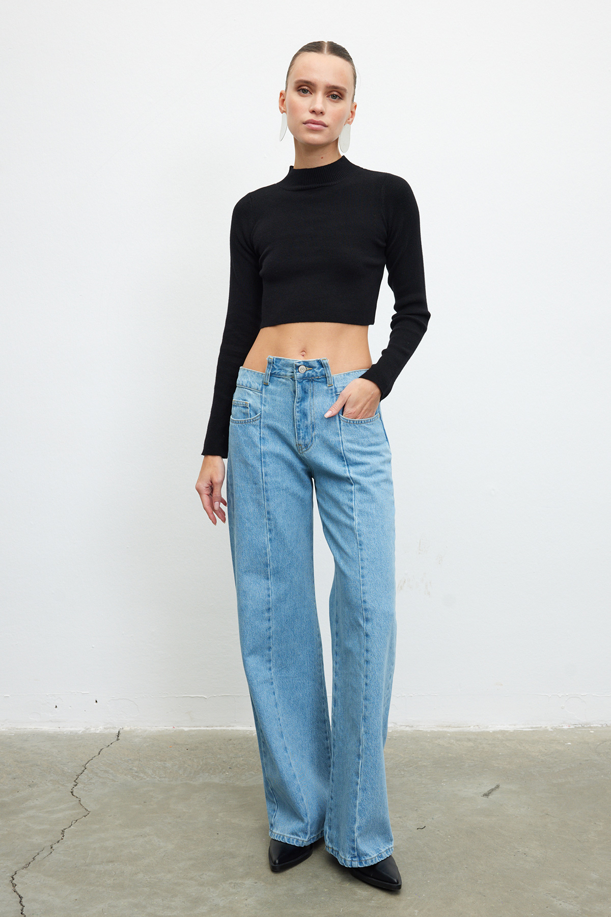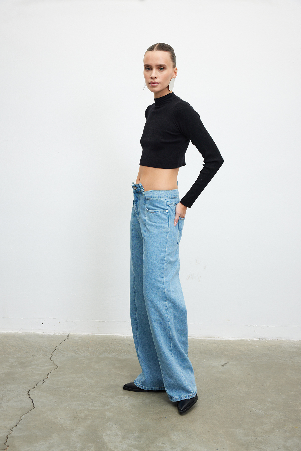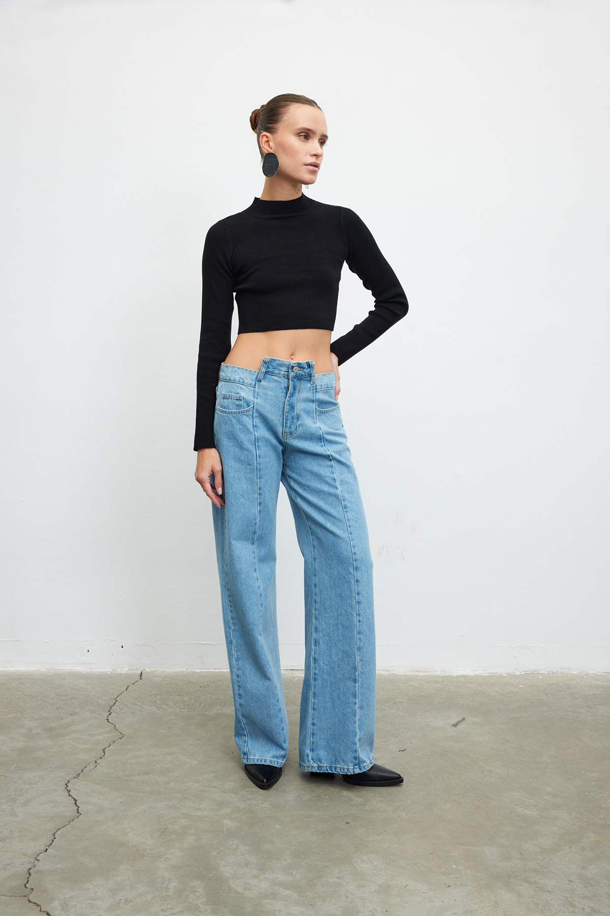 Bel detaylı, 5 cepli, Yüksek bel, Tam kalıp, straight fit jean
