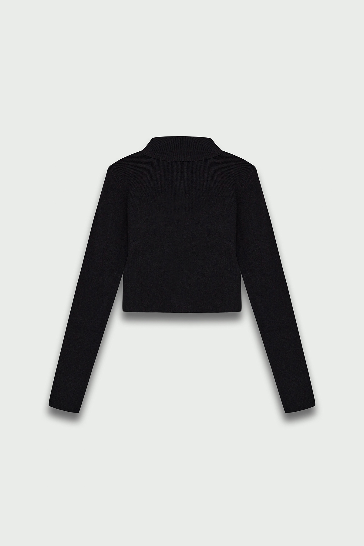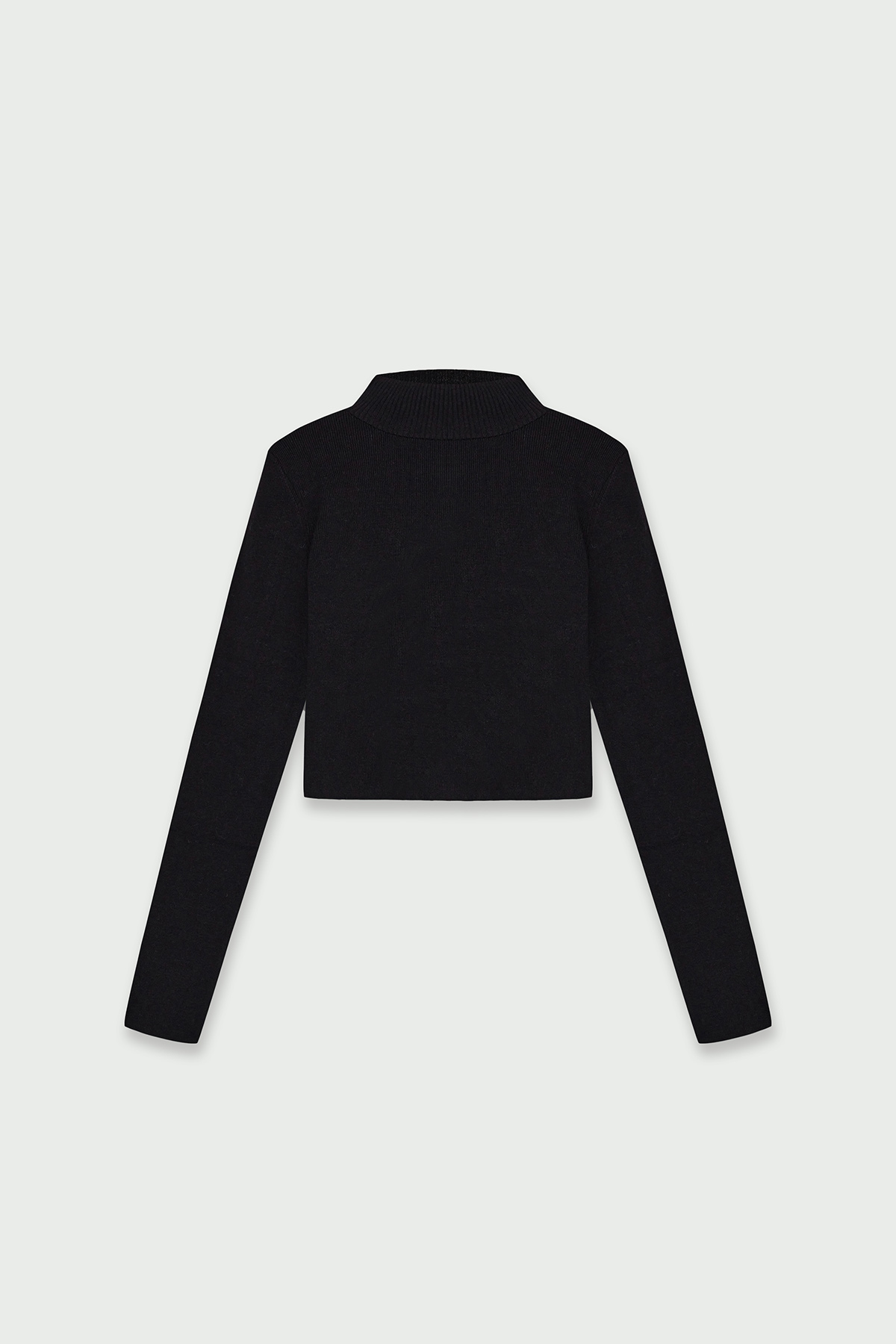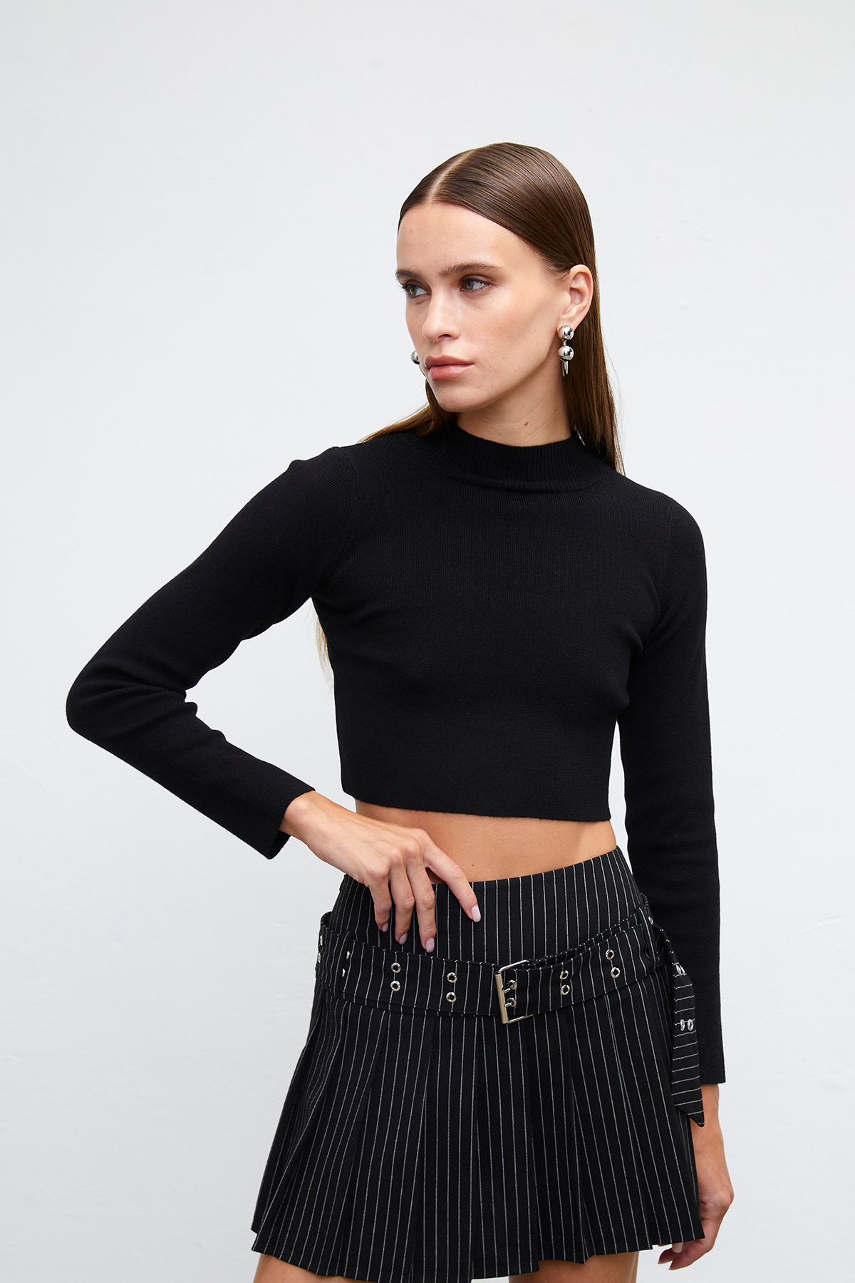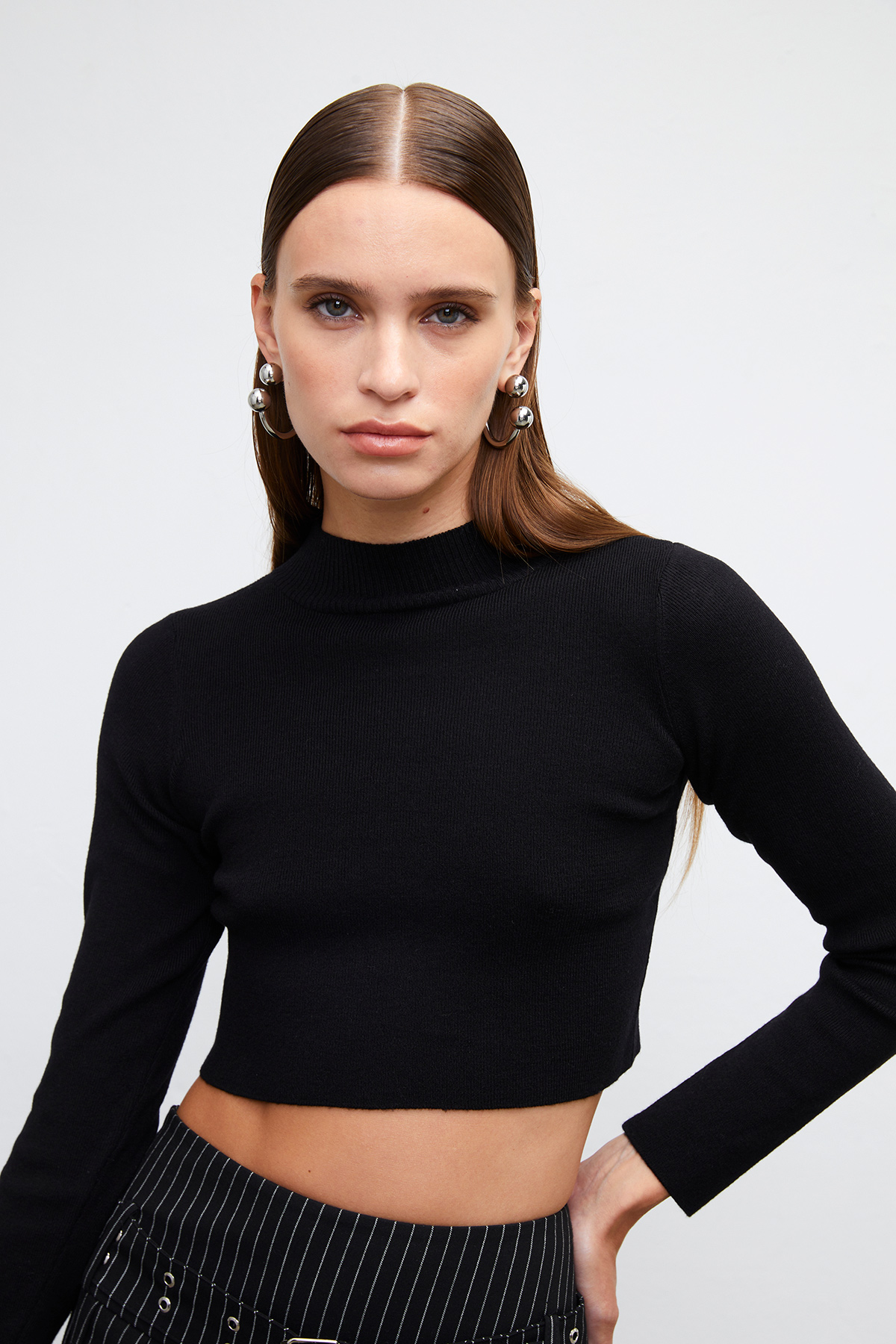 Dik yaka, esnek kumaş, tam kalıp,basic crop kazak.
