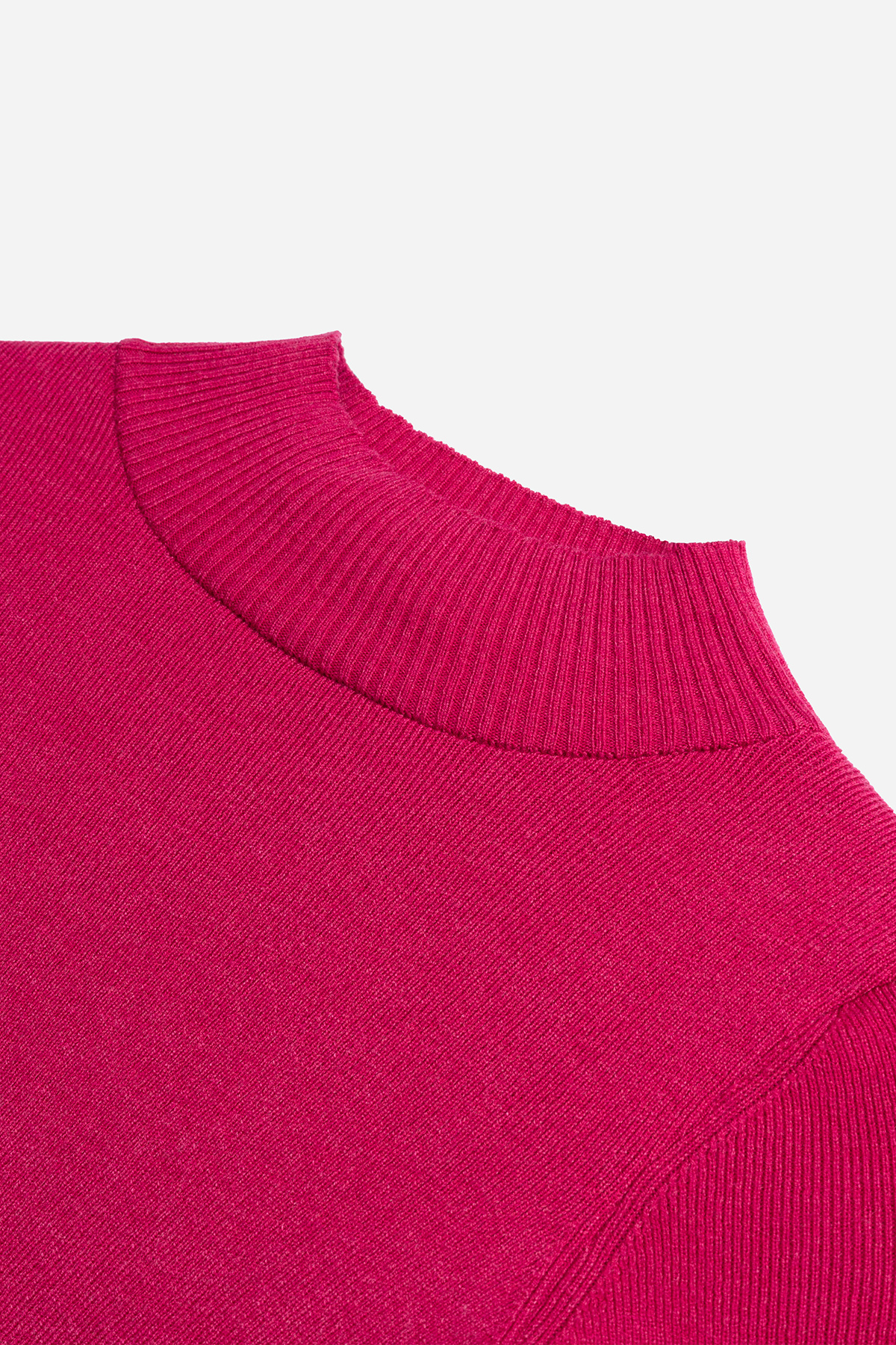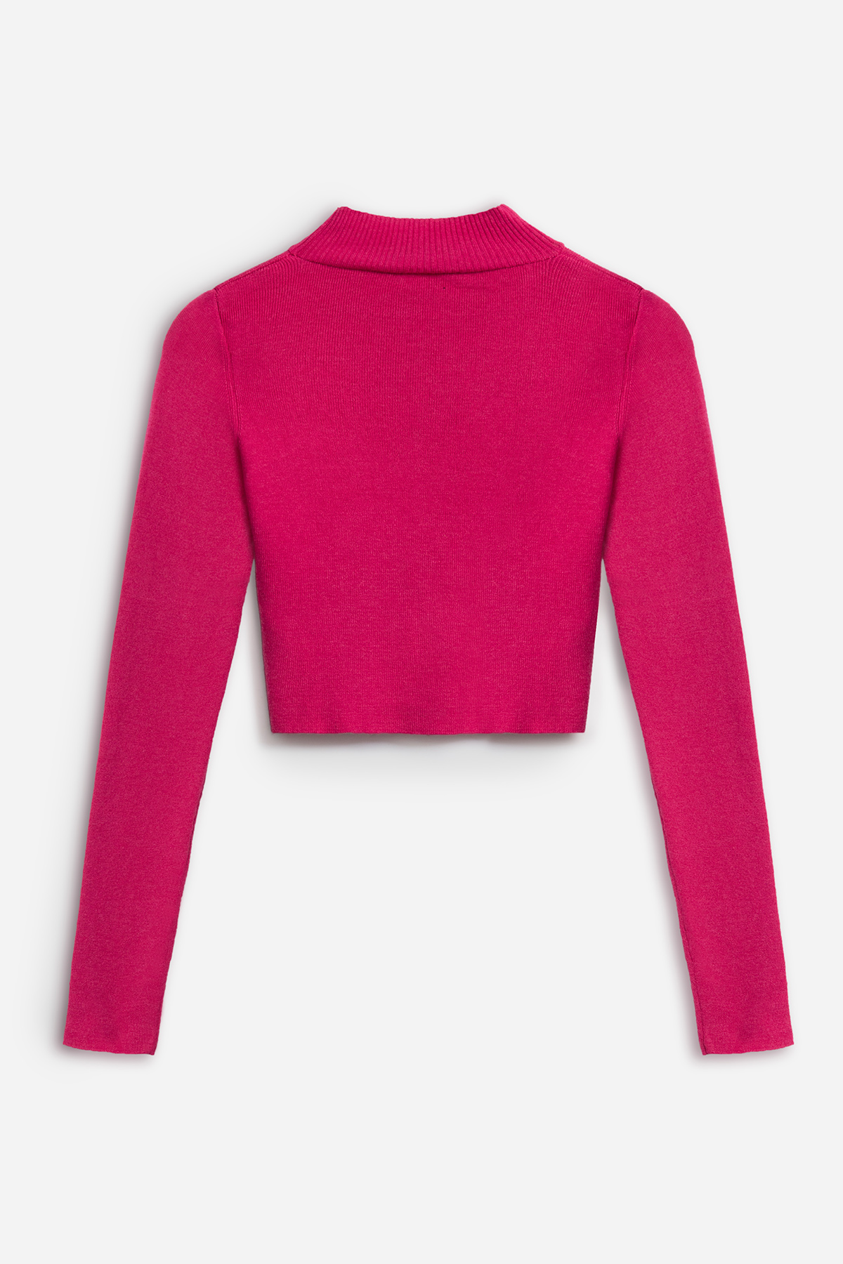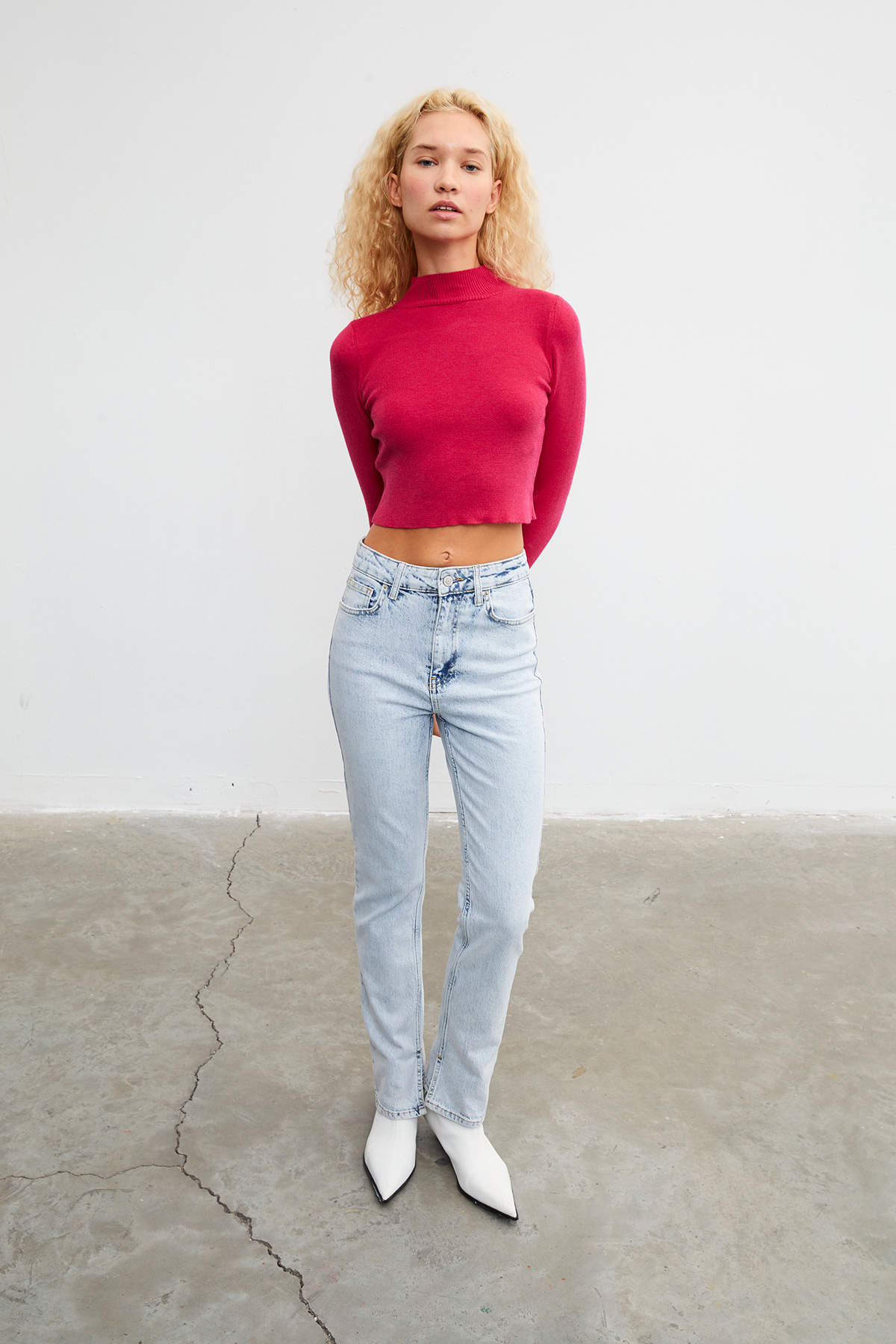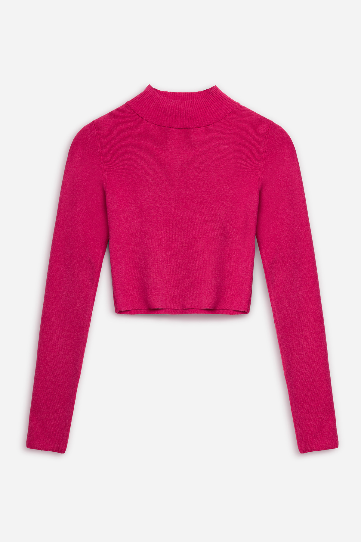 Dik yaka, esnek kumaş, tam kalıp,basic crop kazak.