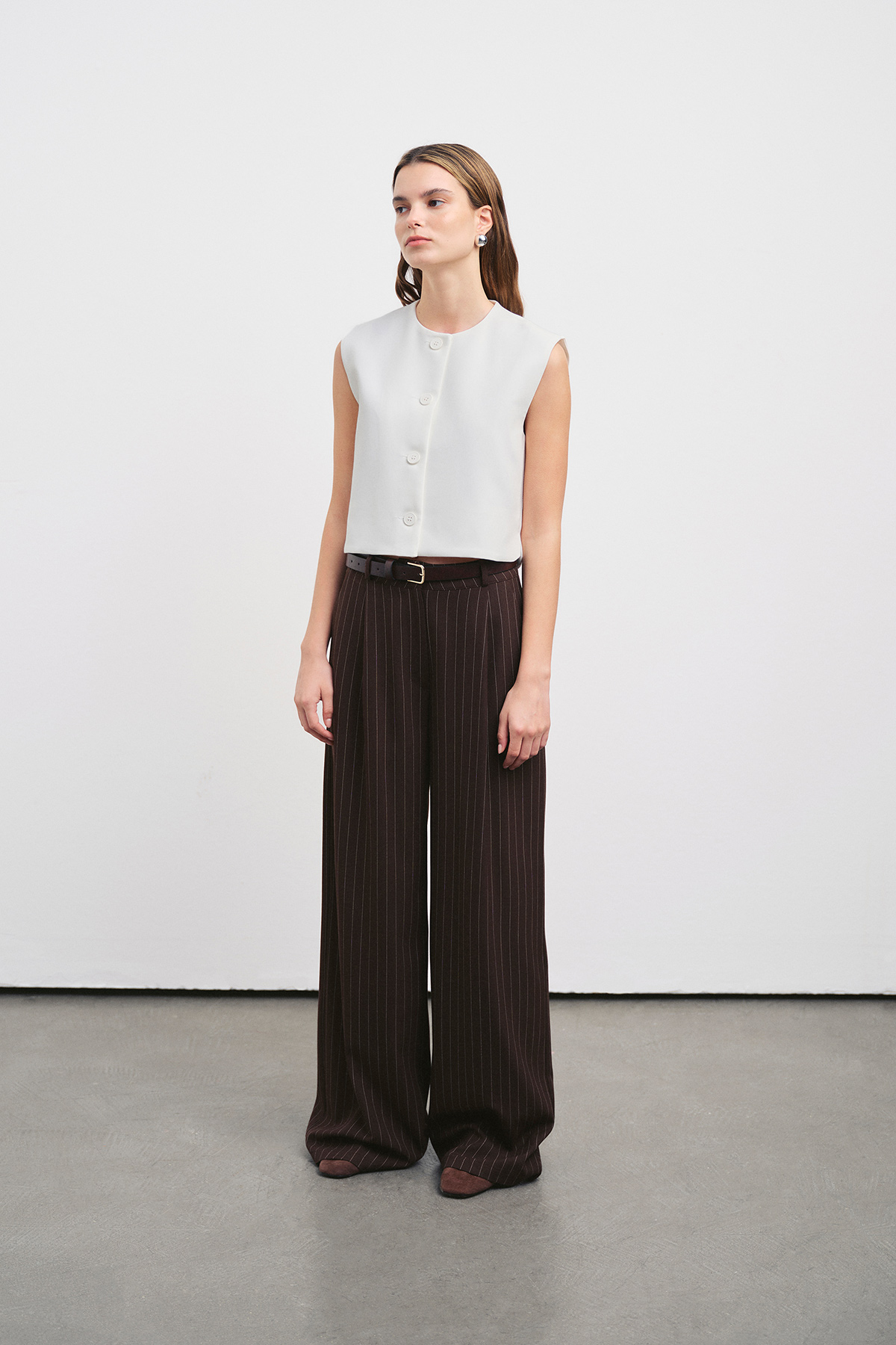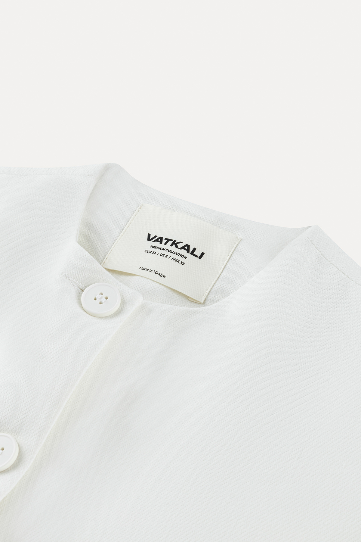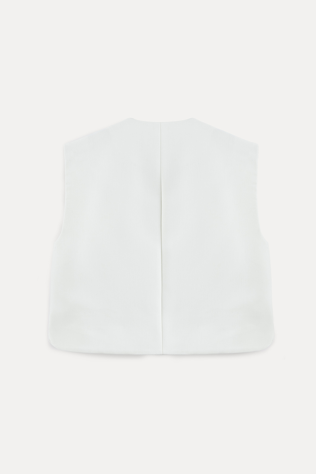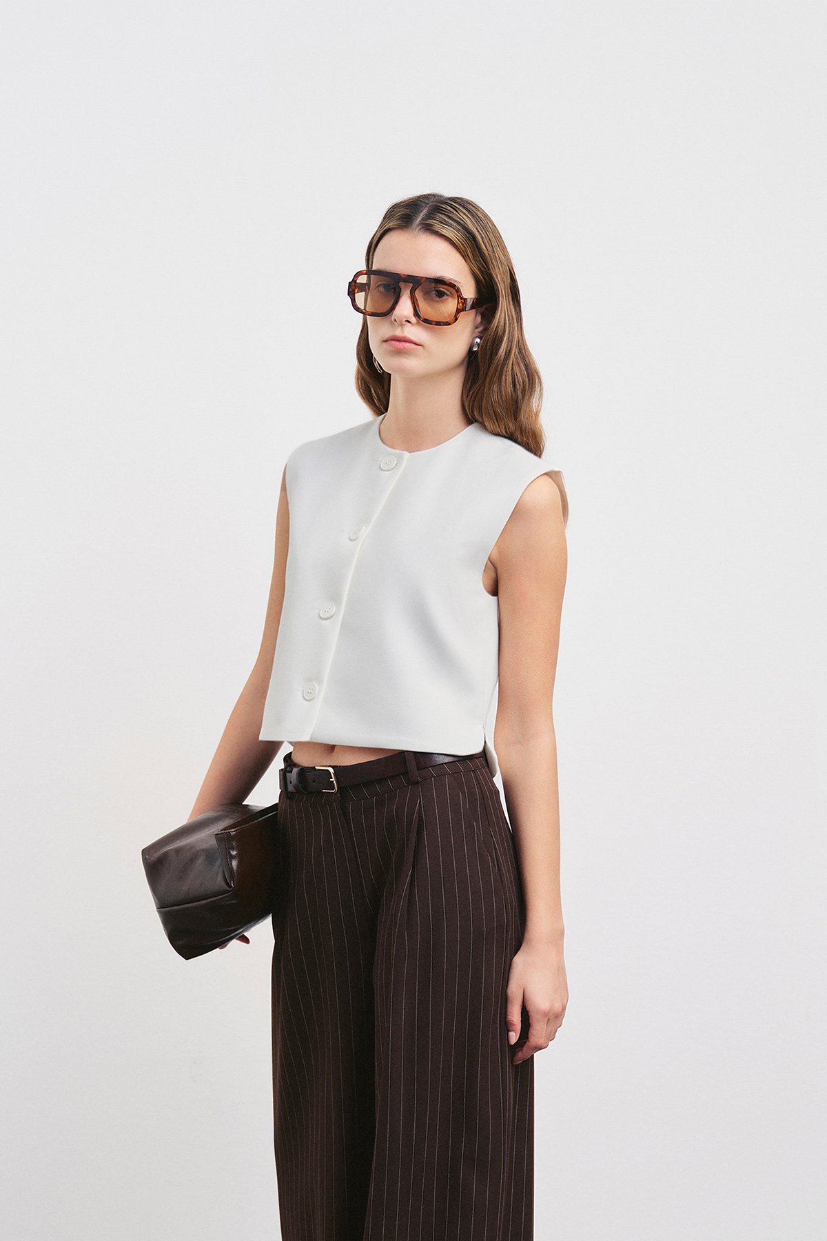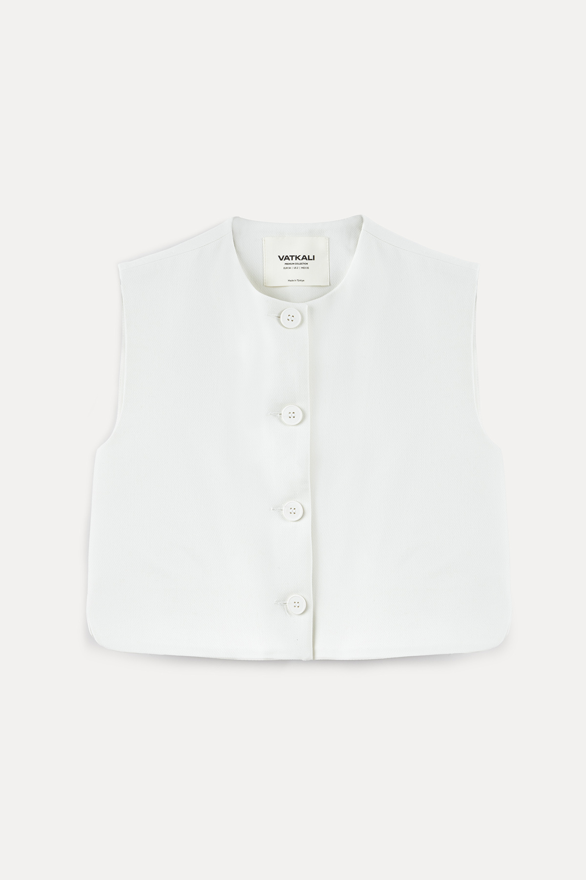 Bisiklet yaka, kolsuz, önü düğmeli,astarlı,tam kalıp yelek.