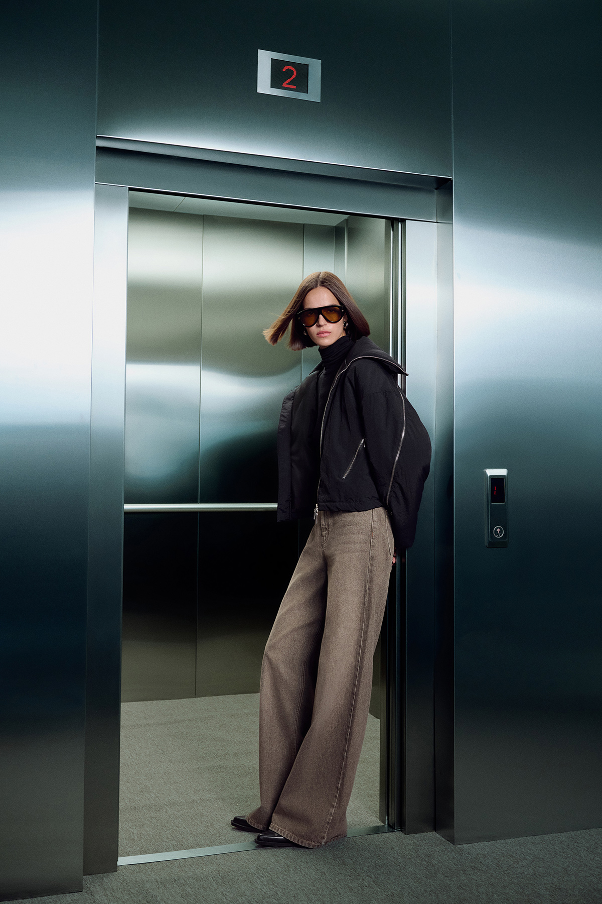 Kapüşonsuz, uzun kollu, fermuarlı, önden iki cepli, alt kısmı lastikli bomber mont.