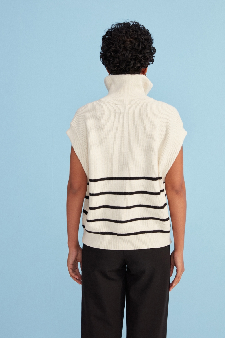 Yarım balıkçı yaka, önden yarım fermuarlı,çizgili kadın triko süveter