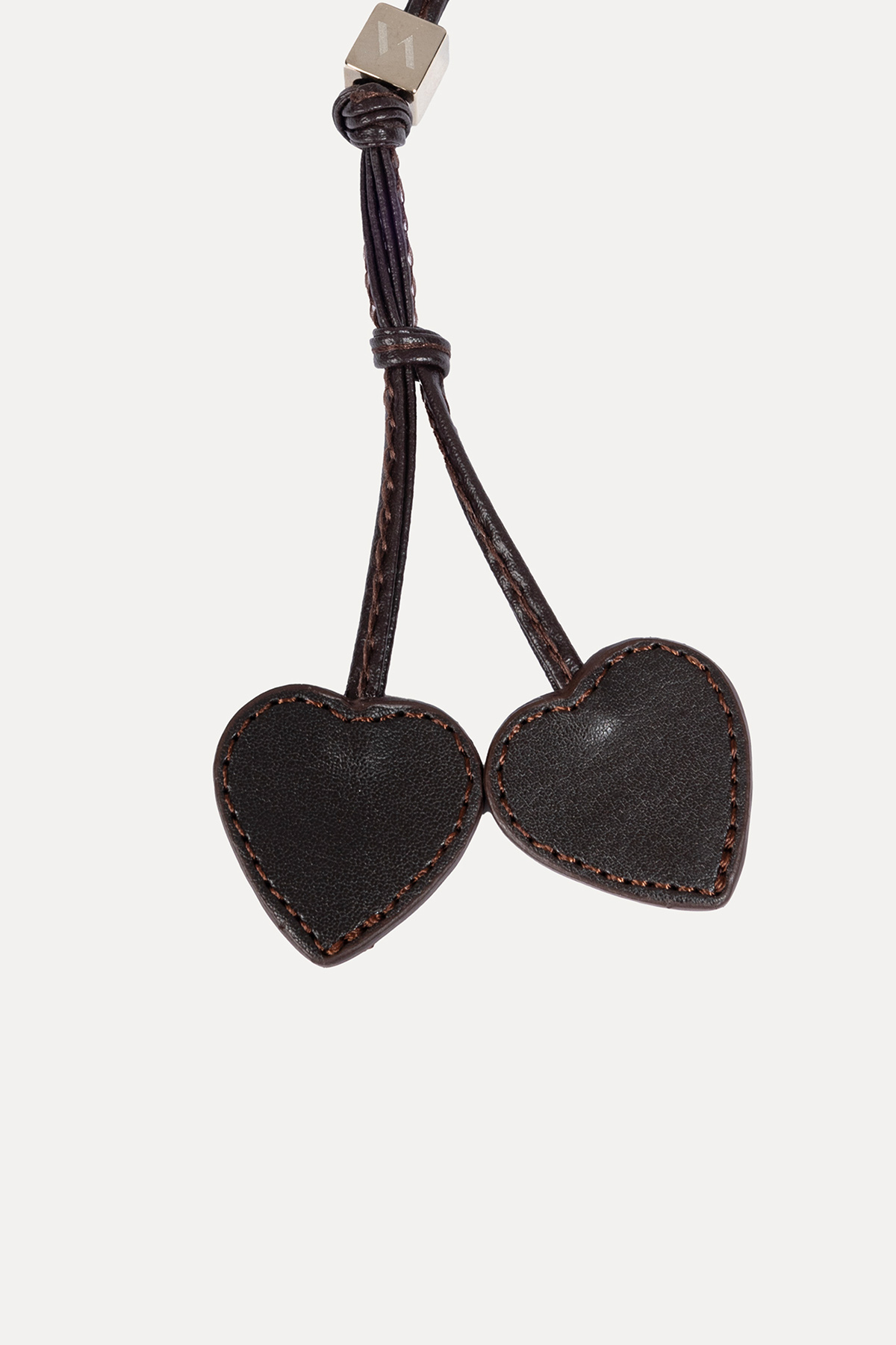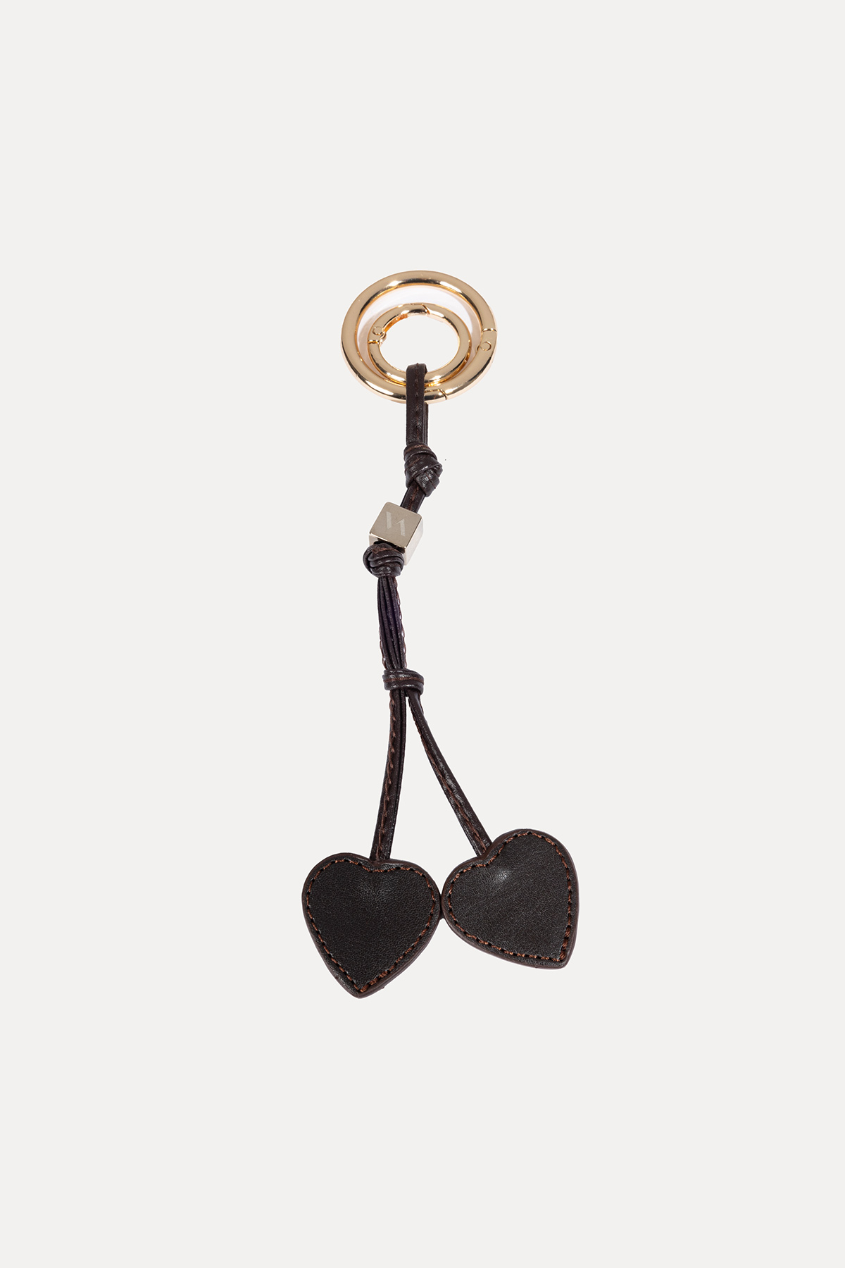 Çanta aksesuarı,gold klipsli, logolu aksesuar detayına sahip, şık ve zarif tasarım, kaliteli deri materyal, kalp şeklinde aksesuar.