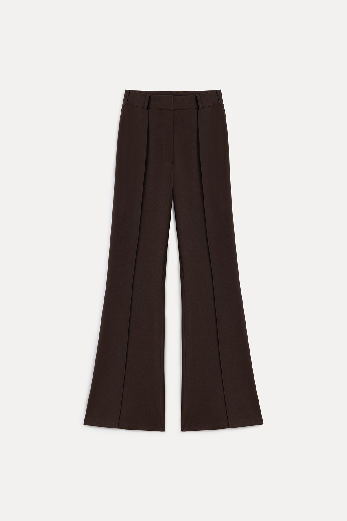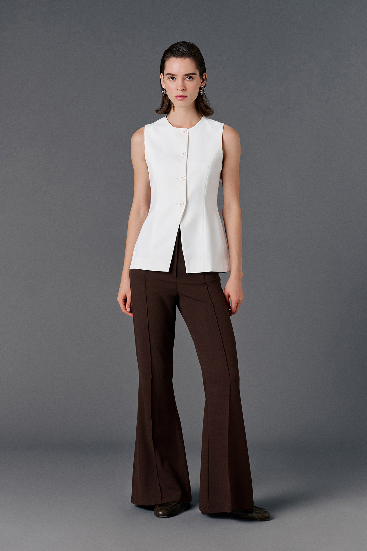 Yüksek bel, fermuarlı, ispanyol paça,tam kalıp,nervürlü, kadın pantolon.