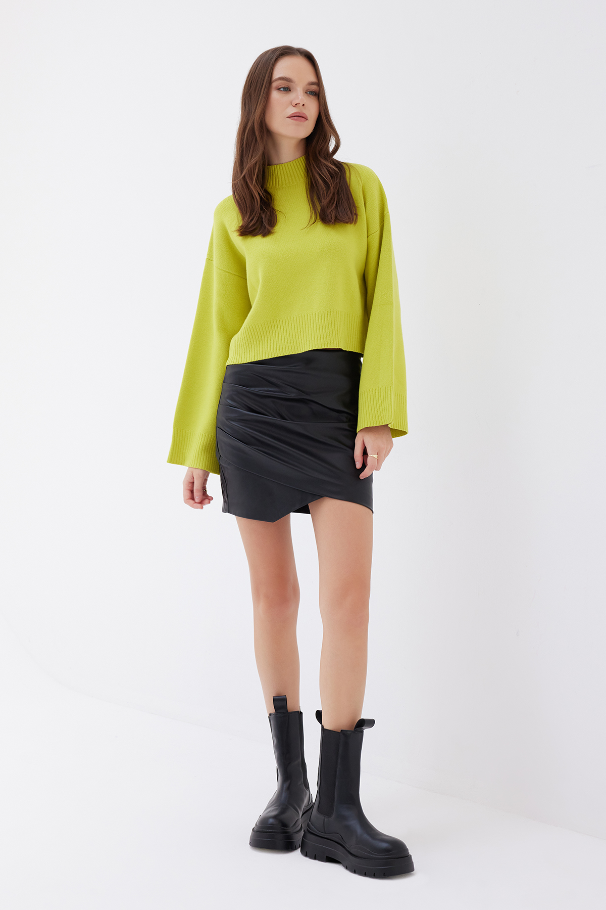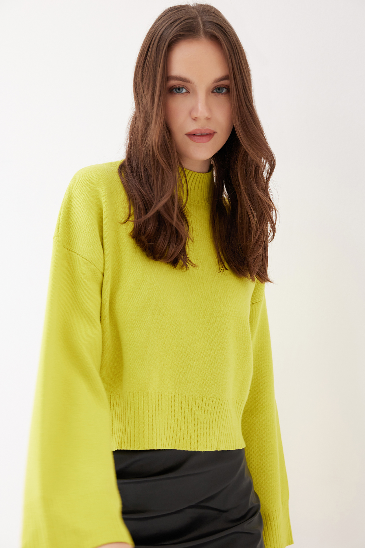 Yarım balıkçı yaka, geniş kollu, oversize kalıp