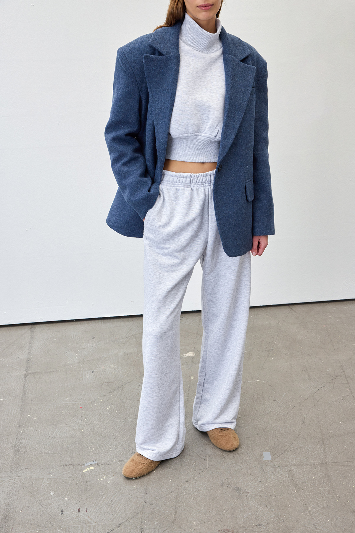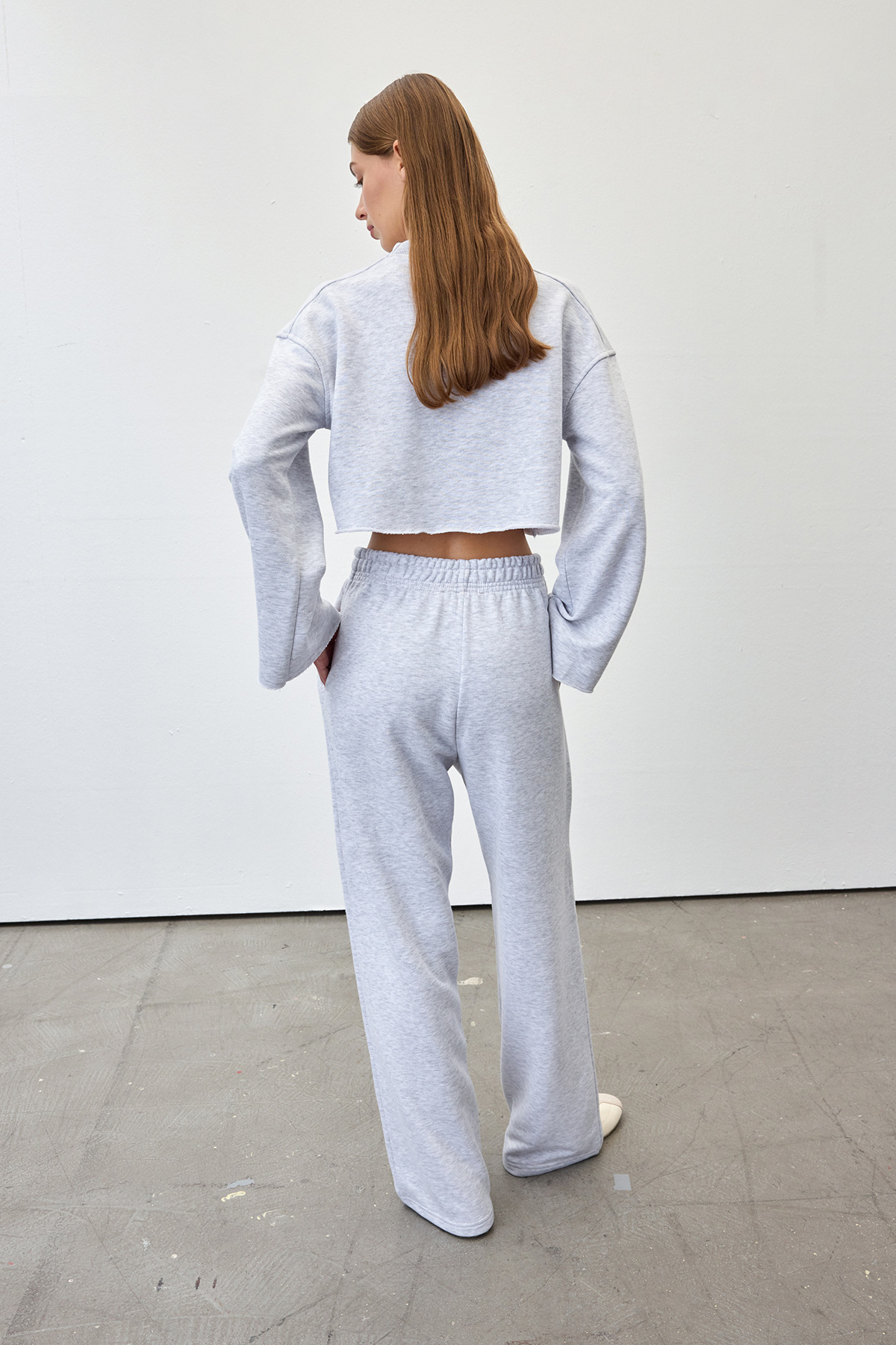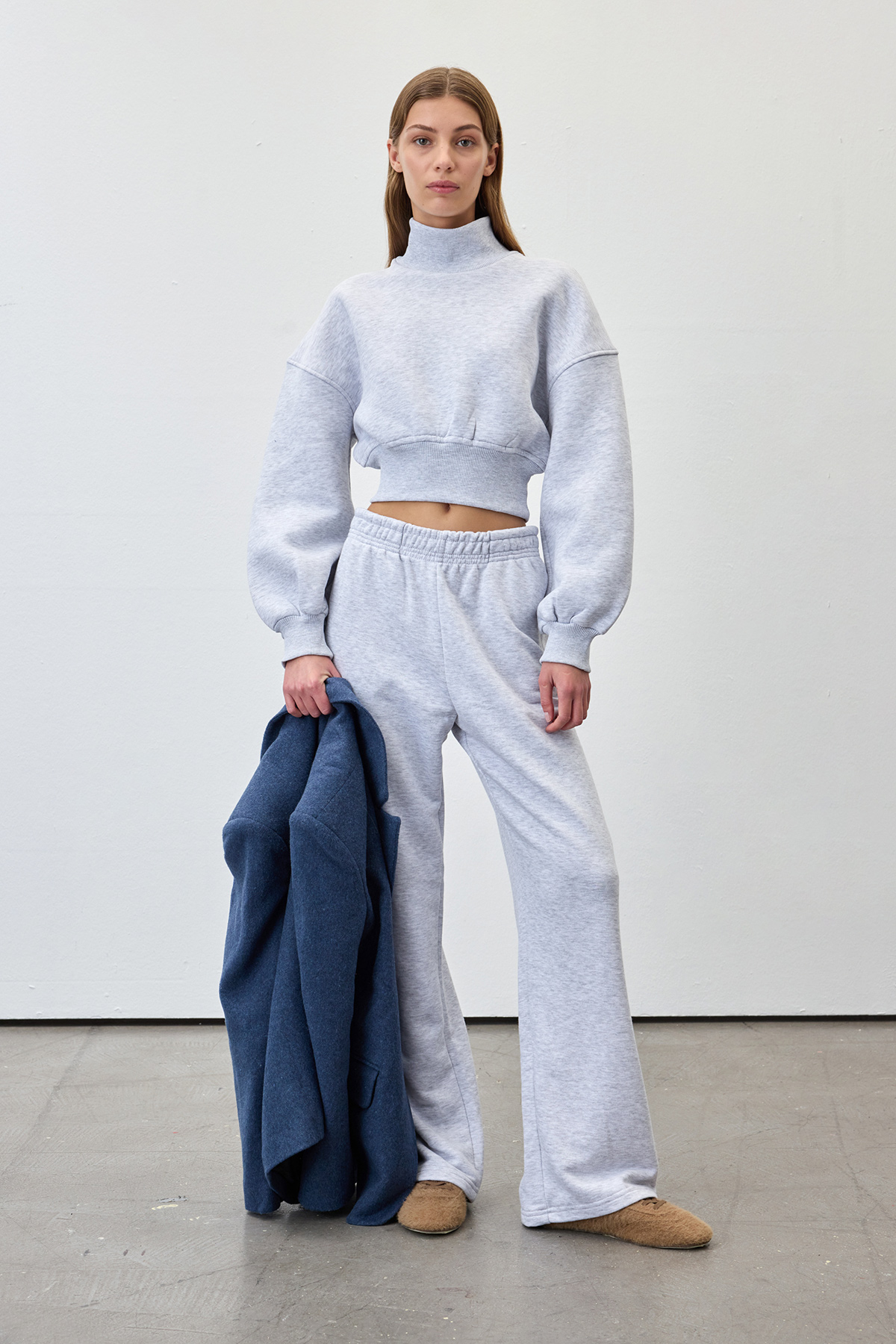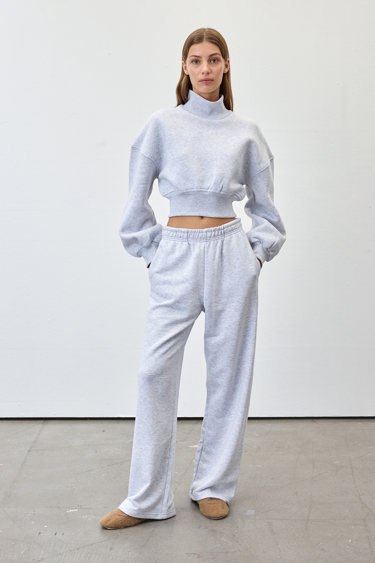 Yüksek bel, beli lastikli, yandan 2 cepli, tam kalıp jogger pantolon.