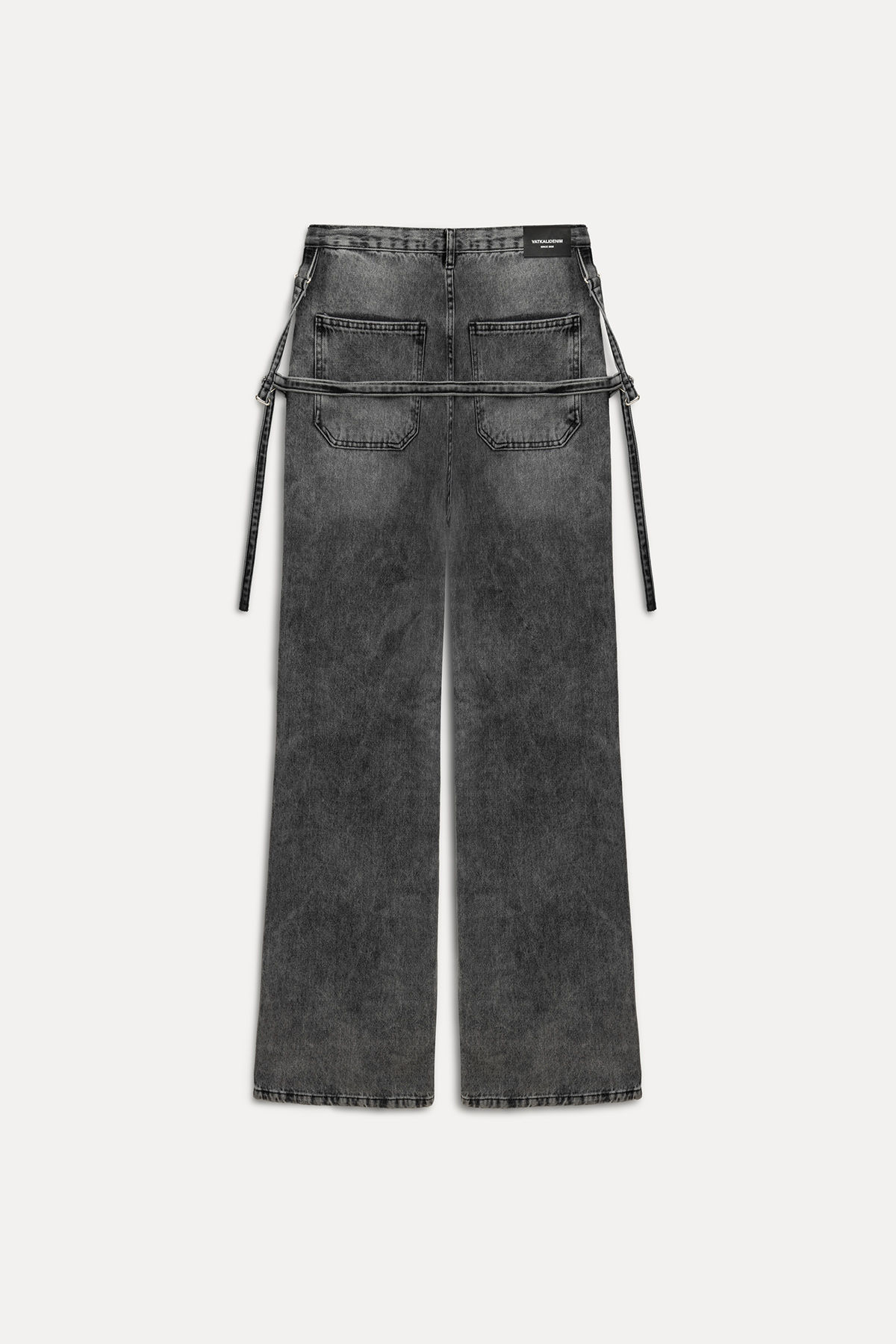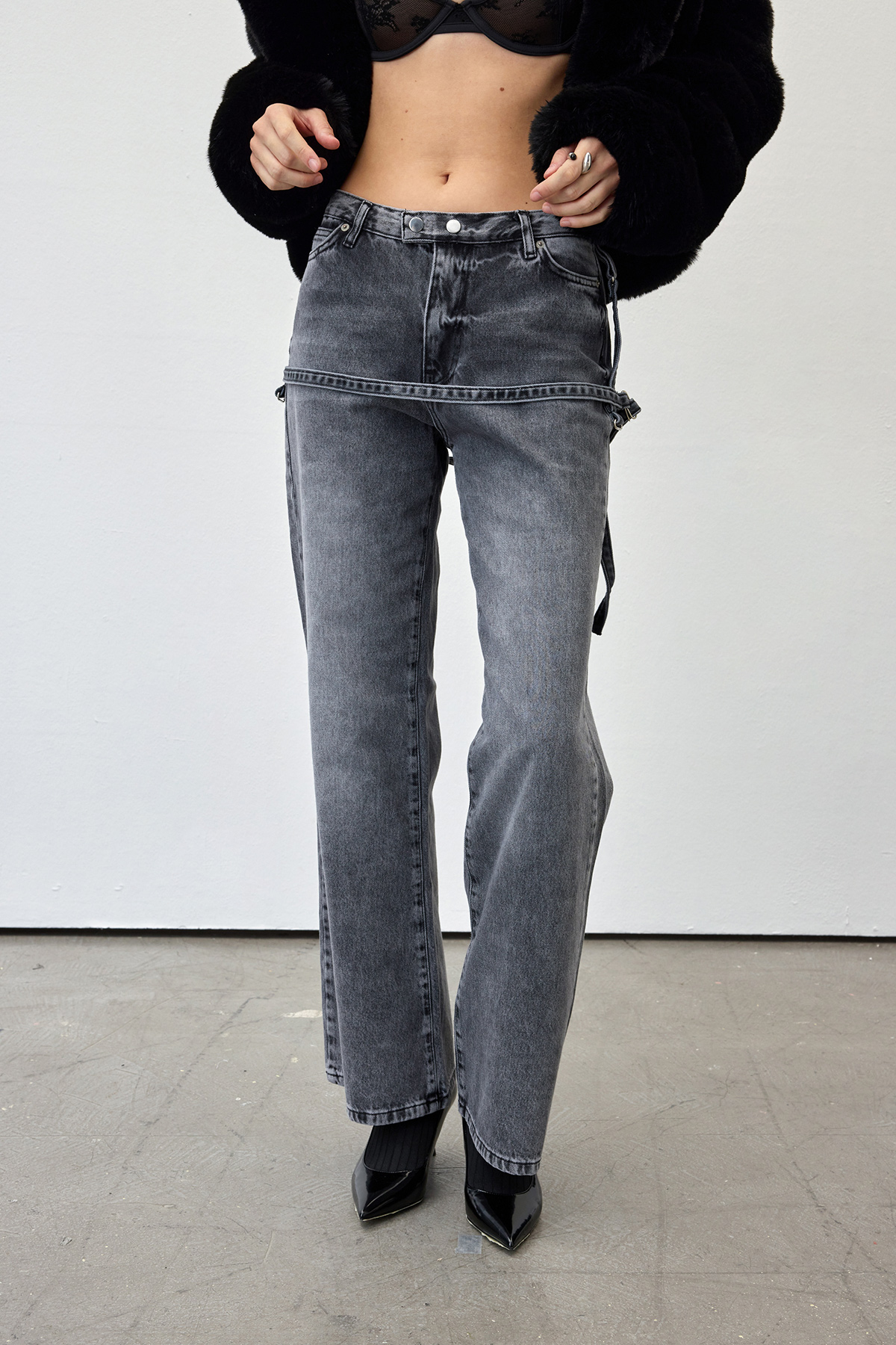Önü çıtçıtlı ve fermuarlı, tam kalıp, bol paça, ön ve arka 2 cepli, yüksek bel tasarım jean.