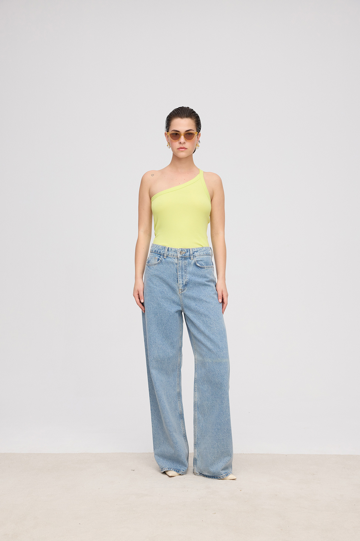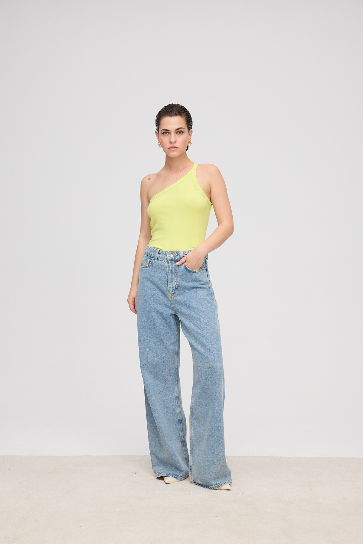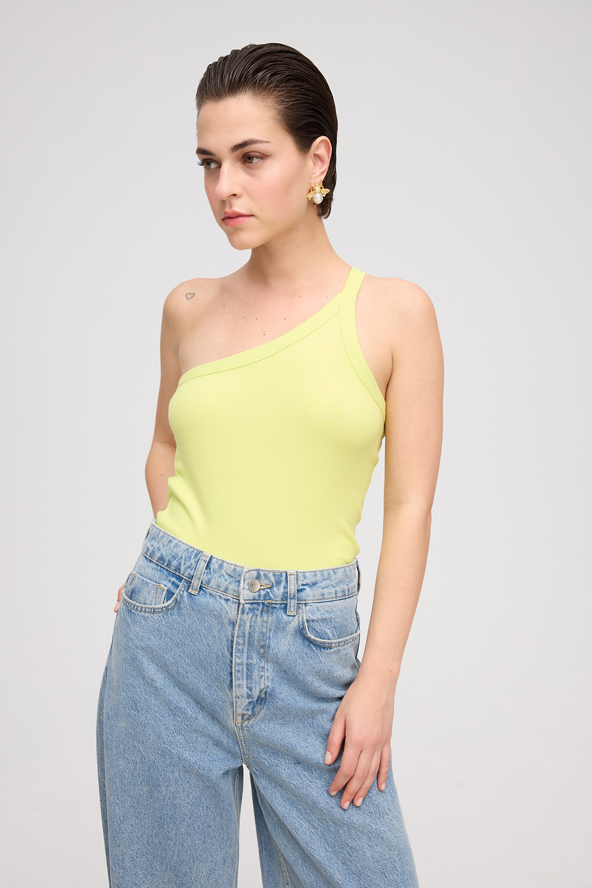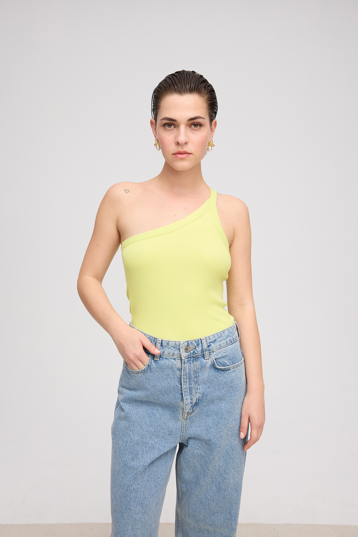 Asimetrik yaka, fitilli,tek askılı,esnek,tam kalıp, one shoulder basic top
