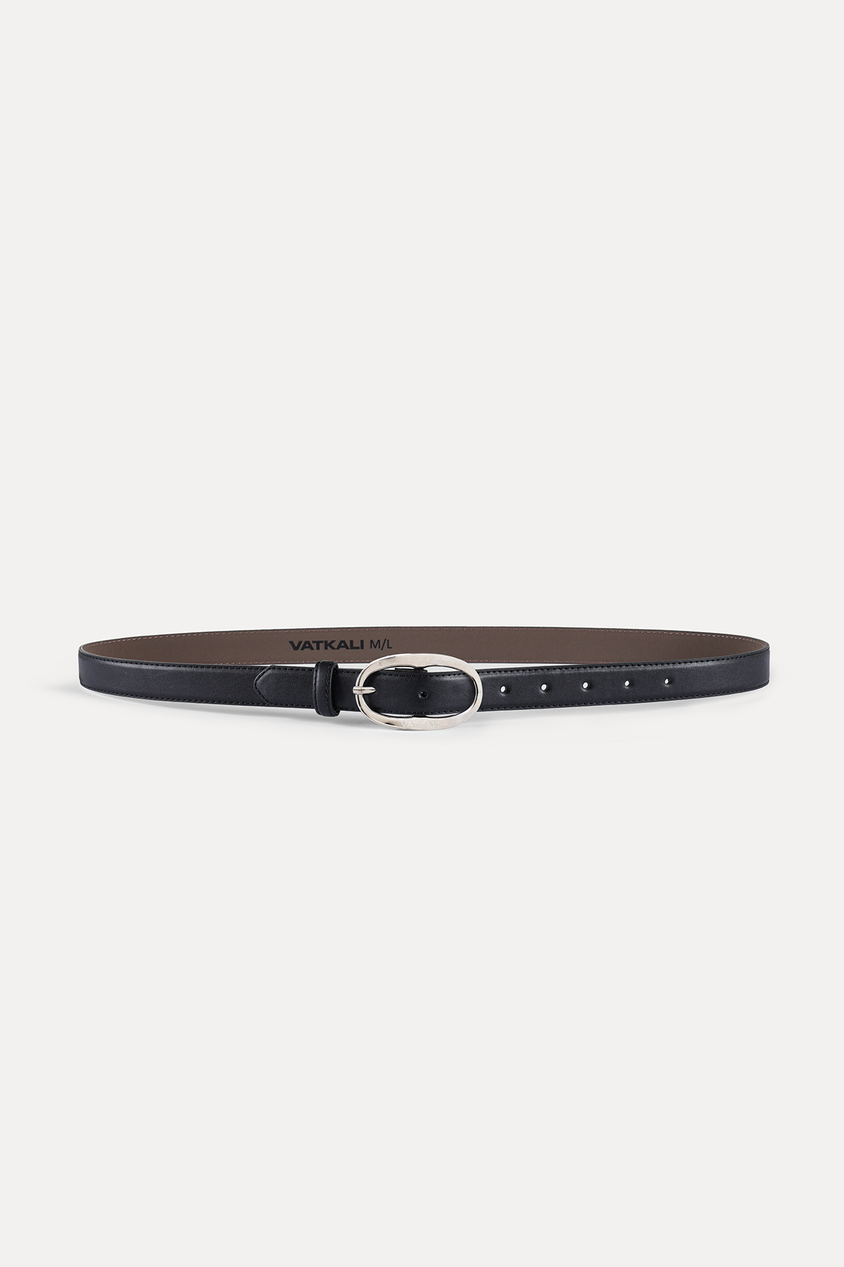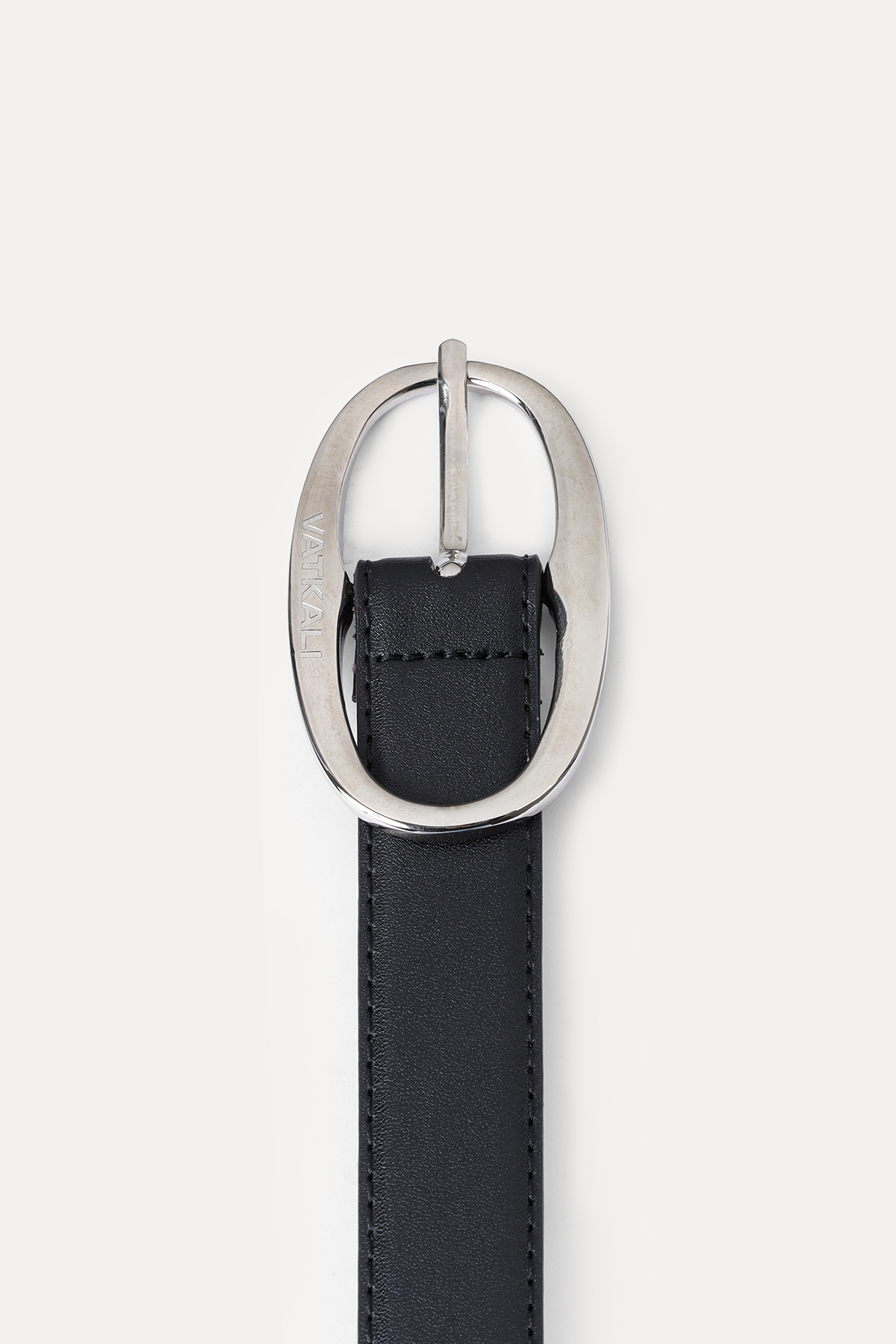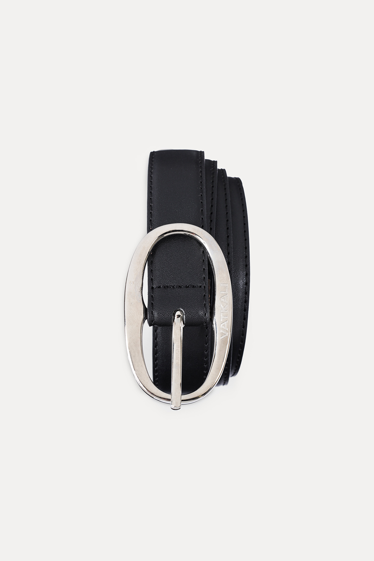 Oval tokalı siyah deri kemer