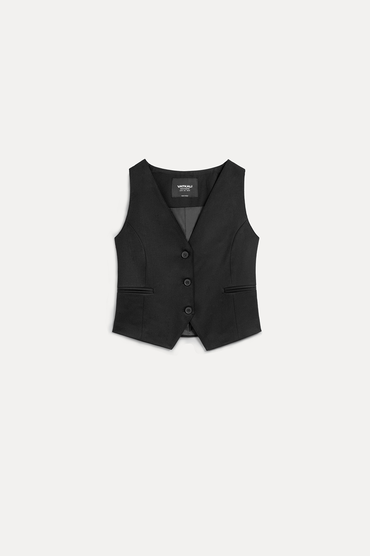 V yaka, Önden düğmeli, Sahte cepli, Kumaş yelek.
