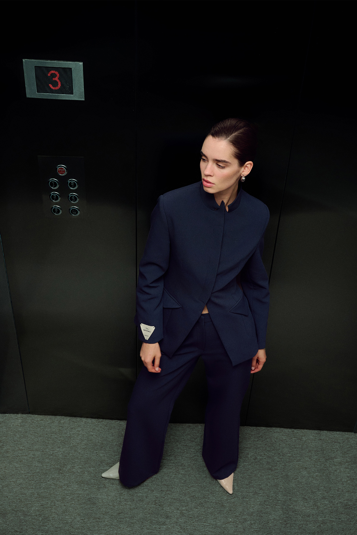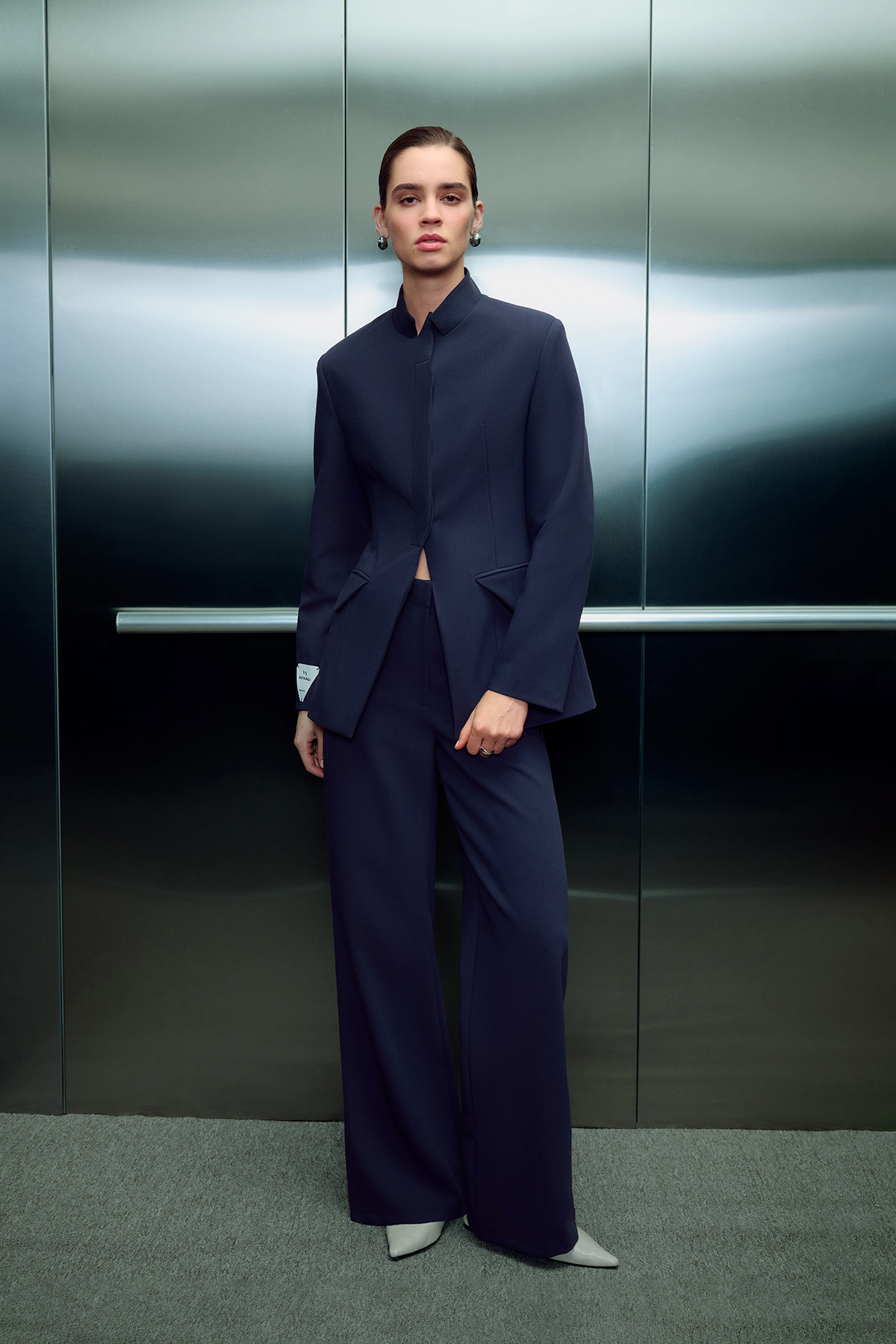 Vatkalı, iki adet işlevsiz cep aksesuarlı, gizli patlı, düğmeli, uzun kollu, astarlı,vücuda oturan blazer ceket