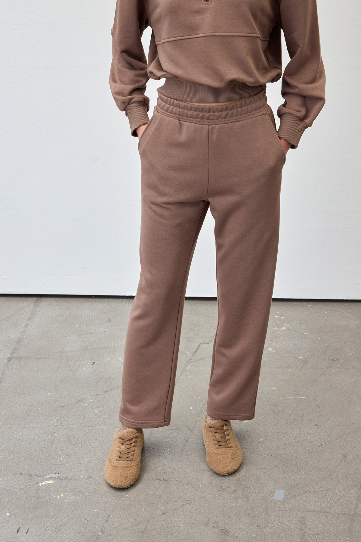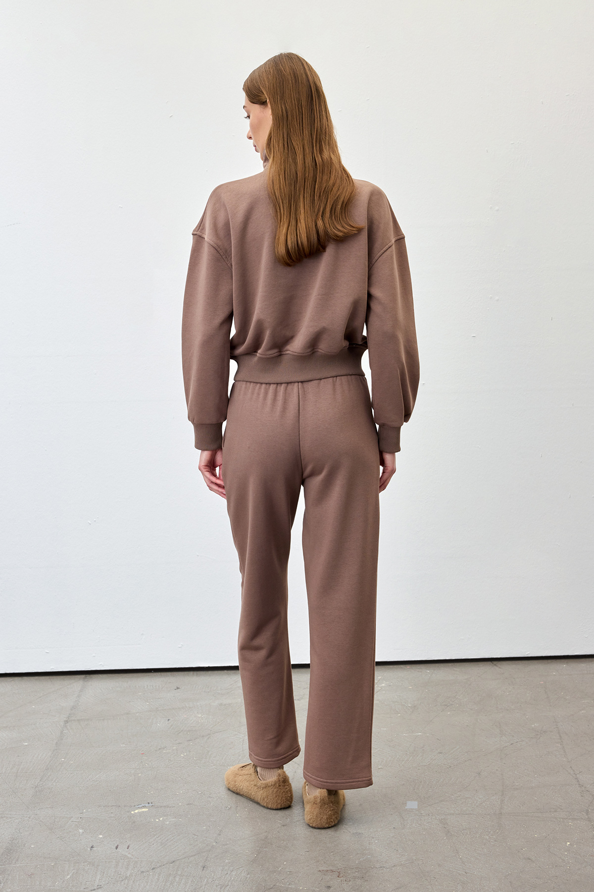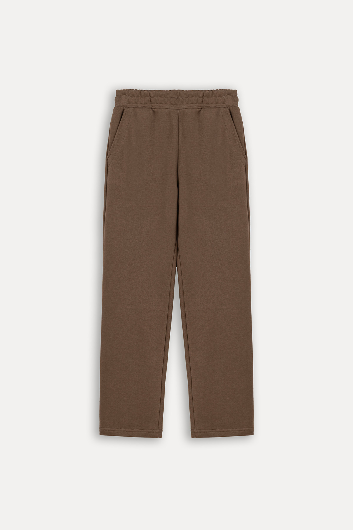 Yüksek bel, beli lastikli, yandan 2 cepli, tam kalıp jogger pantolon.