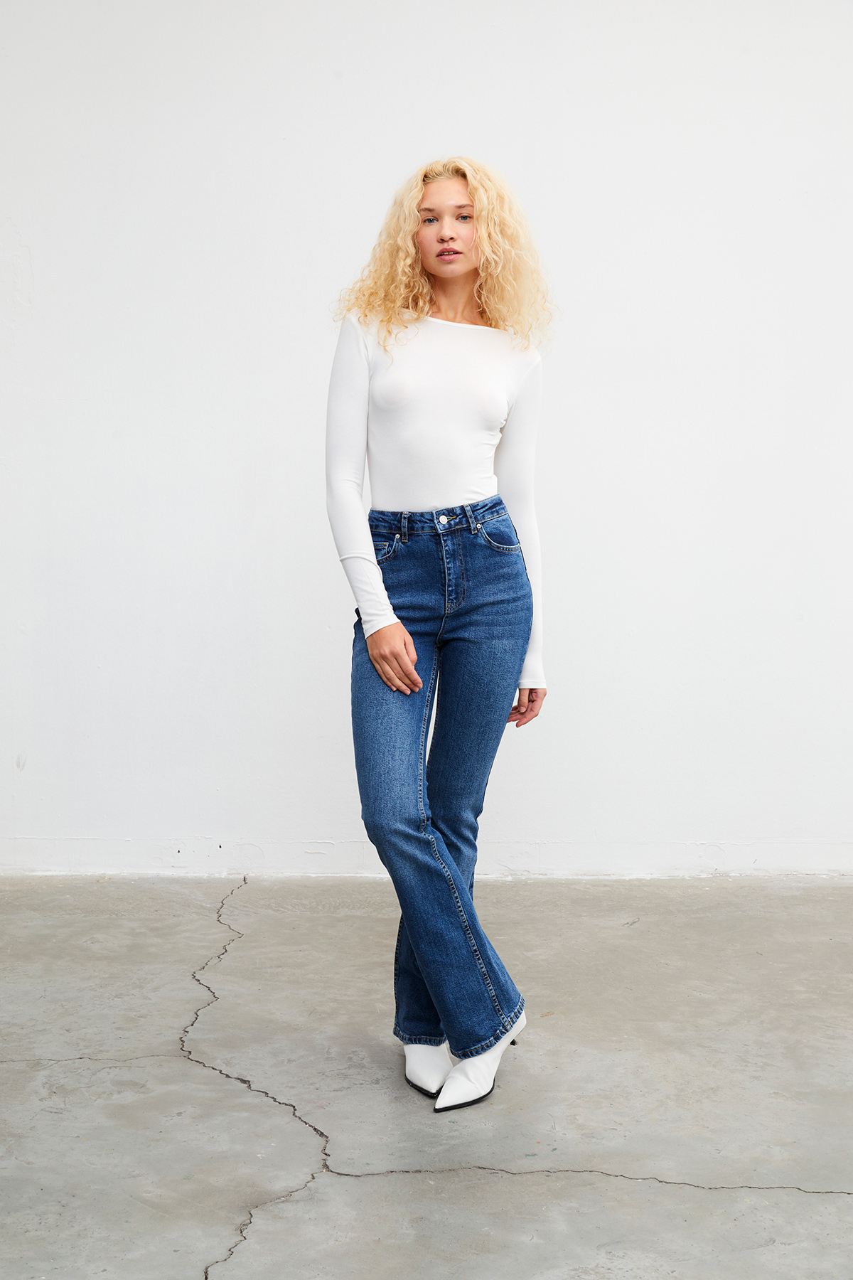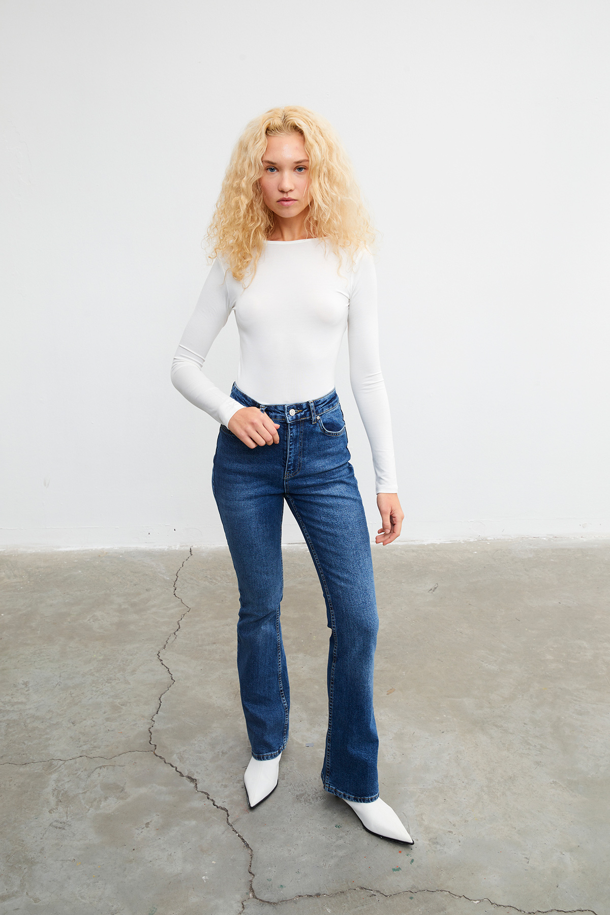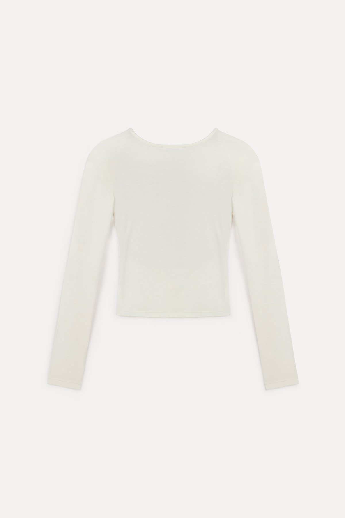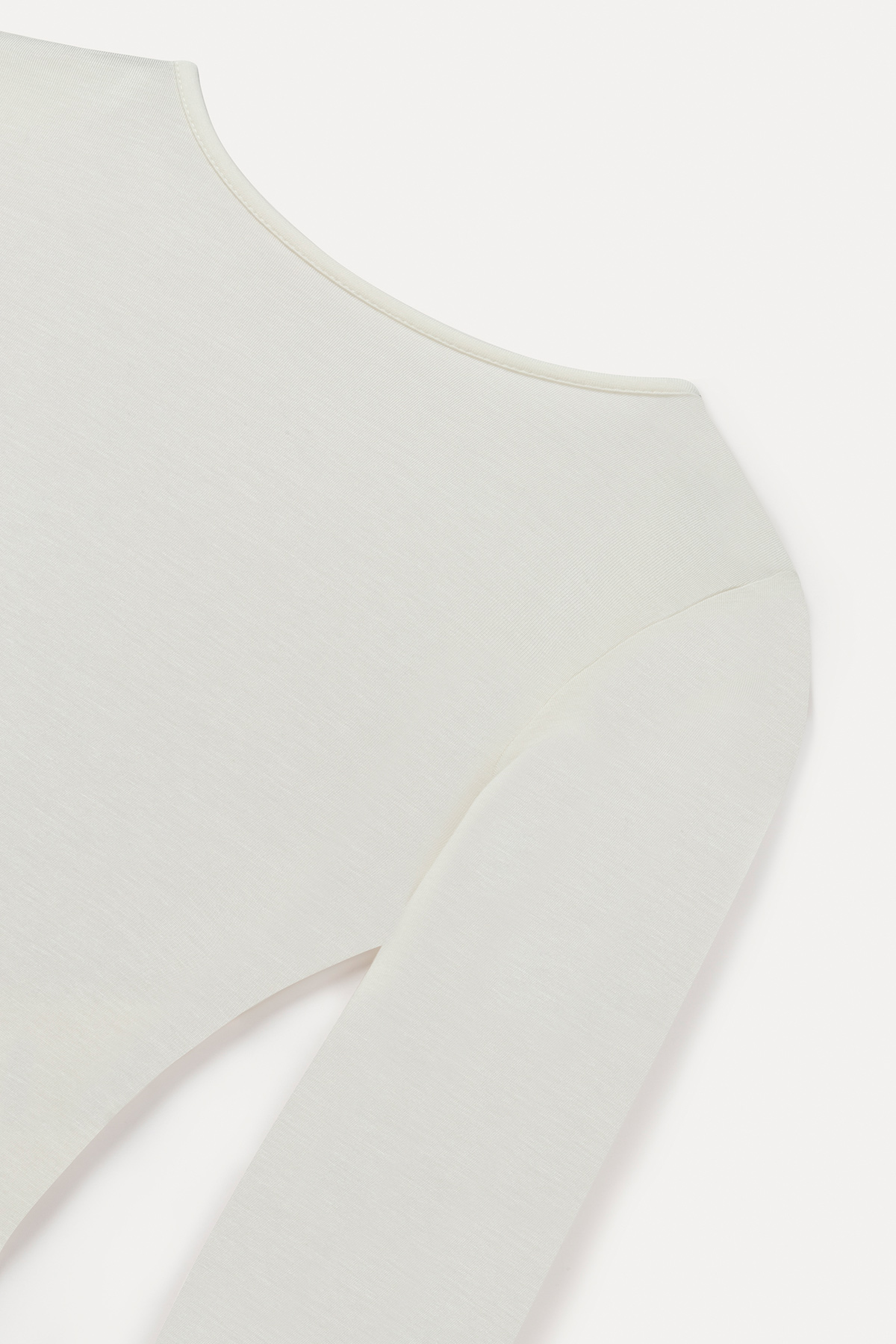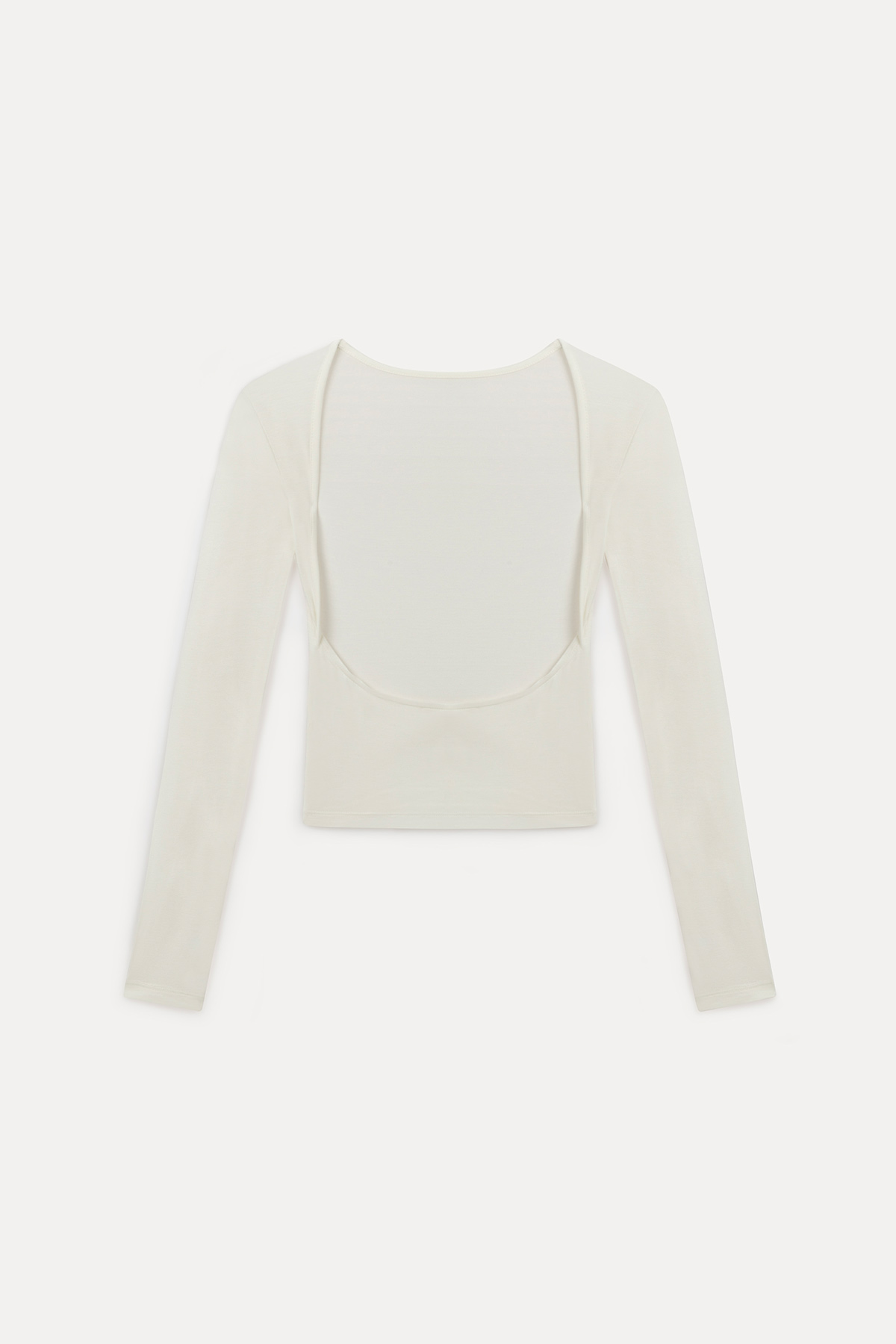 Sırtı açık, uzun kollu, astarsız, tam kalıp bluz