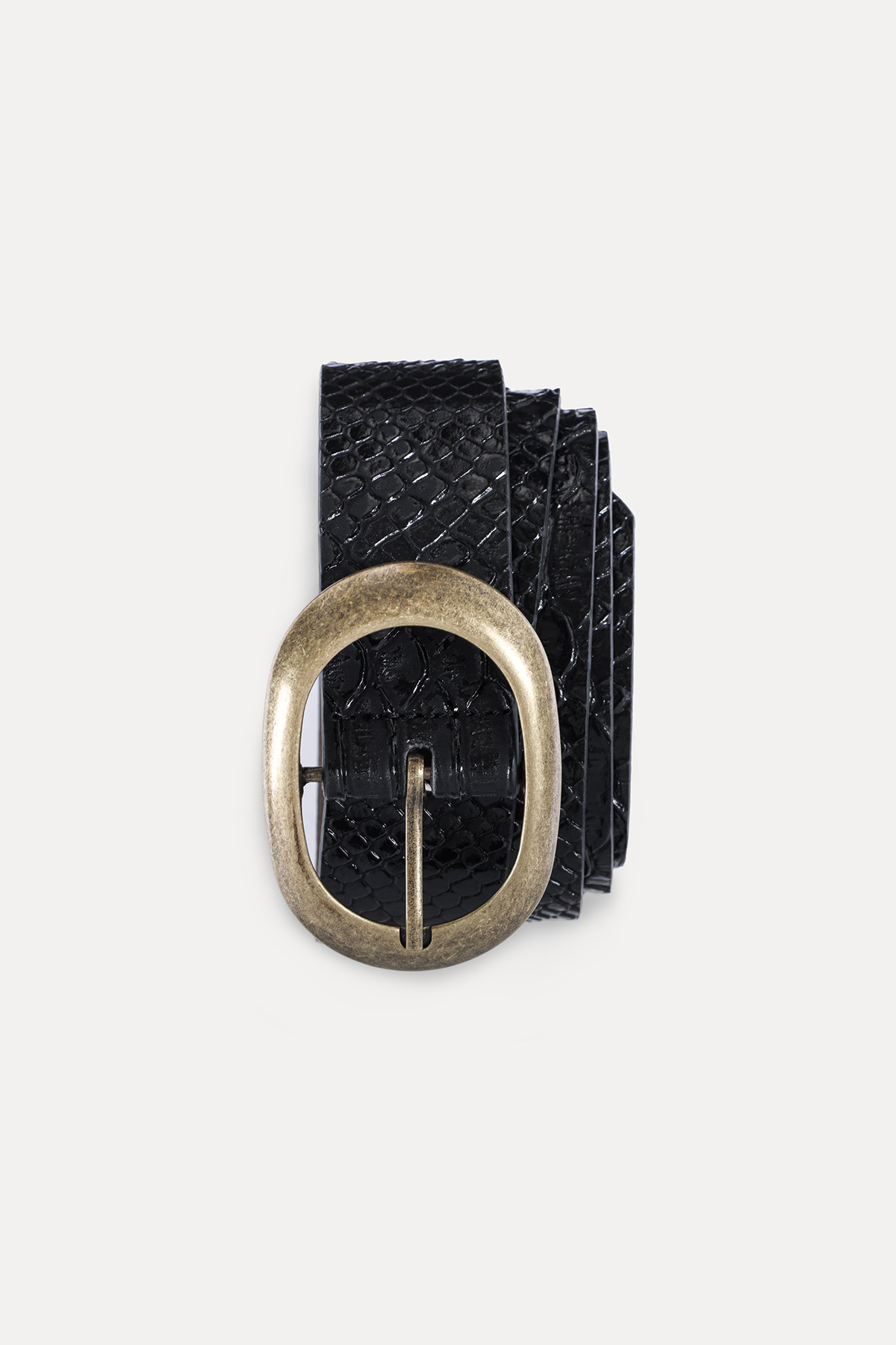 Siyah yılan derisi deseniyle göz alıcı ve cesur stilinizin tamamlayıcısı.