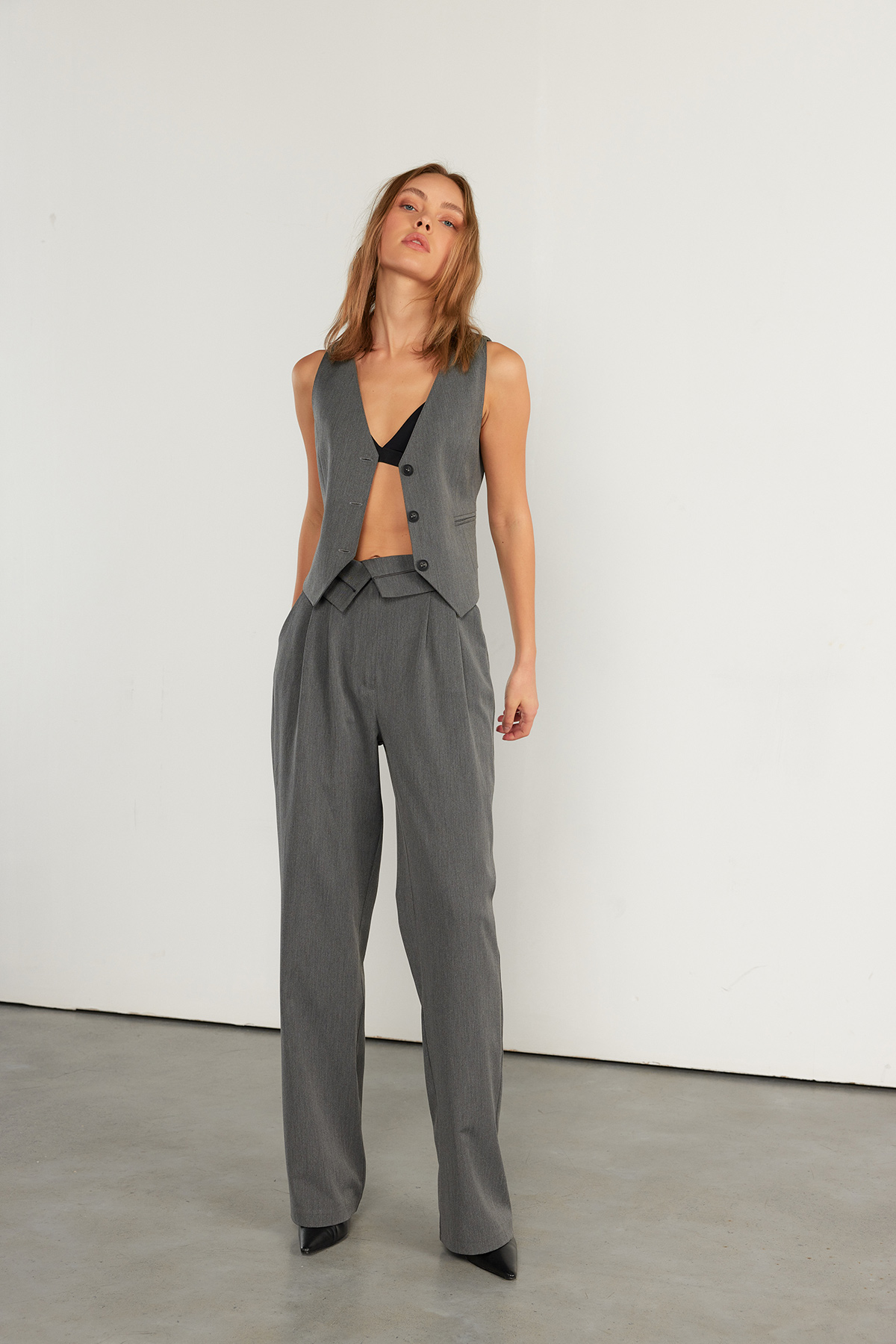 Ters kemer, Palazzo kesim, Bol paça, 2 Ön cepli, Tam kalıp pantolon