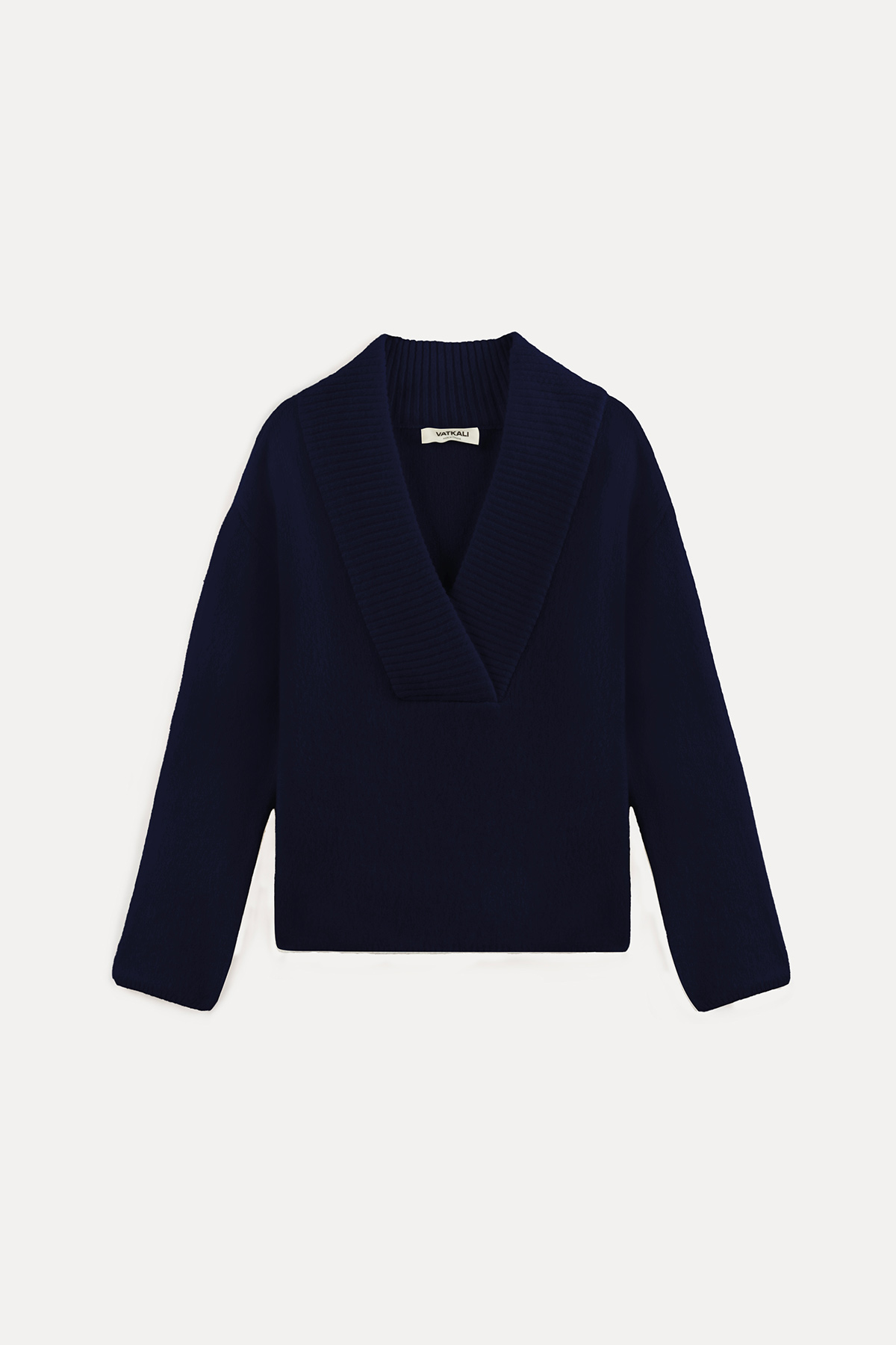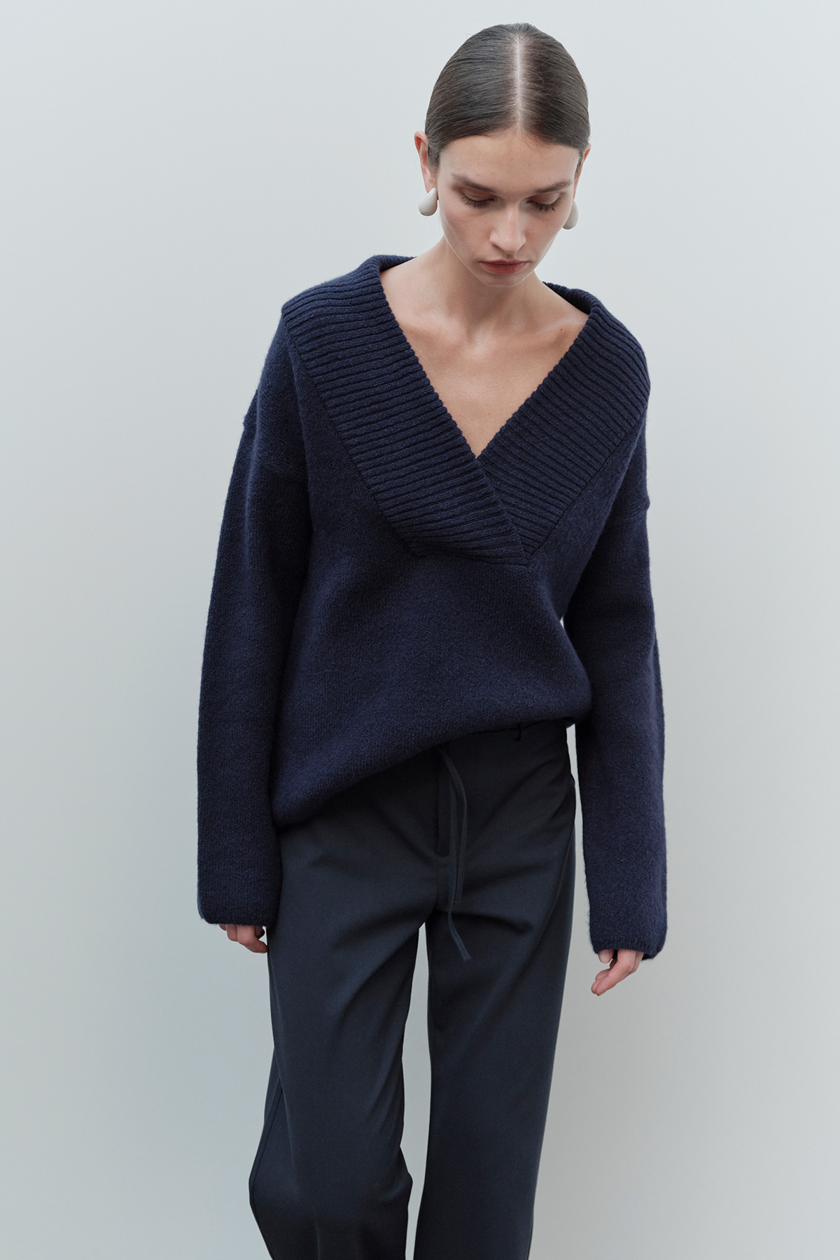Derin v yaka, kalın örgü kumaşlı, yumuşak dokulu, kadın kazak