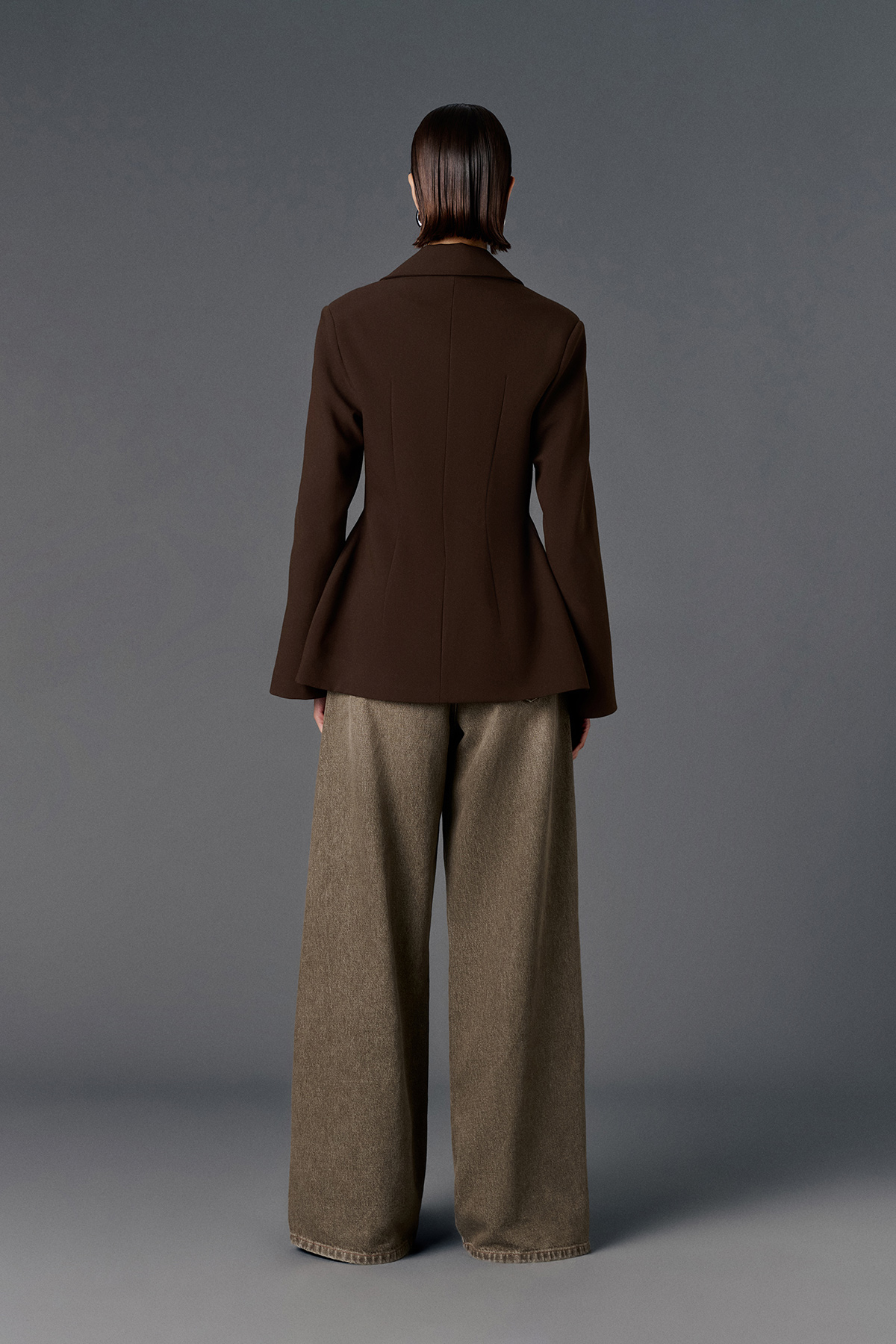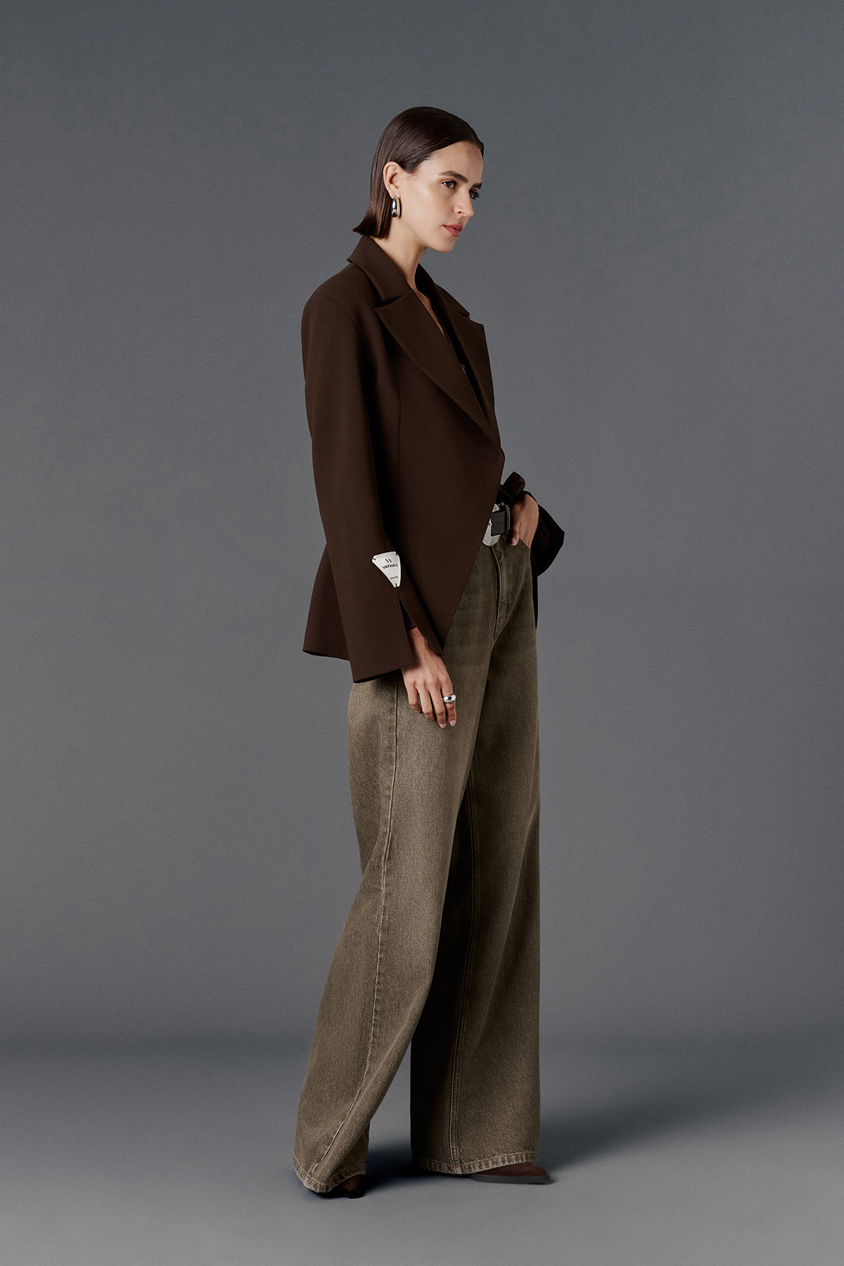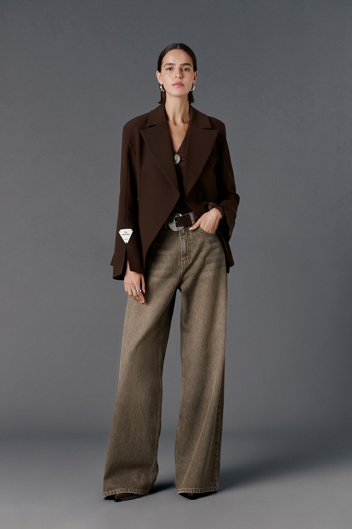 Yüksek bel, düğmeli ve fermuarlı, bol paça, wide leg jean.