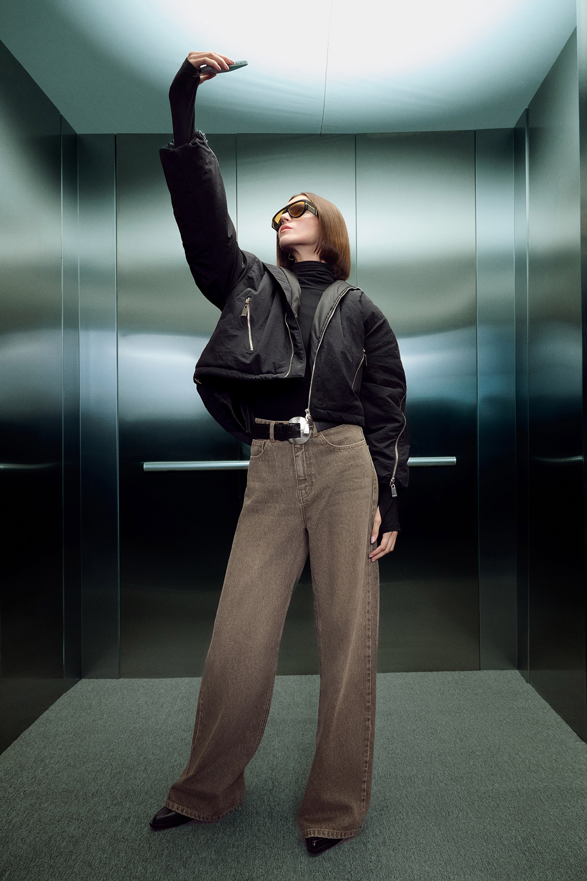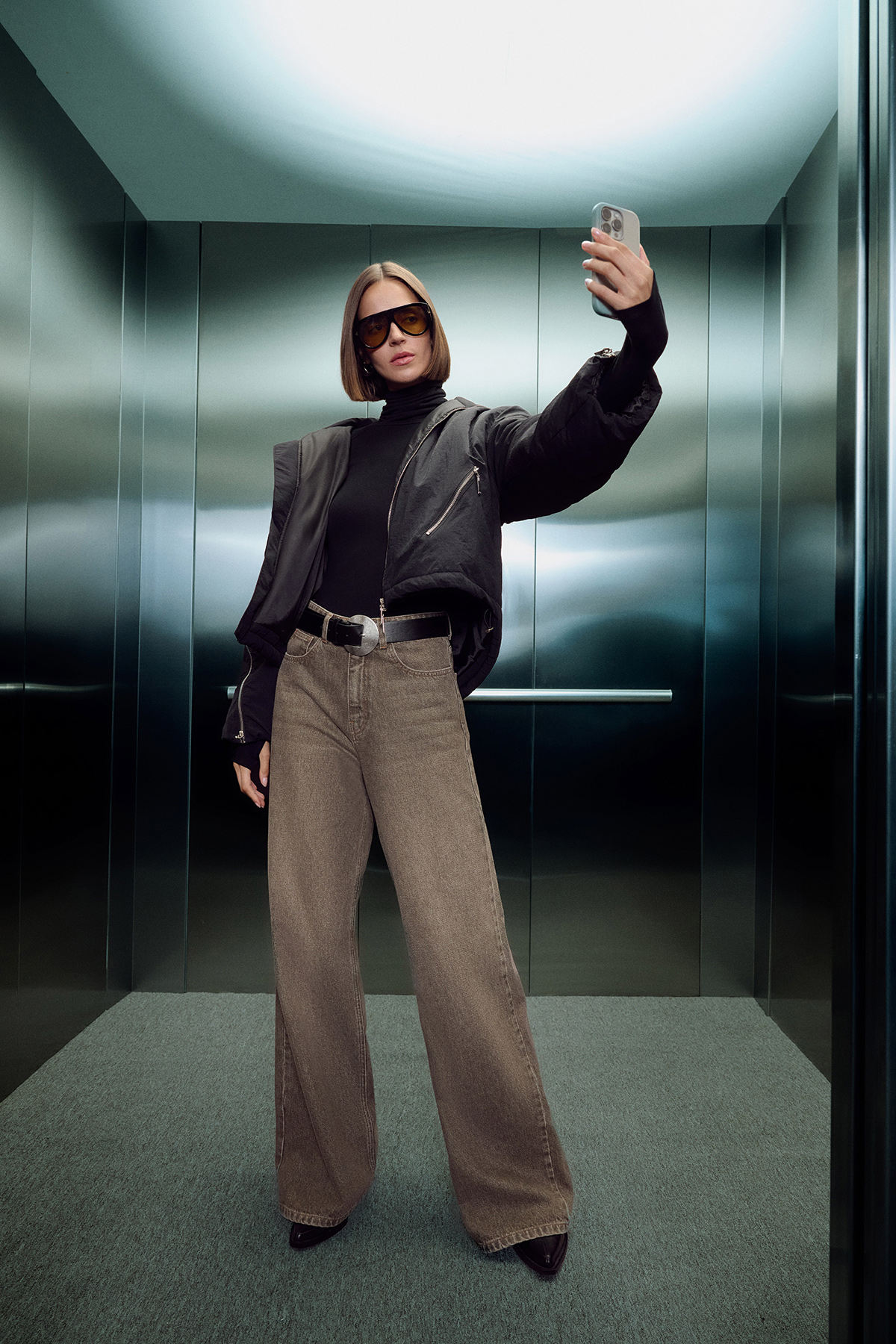 Yüksek bel, düğmeli ve fermuarlı, bol paça, tam kalıp, wide leg jean.