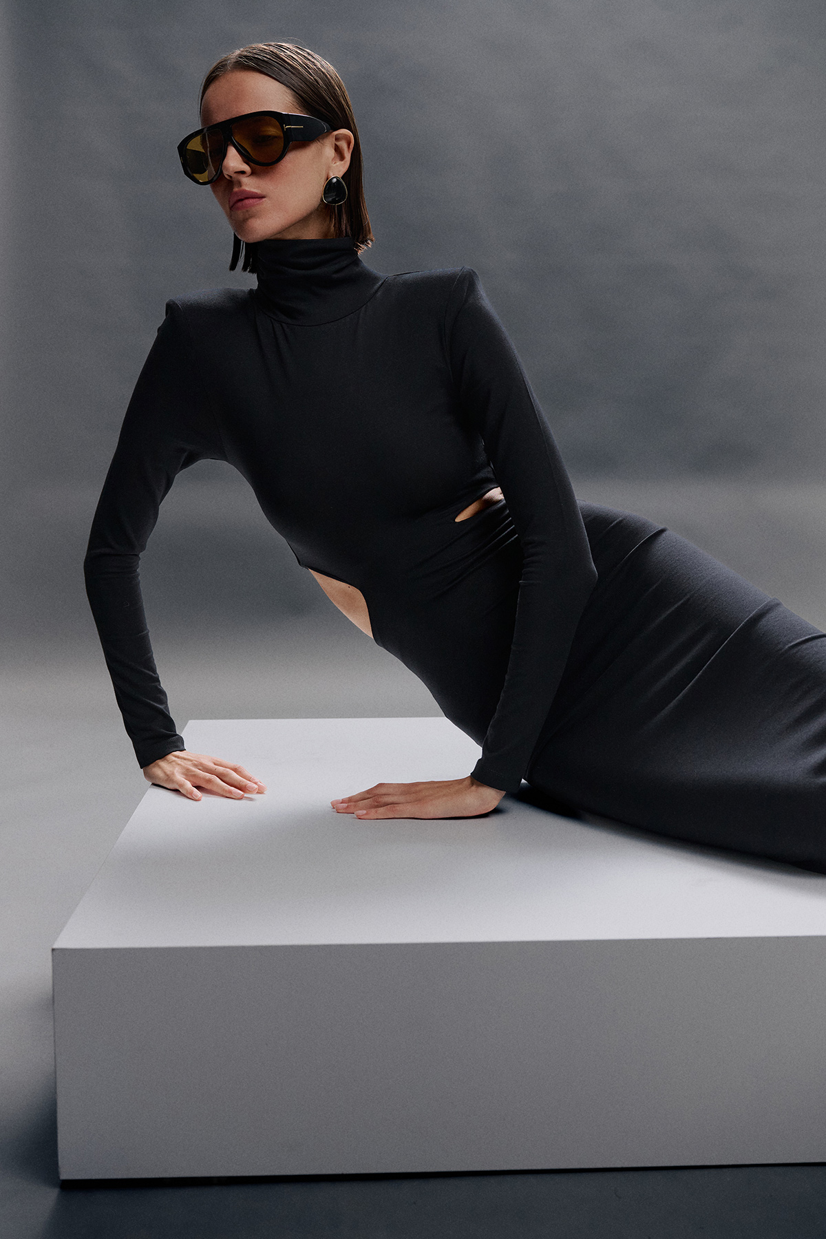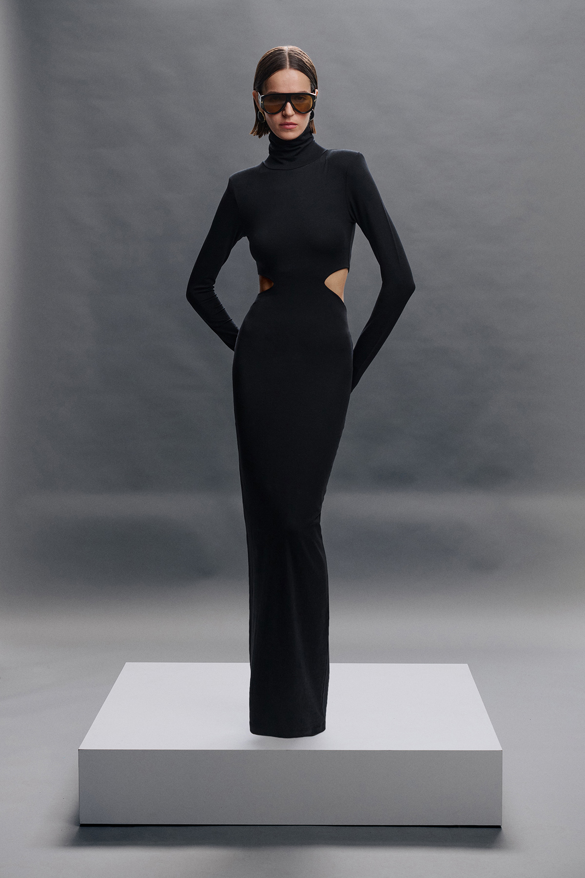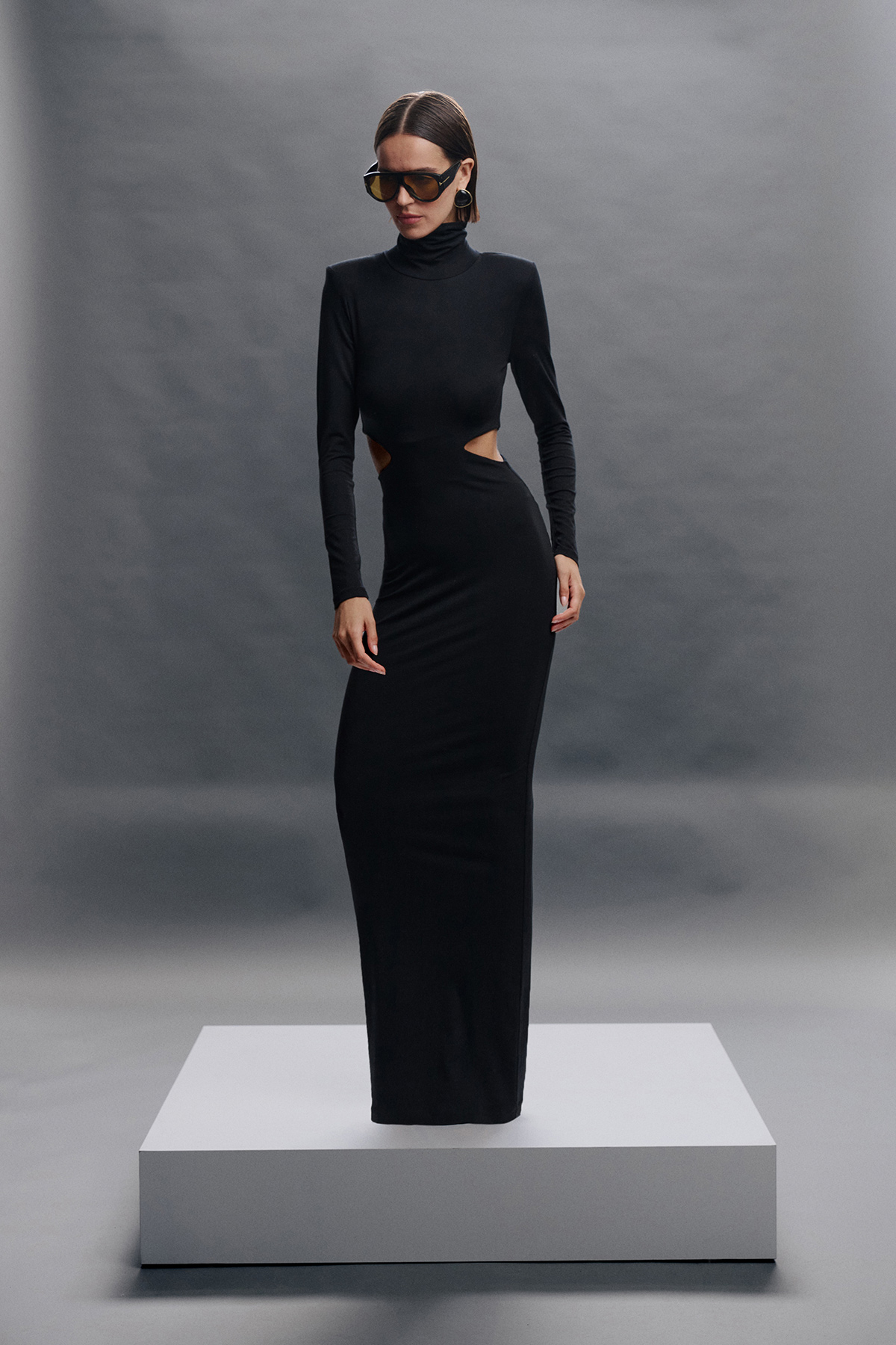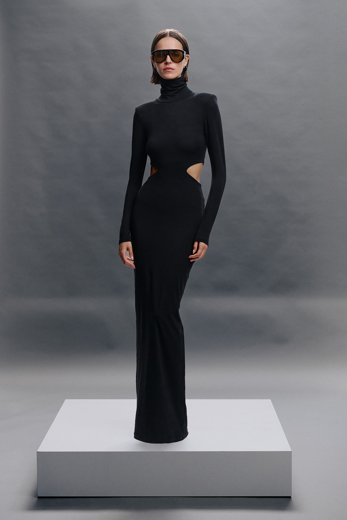 Boğazlı, cut-out, vatkalı, likralı, maxi boy elbise.