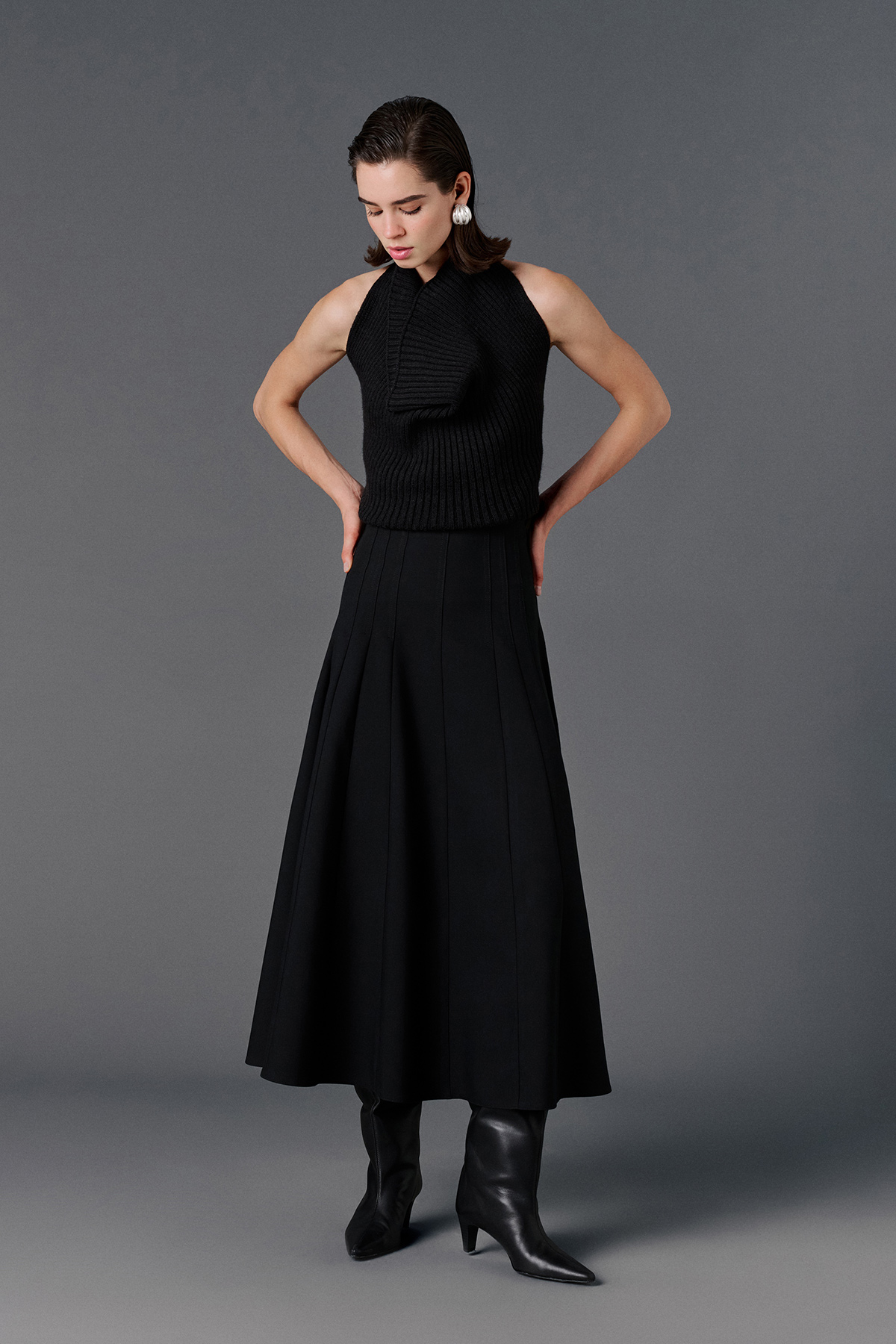 Volanlı, astarsız, fermuar kapamalı, maxi etek.