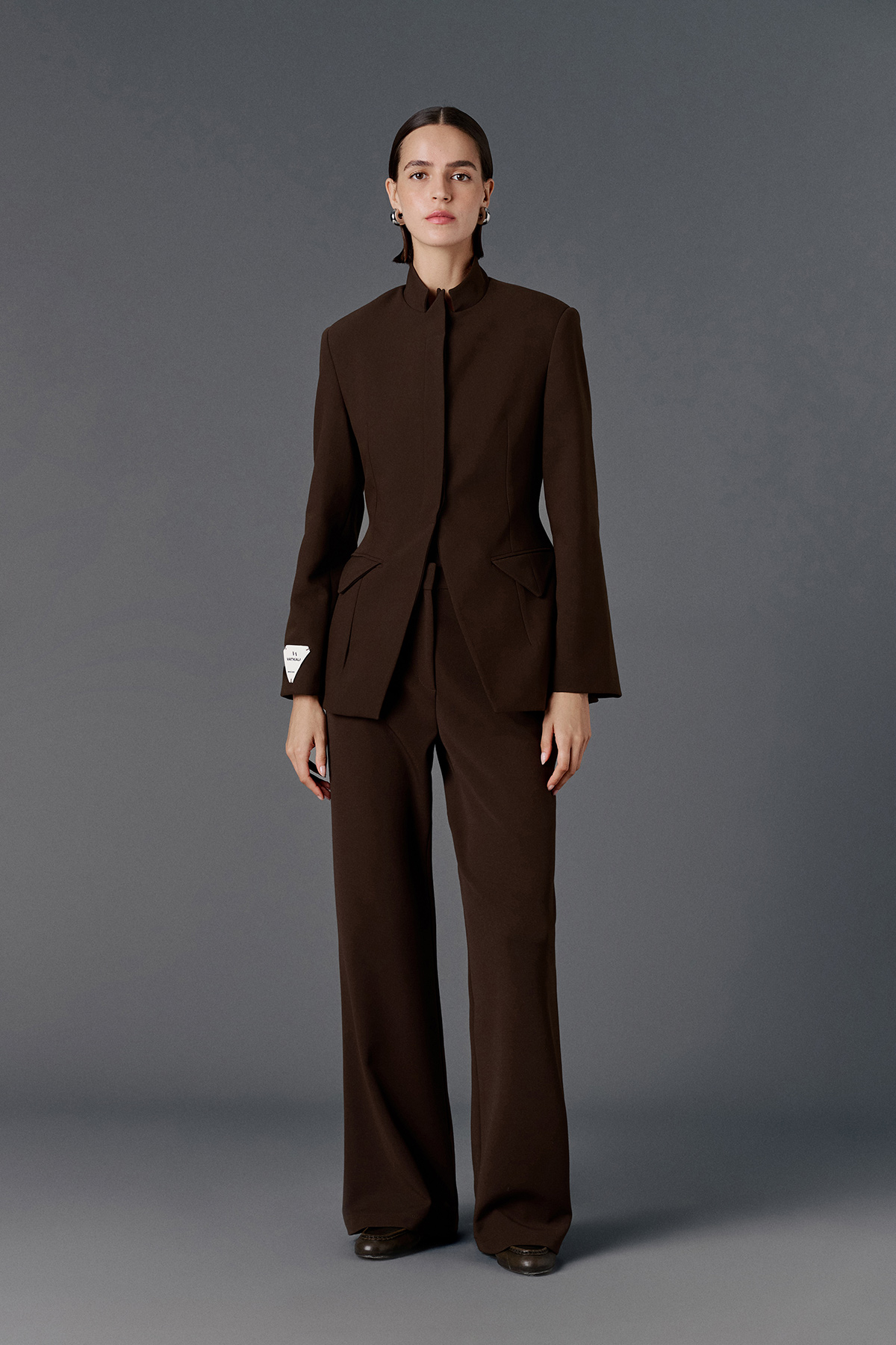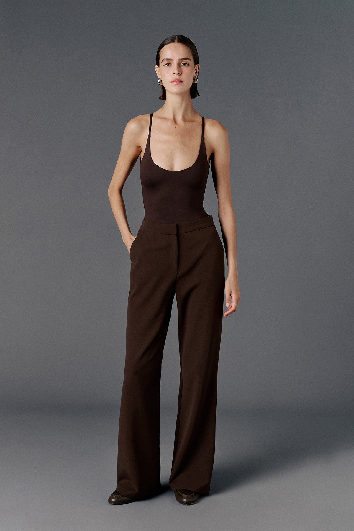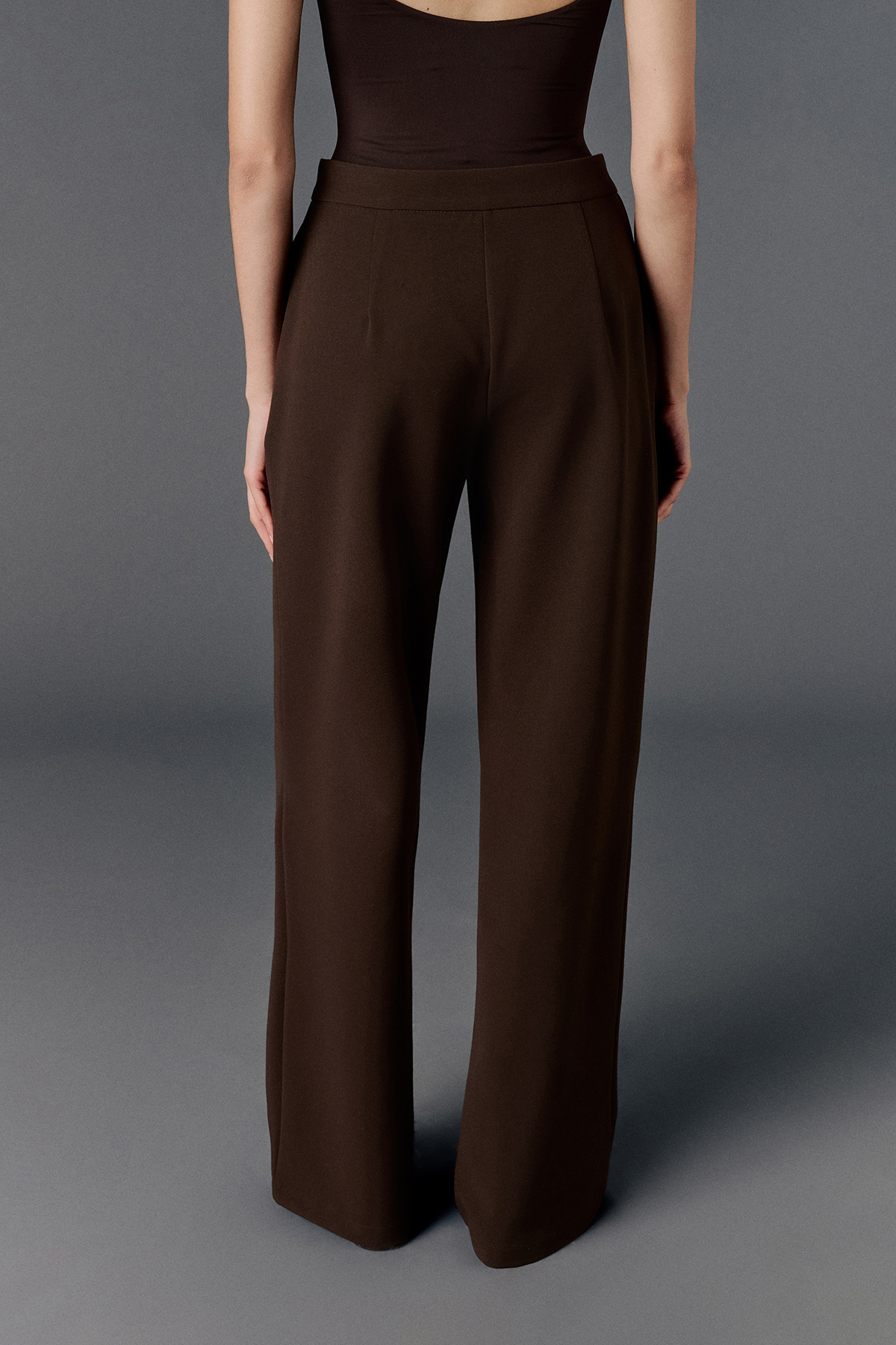 Yüksek bel, düğmeli ve fermuarlı, astarsız, tam kalıp, düz kesim pantolon