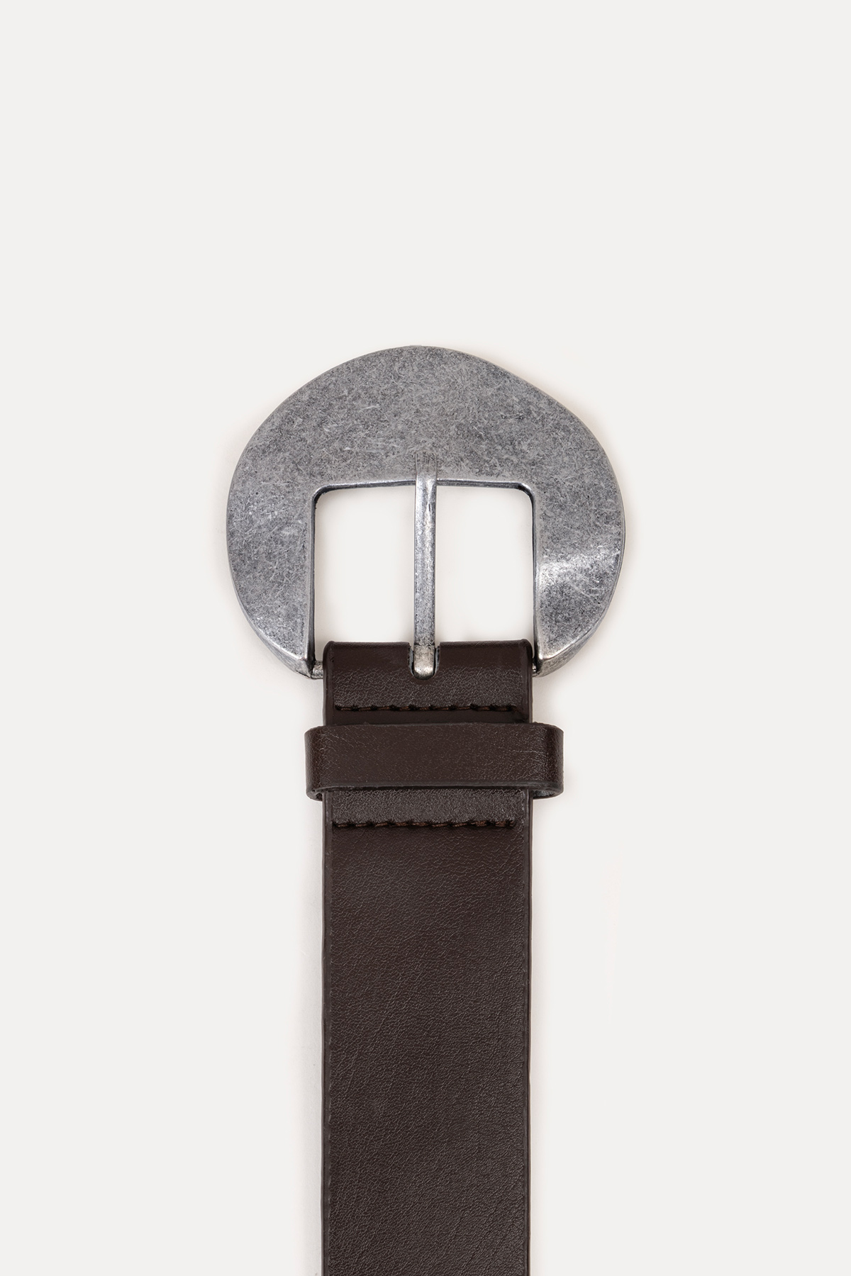 Yuvarlak tokalı deri kemer