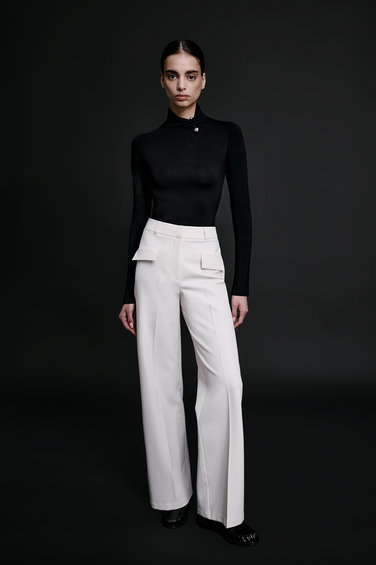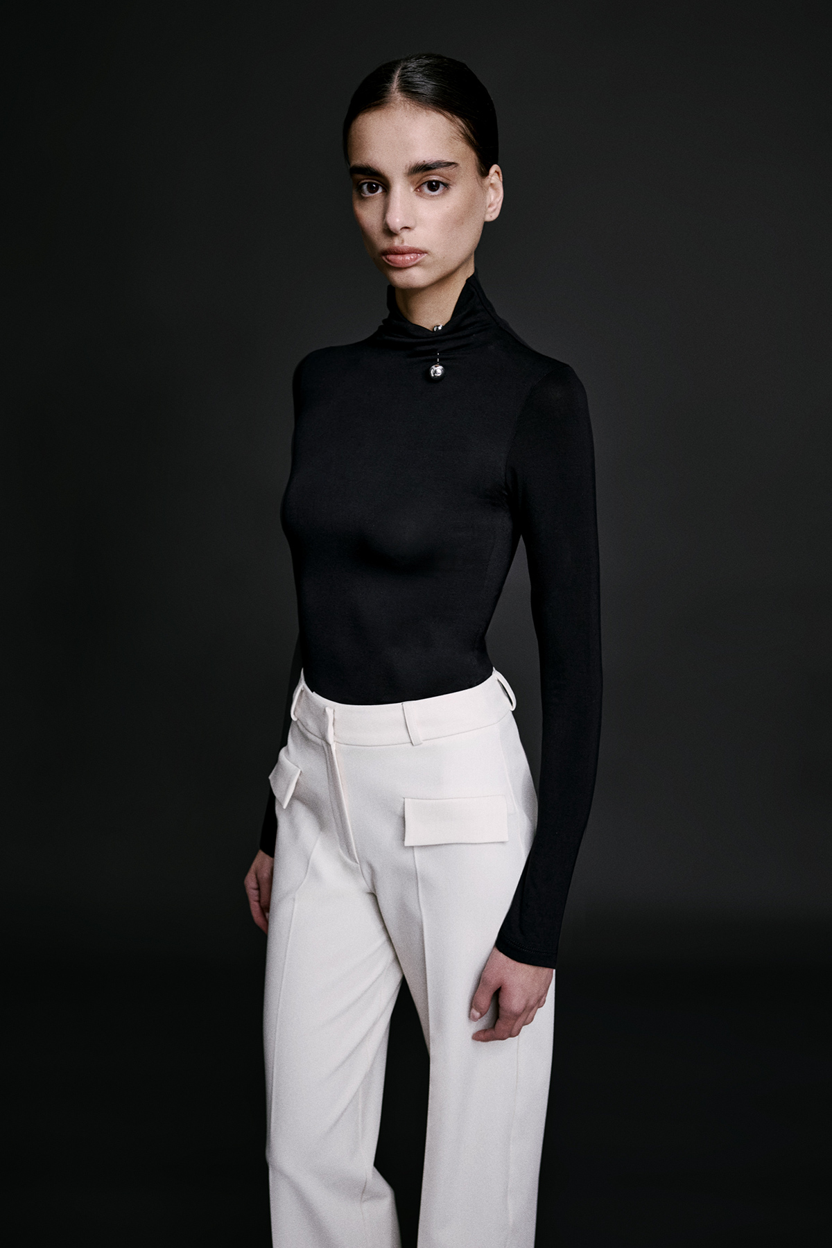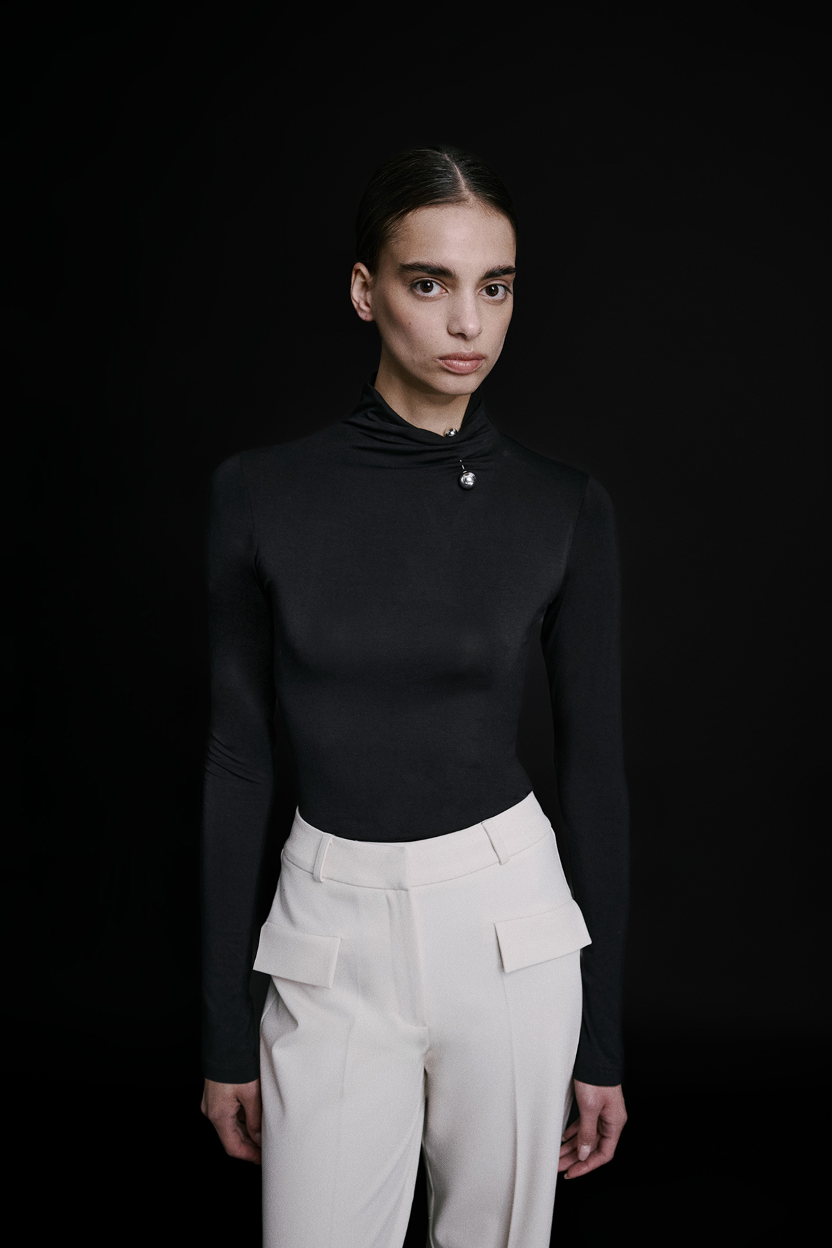 Balıkçı yaka, esnek kumaş, aksesuar detaylı, örme, tam kalıp, basic bluz.