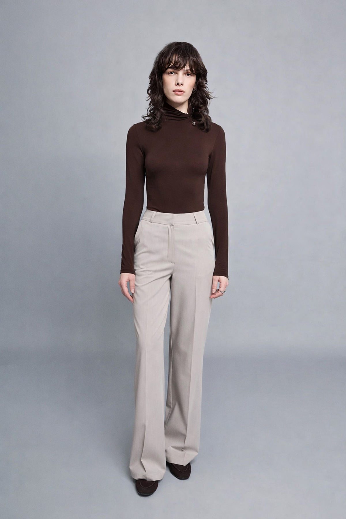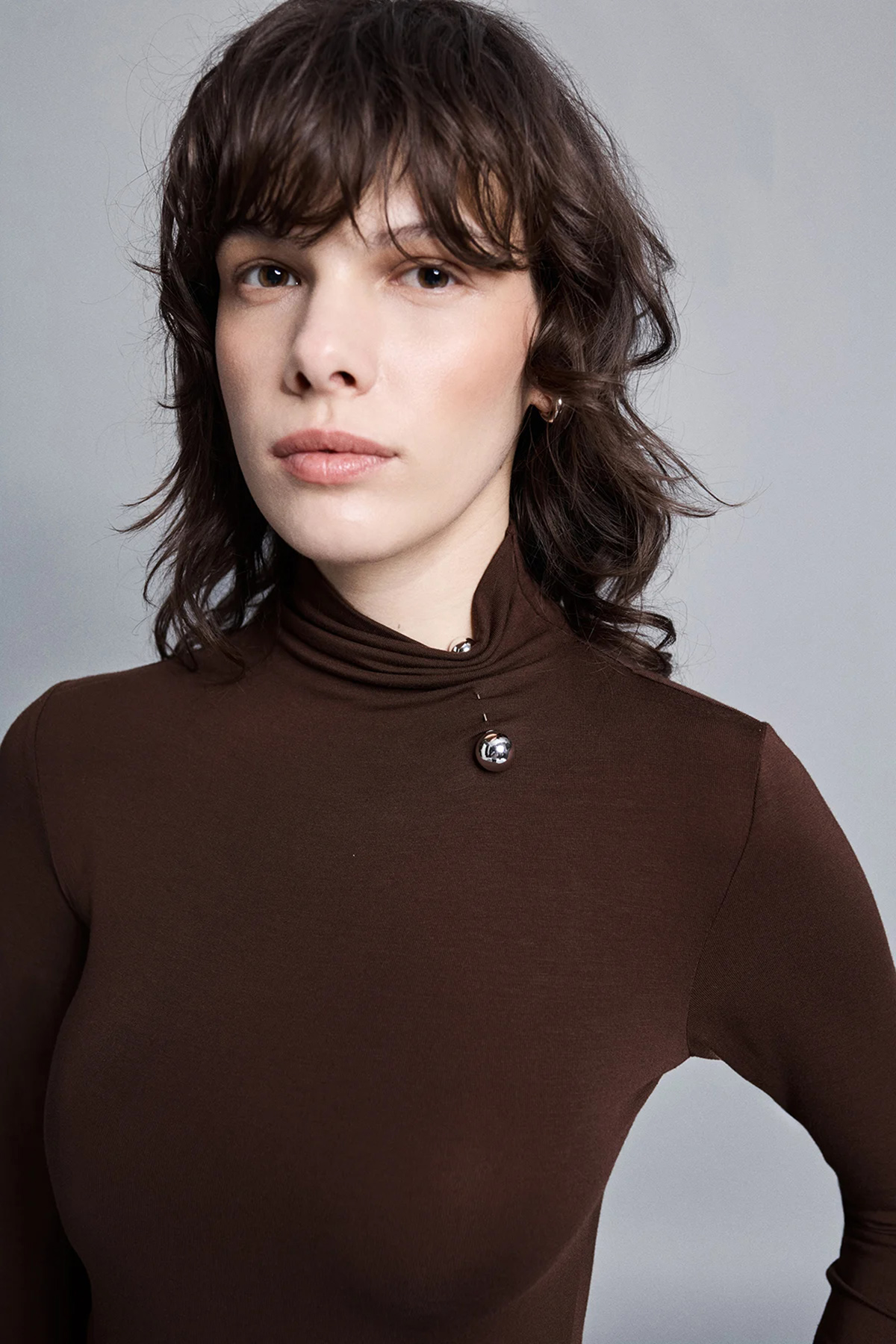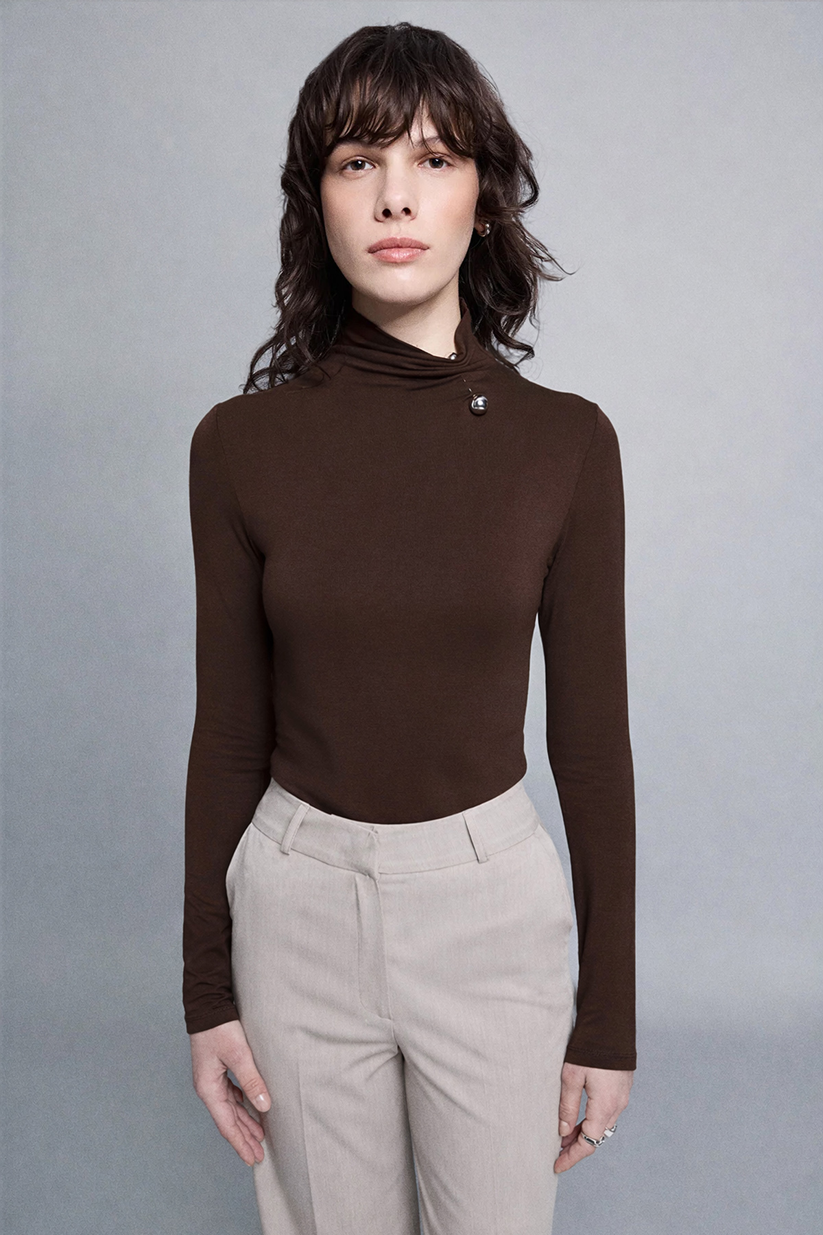 Balıkçı yaka, esnek kumaş, aksesuar detaylı, örme, tam kalıp, basic bluz.