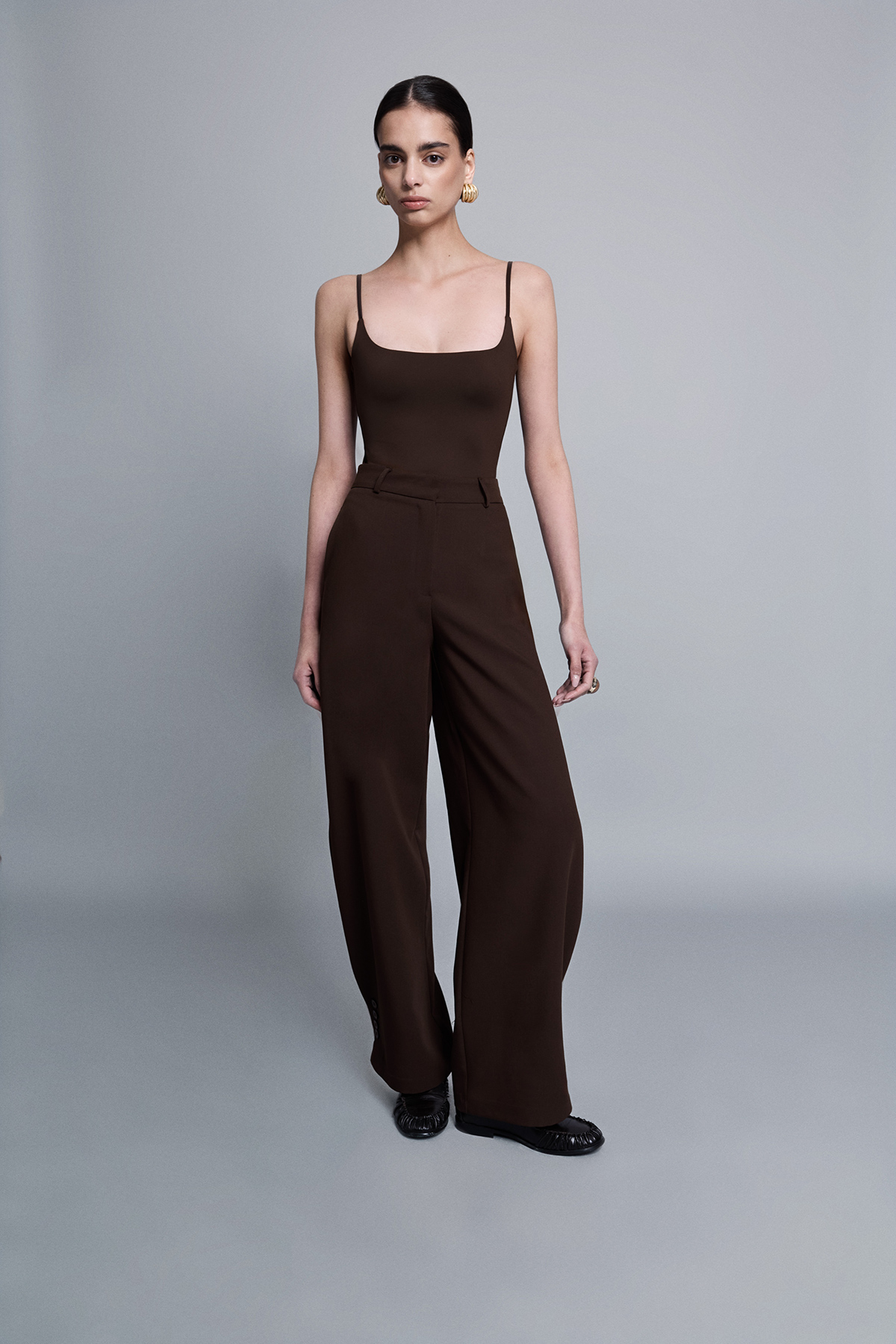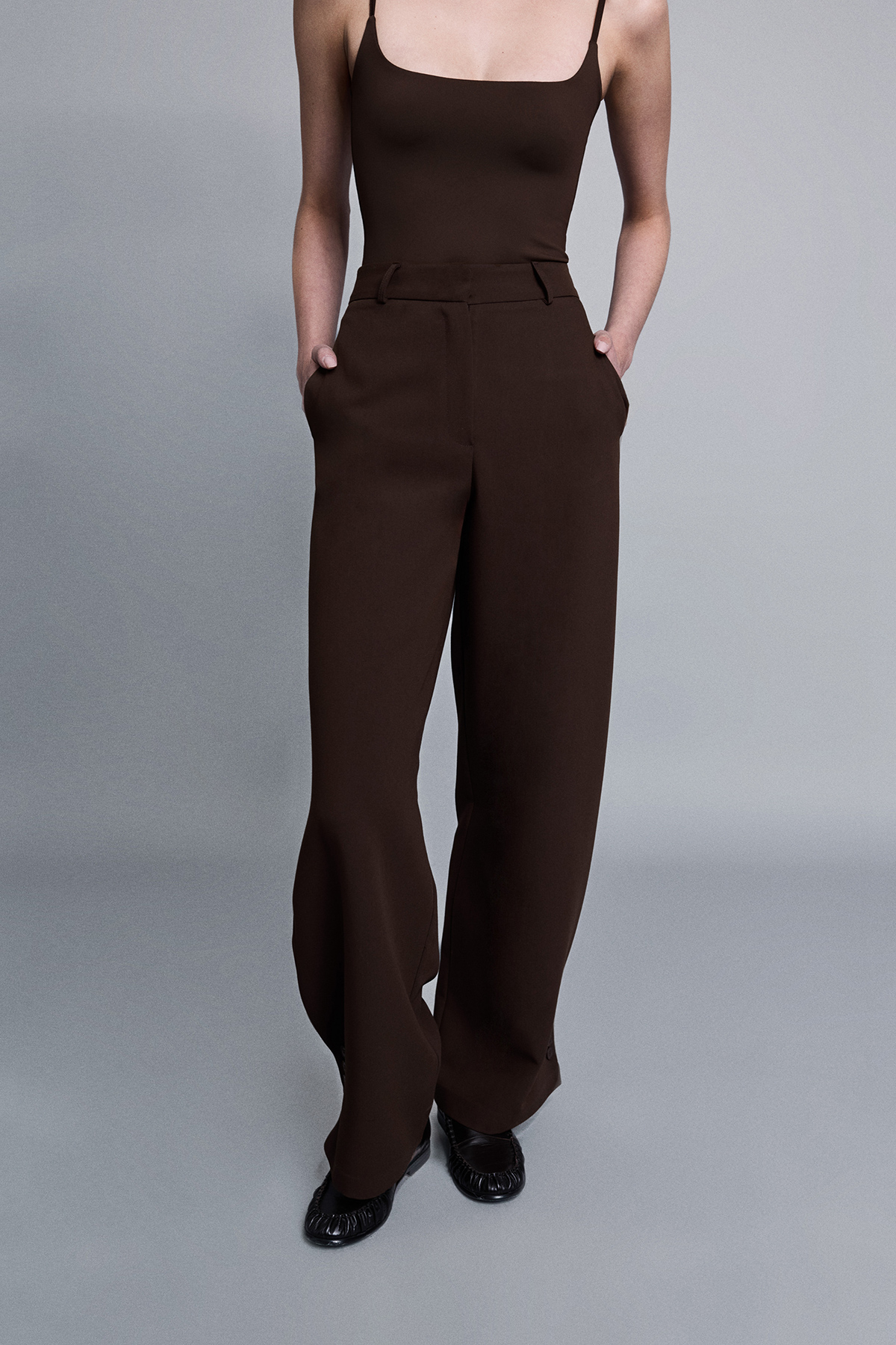 Paçası aksesuar düğmeli, yüksek bel, düğme ve fermuar kapamalı, relaxed fit pantolon.