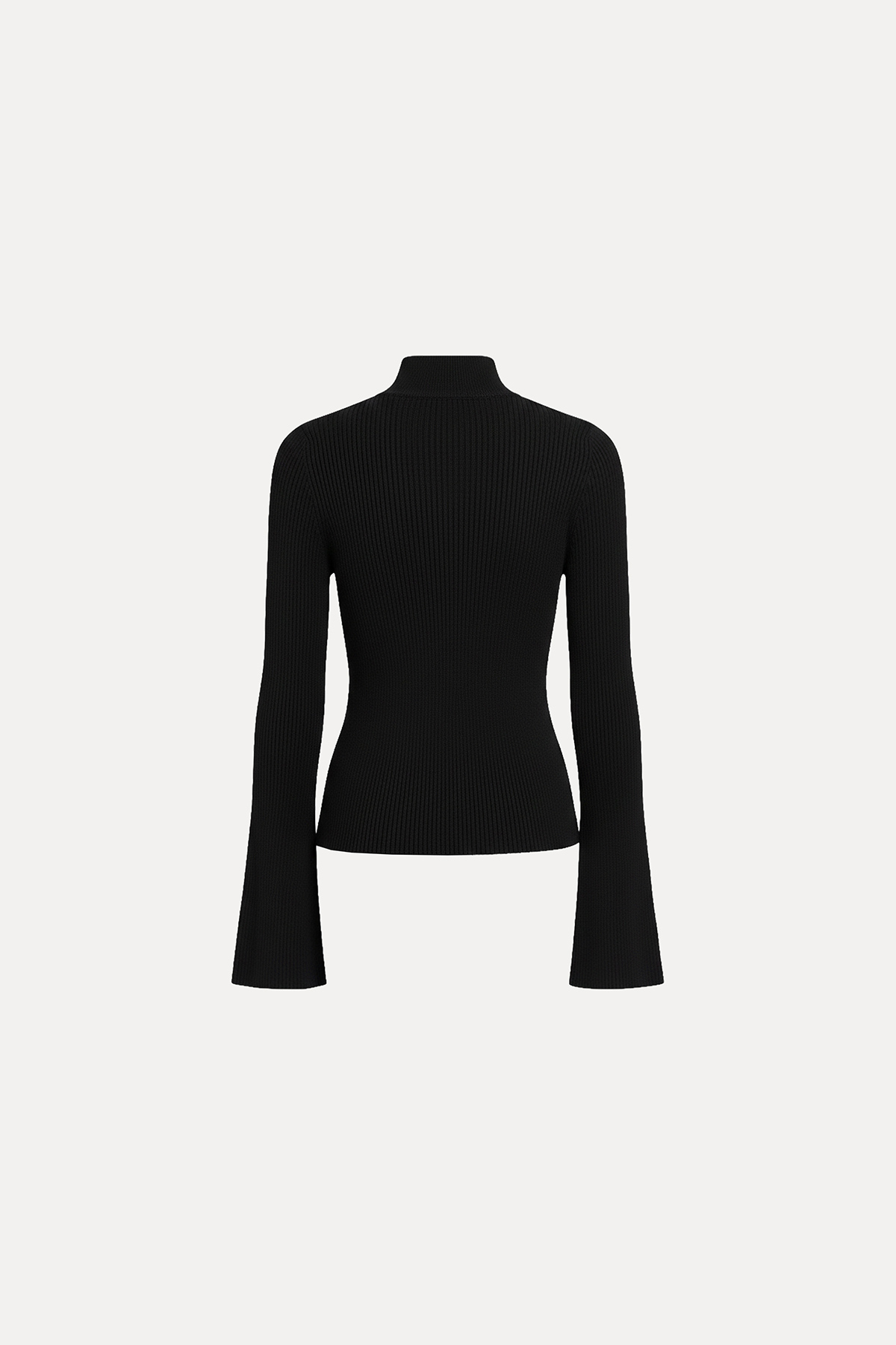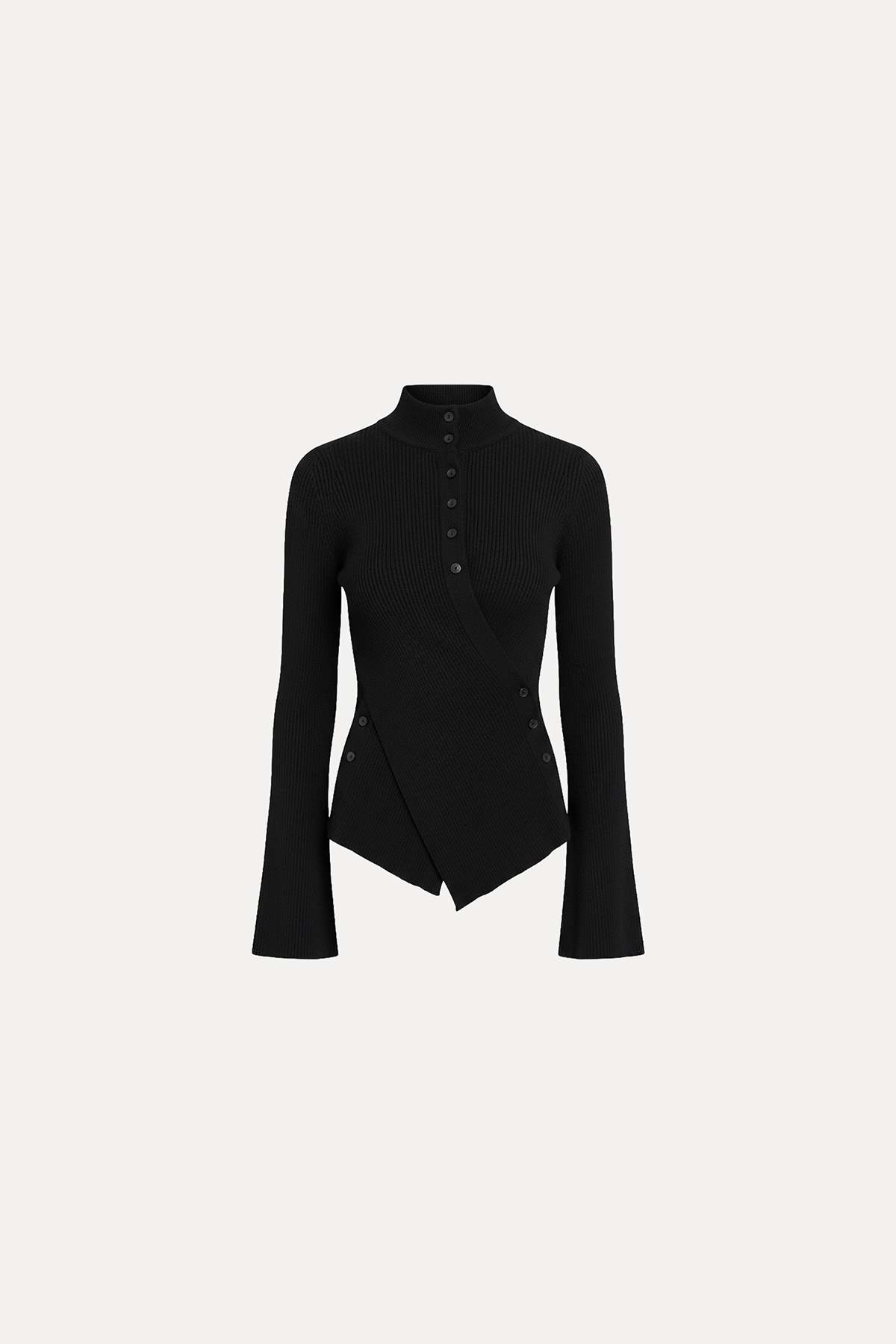Asimetrik kesim modern tasarım, düğme kapama detaylı, ispanyol kol, fitted, triko bluz.
