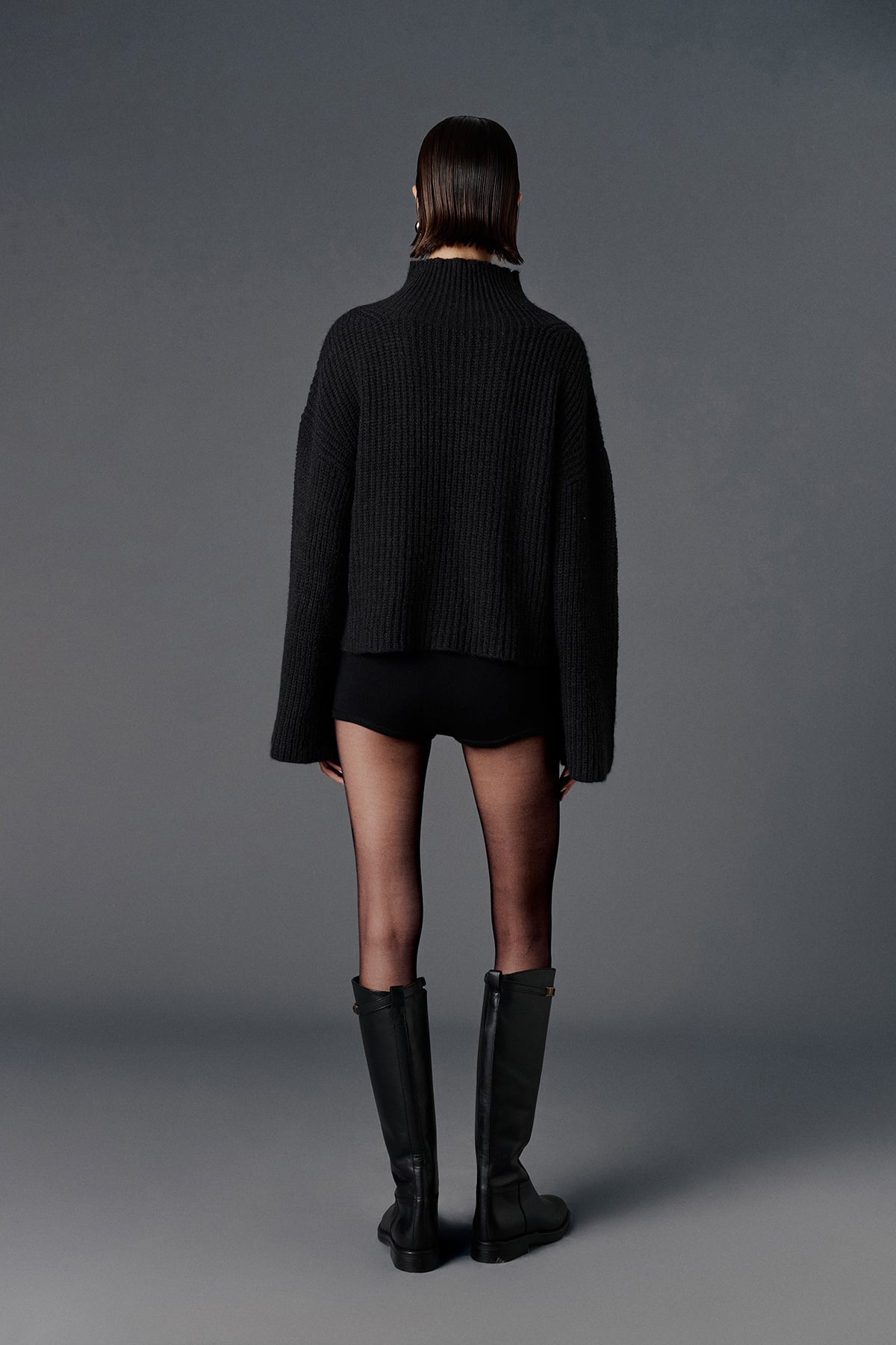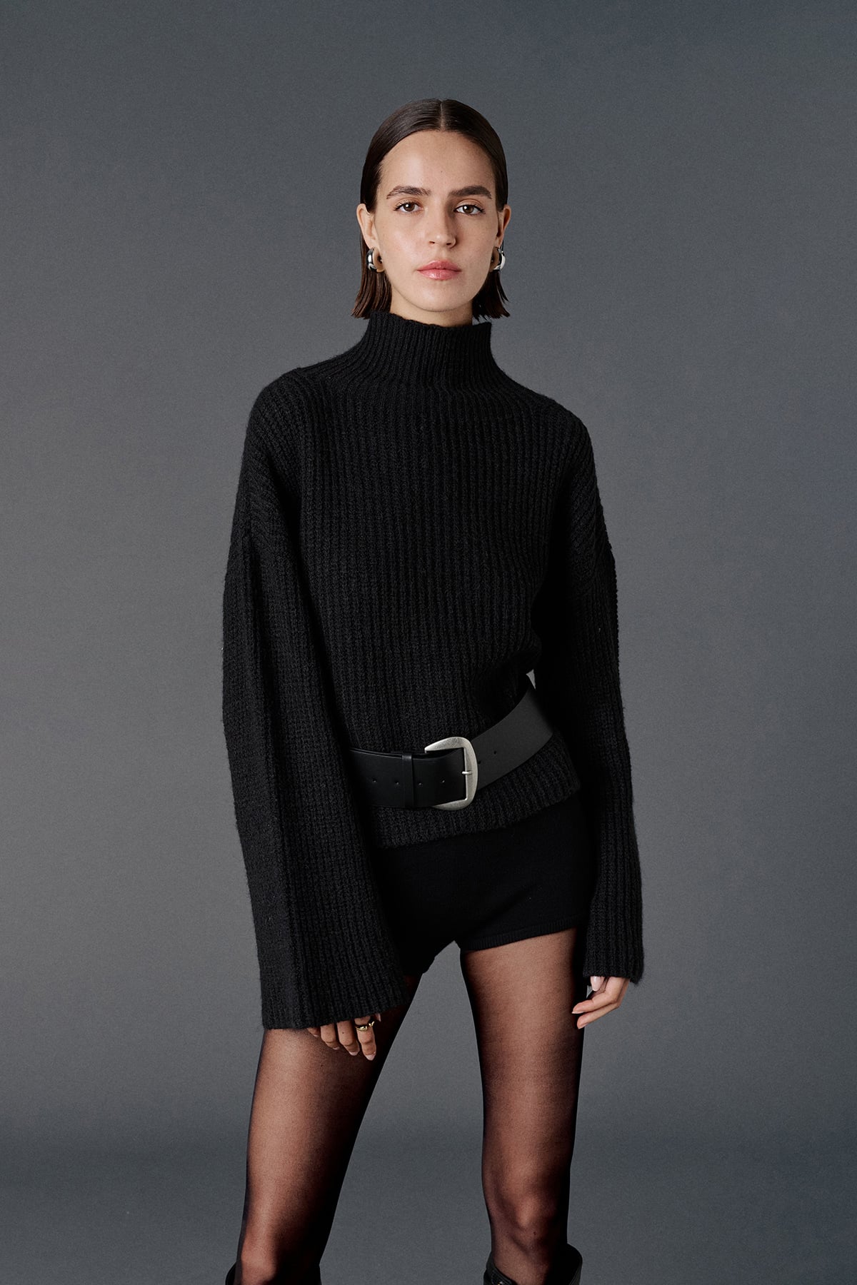 Balıkçı yaka, geniş kollu, oversize kazak.