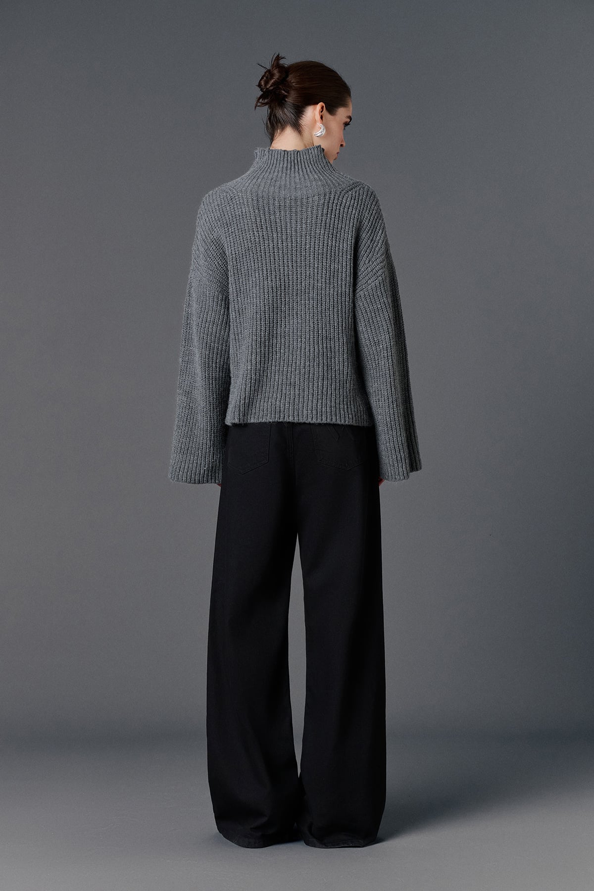 Balıkçı yaka, geniş kollu, oversize kazak.