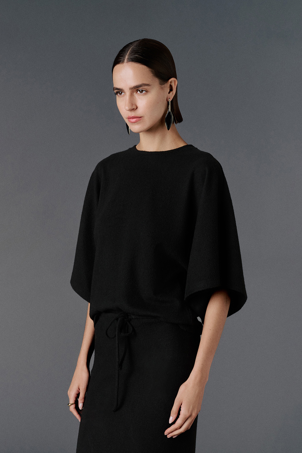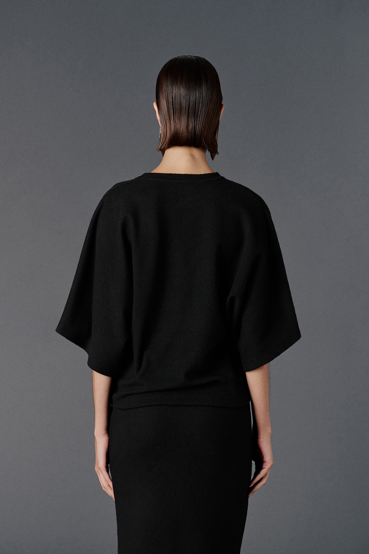 Bisiklet yaka, yarasa kol, oversize triko t-shirt