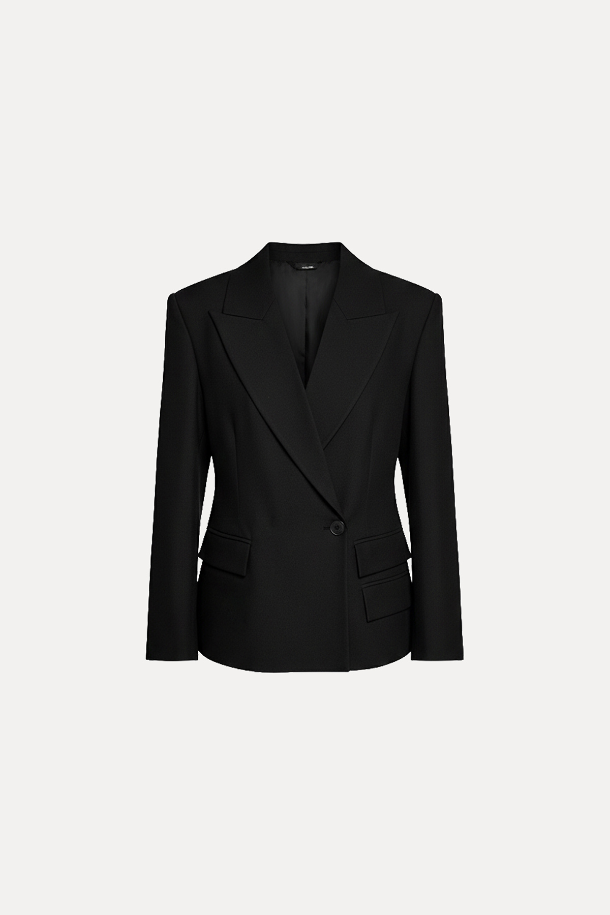 Tek düğmeli, uzun kollu, oversize, vatkalı, manşeti düğme detaylı, kruvaze yaka, aksesuar cepli, astarlı blazer ceket.
