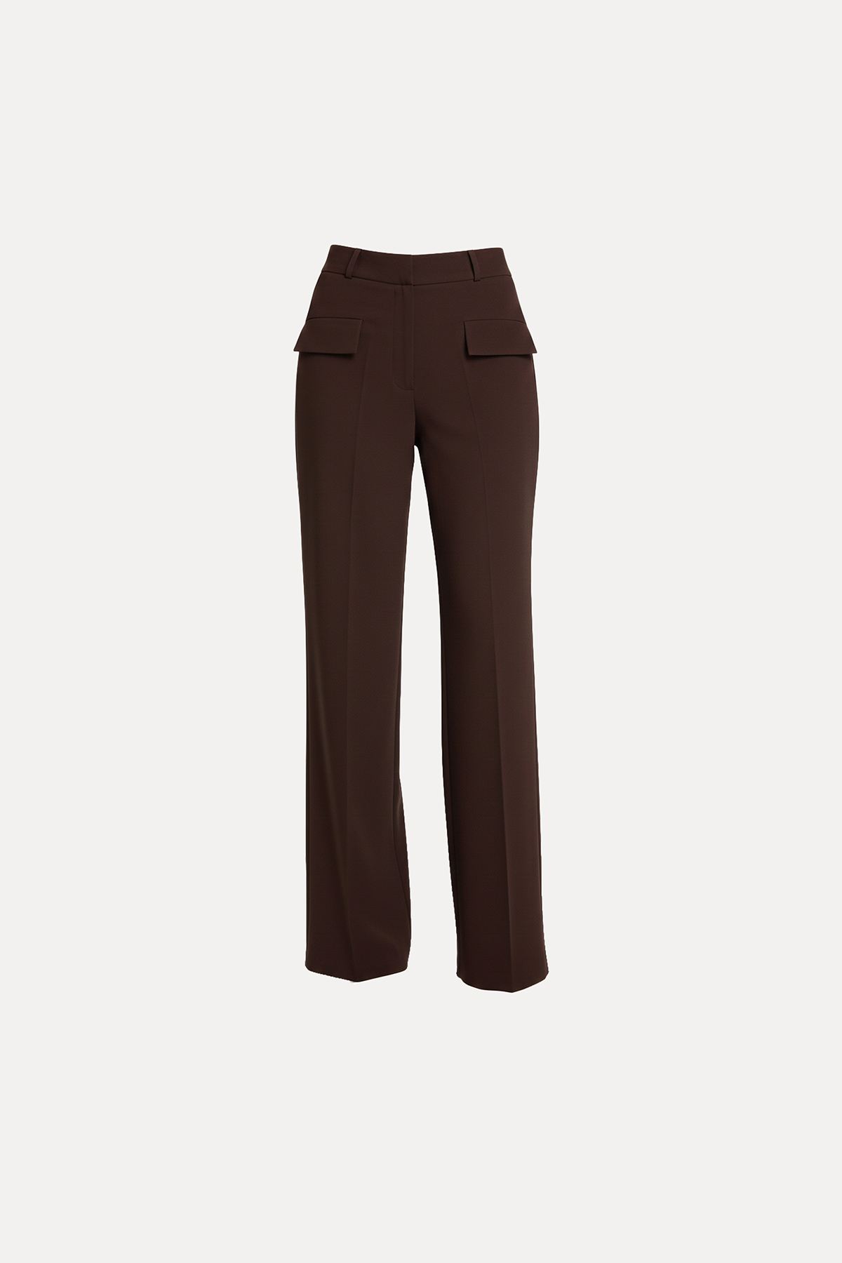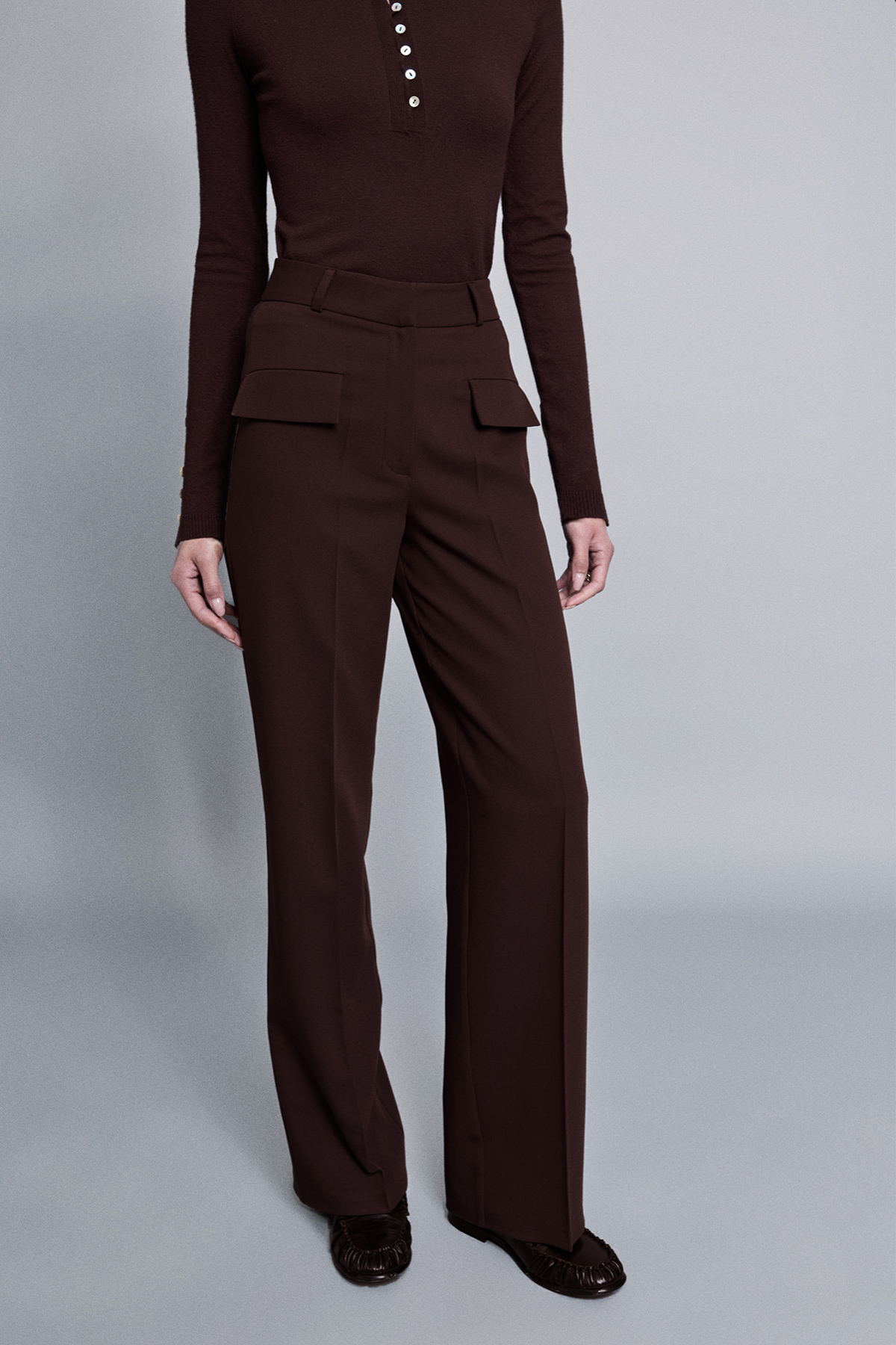 Önden cep kapak detaylı,  bol paça, önden fermuar, klips ve düğme kapamalı, tam kalıp wide leg pantolon.