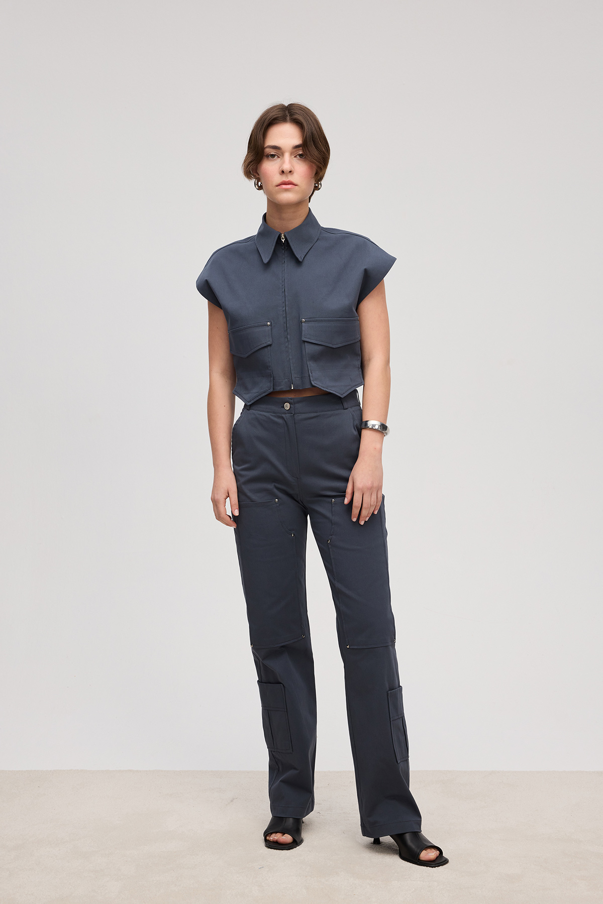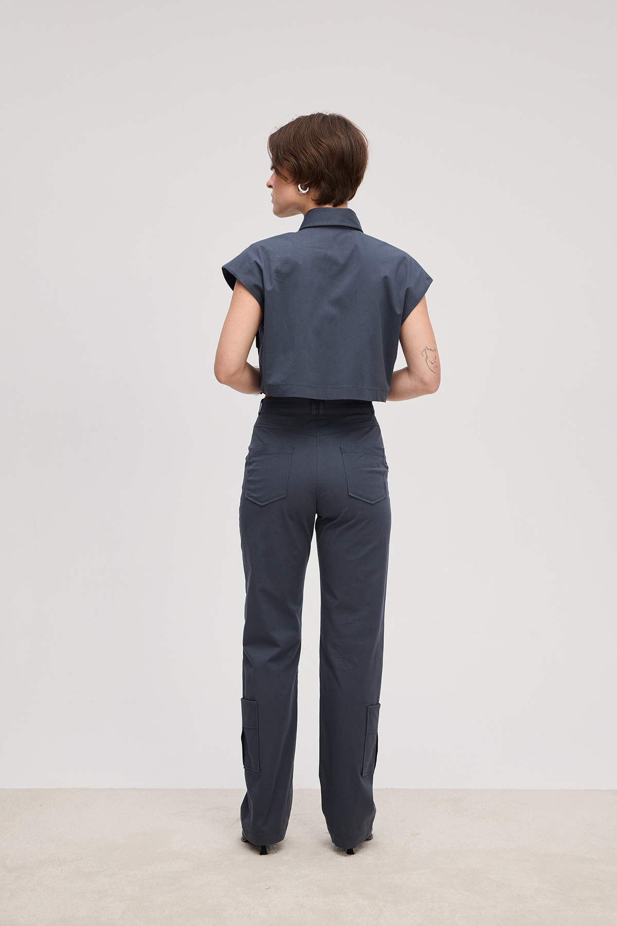 Yüksek bel, düğmeli ve fermuarlı,cep detaylı,düz kesim,  önden ve arkadan 4 cepli, tam kalıp pantolon