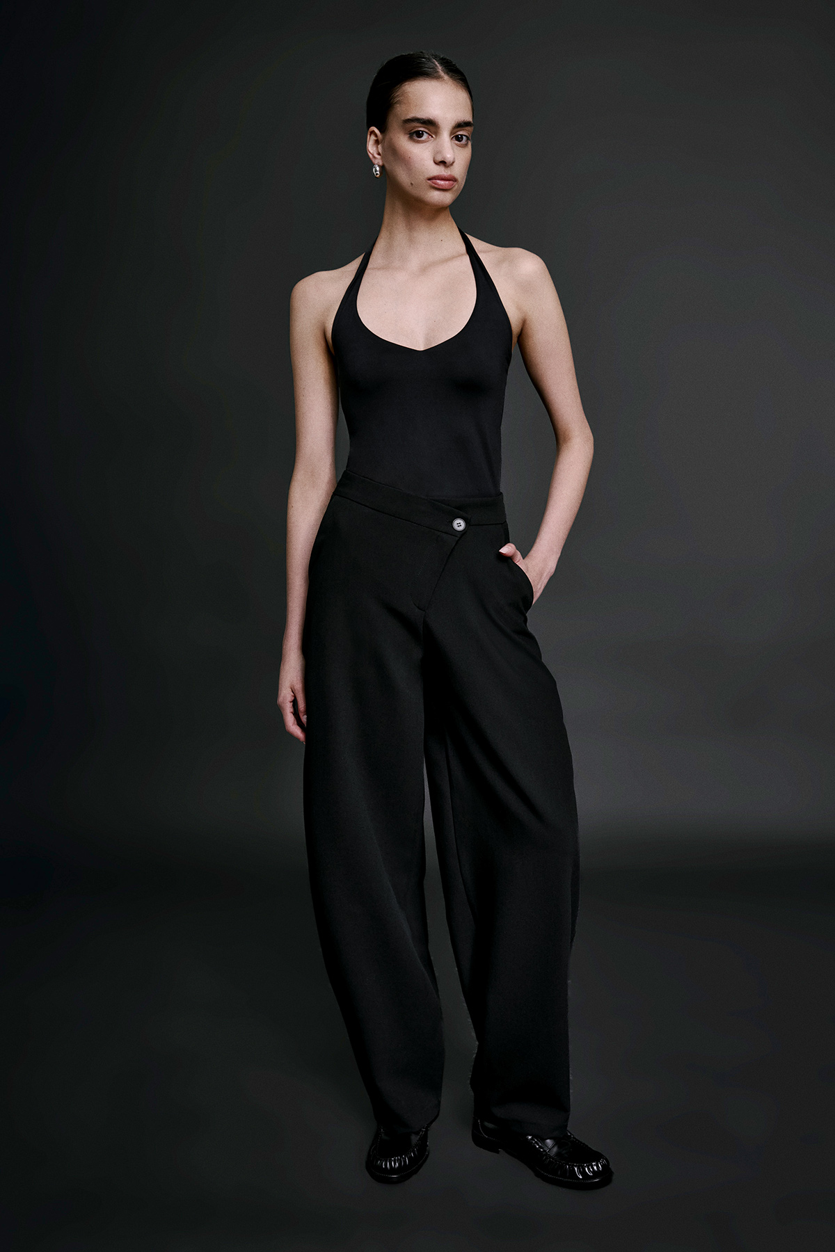 Crossed Barrel Pantolon, çapraz tasarım detayı ve hacimli barrel kesimiyle klasik pantolon formuna modern bir yorum getirir. Yüksek bel yapısı silueti toparlarken, hafif oval hatlarla ilerleyen paça formu görünüme karakter kazandırır. Günlük stil, şehir kombinleri ve minimal üstlerle rahatlıkla eşleşen bu barrel pantolon, sıradan kesimlerin dışına çıkmak isteyenler için güçlü bir alternatif sunar.