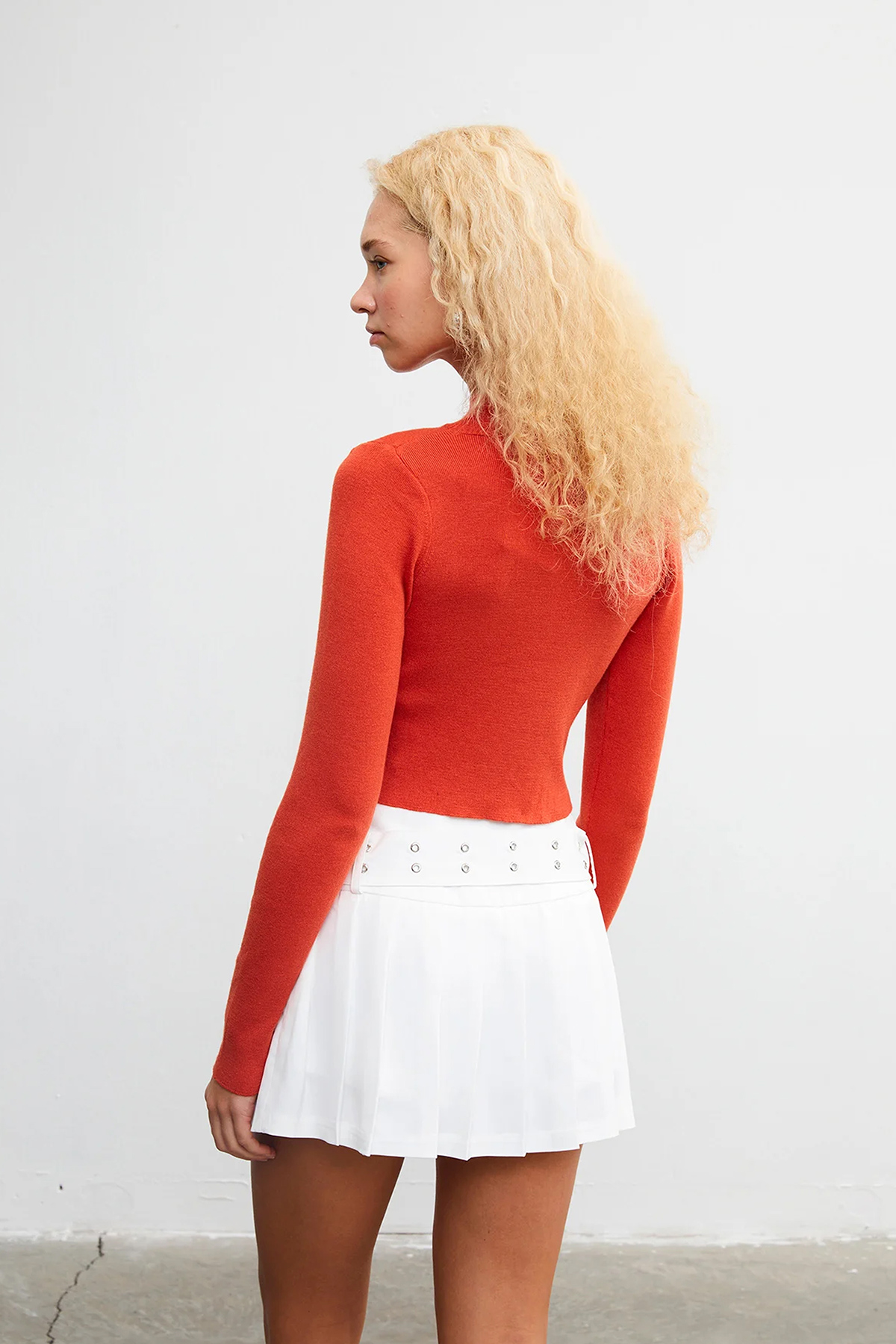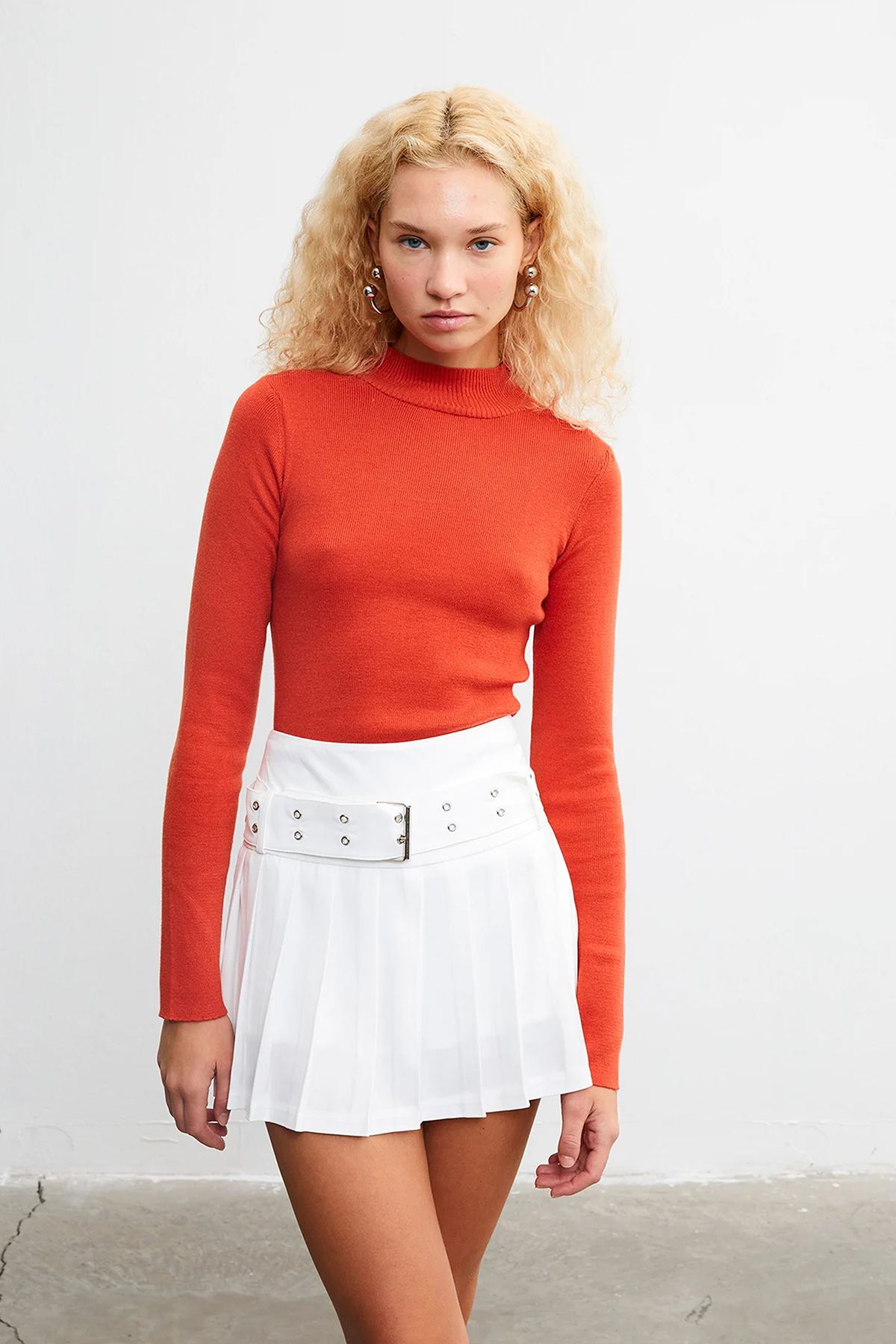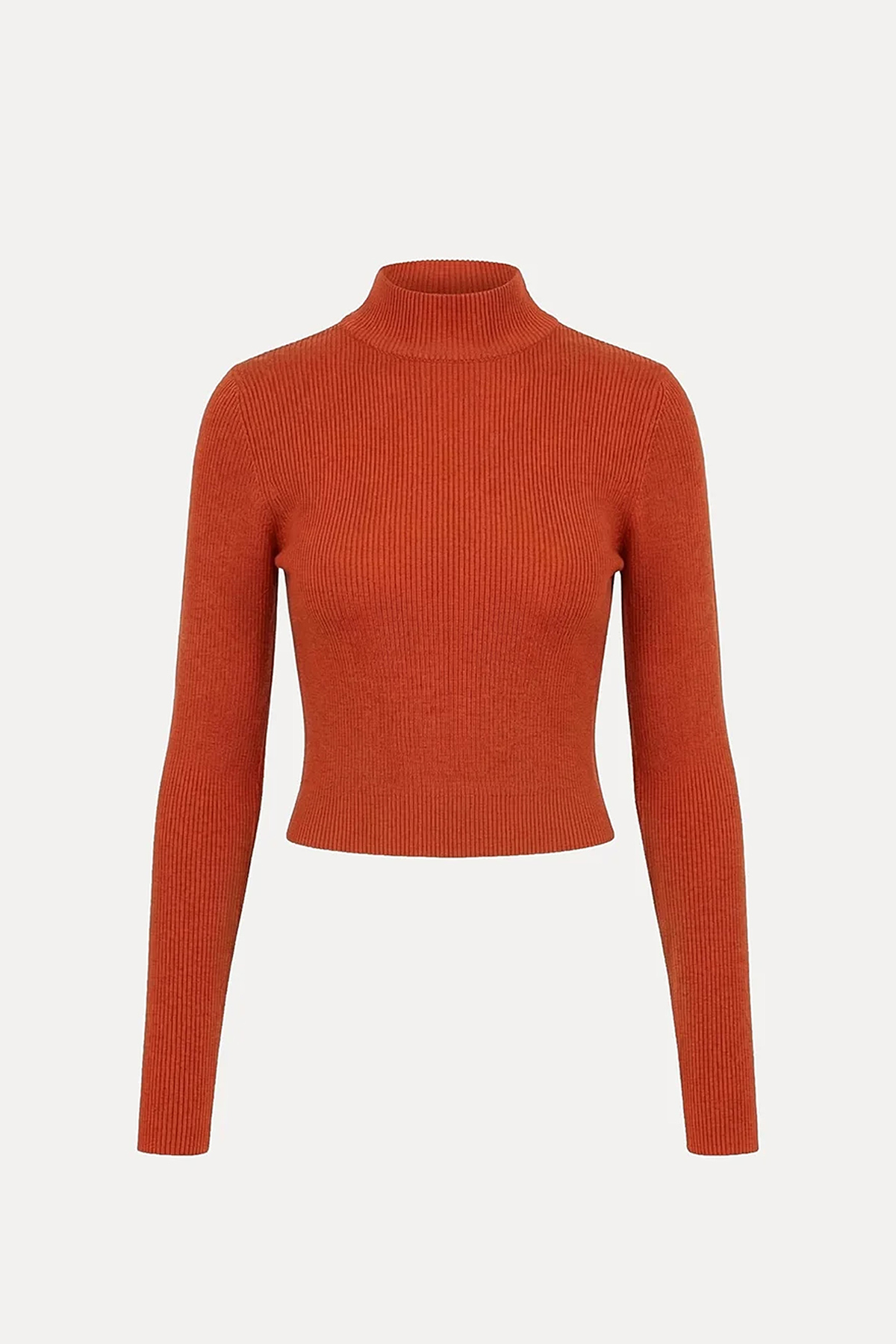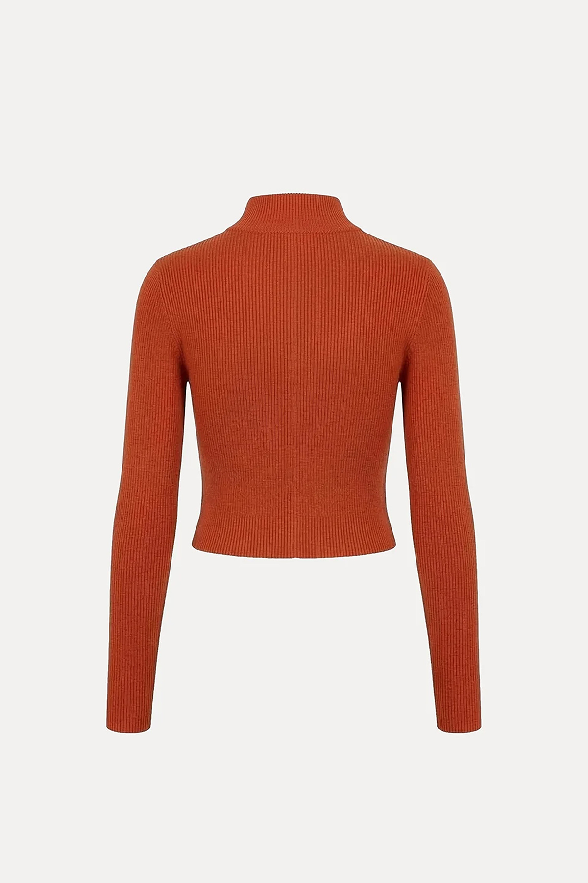 Dik yaka, esnek kumaş, tam kalıp,basic crop kazak.