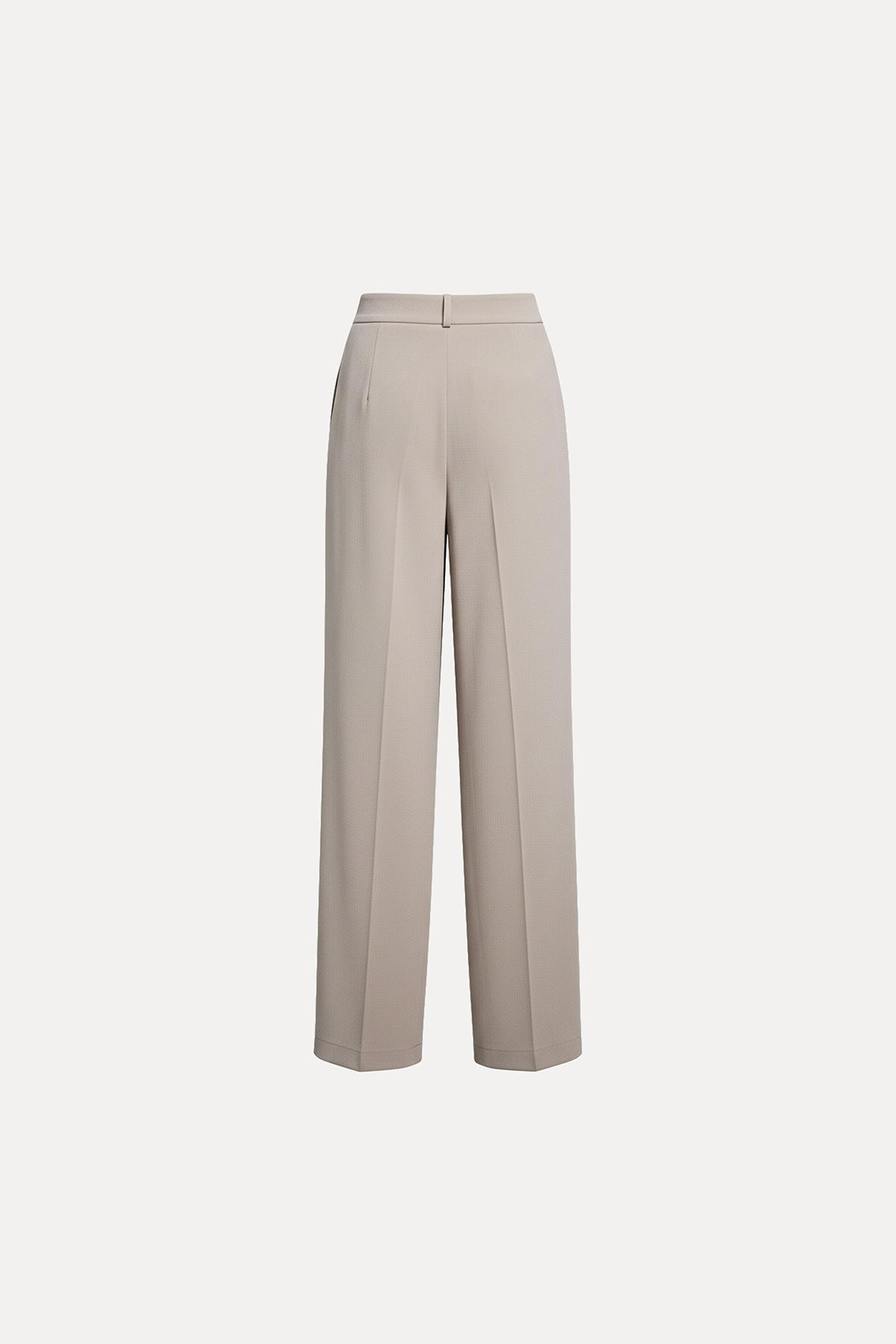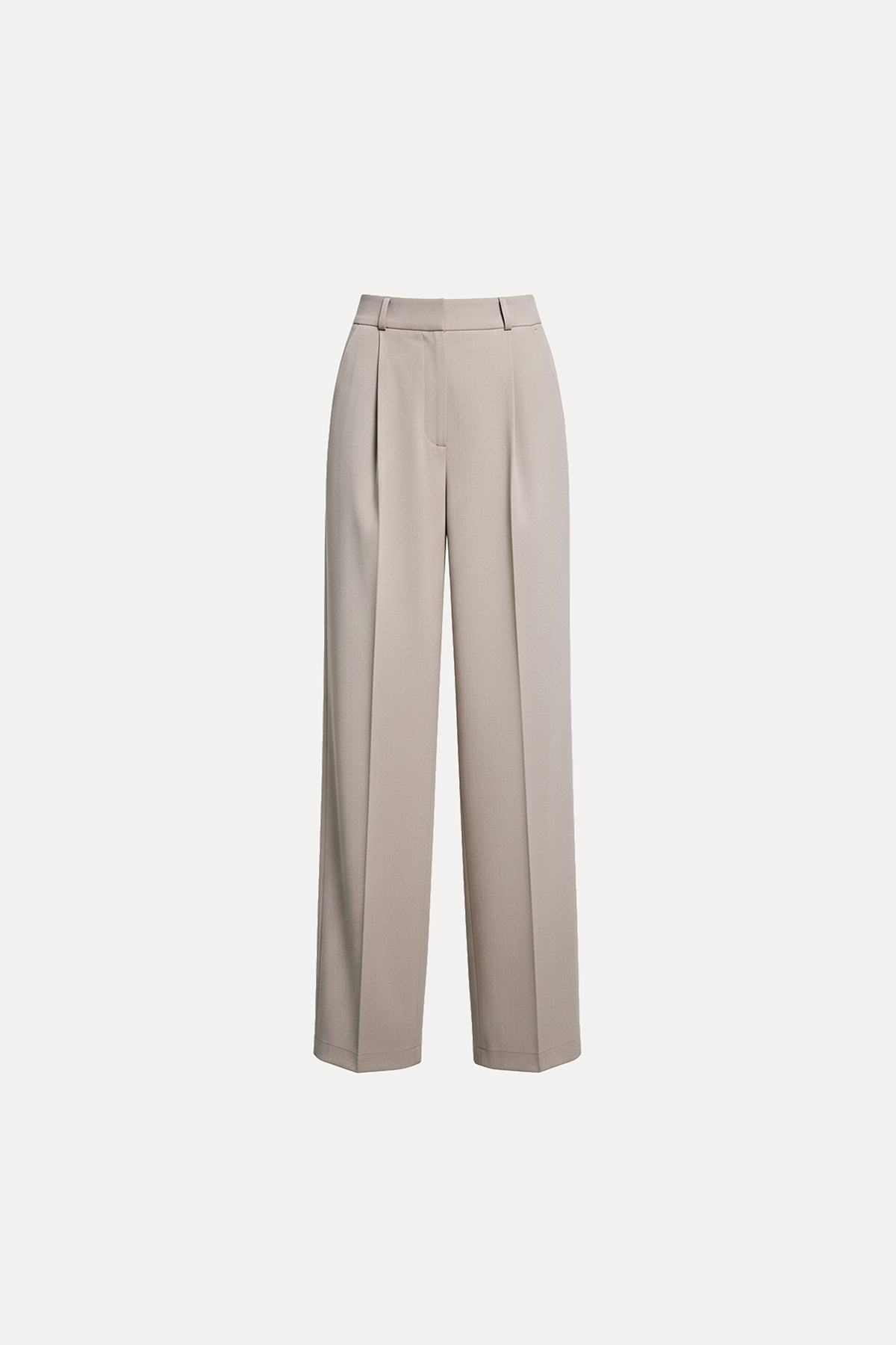 Yüksek bel, bol paça, pile detaylı, yandan 2 cepli, dökümlü kumaş pantolon.